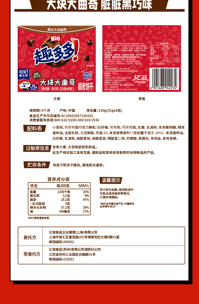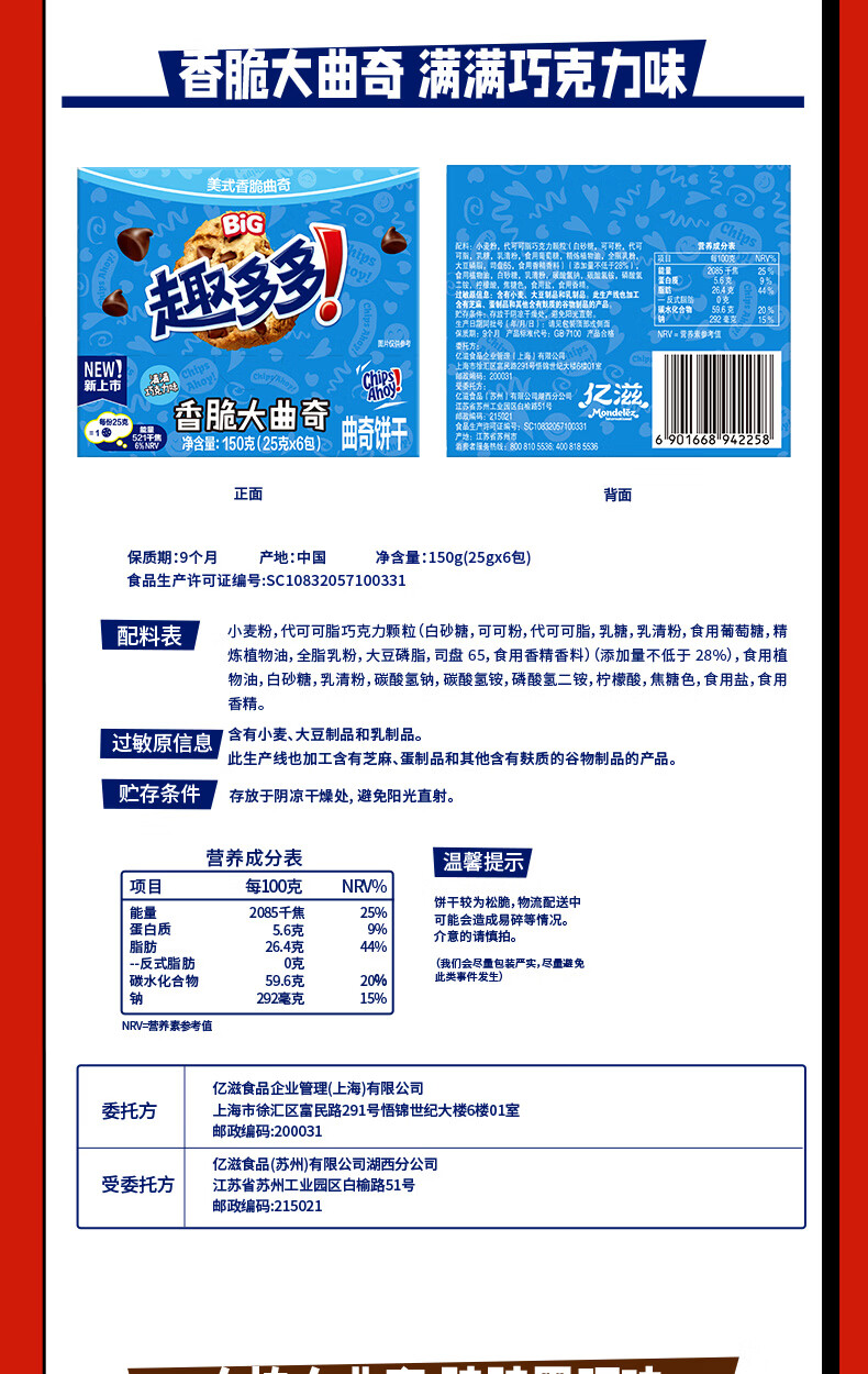 趣多多美式大曲奇礼盒600g含24件赠杯子 休闲零食 团购年货 张哲华同款