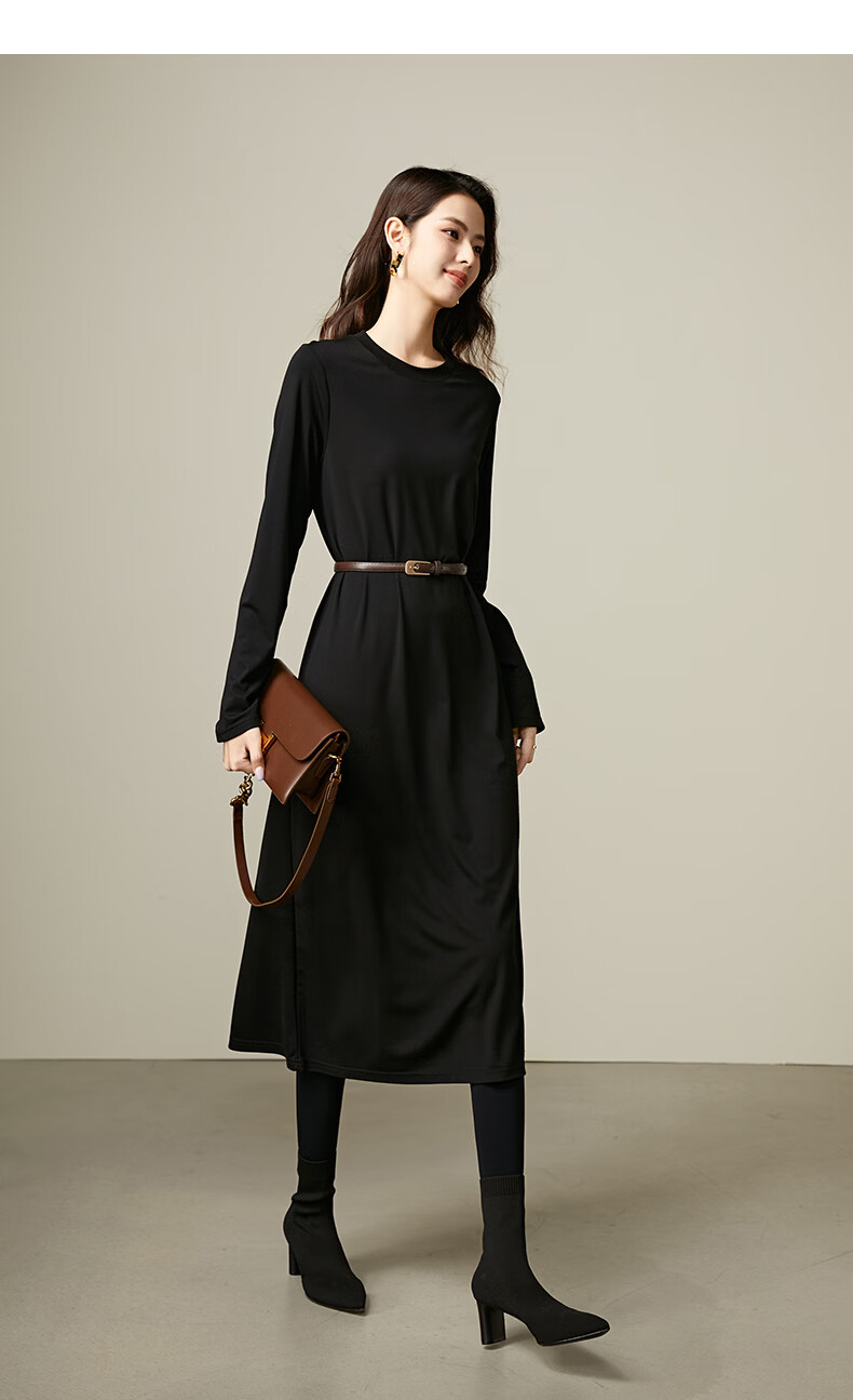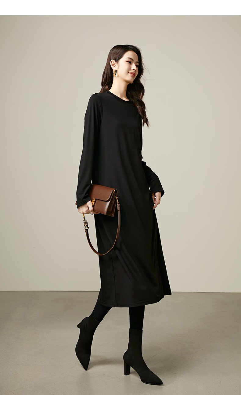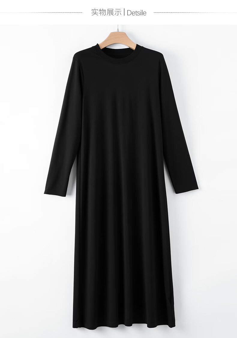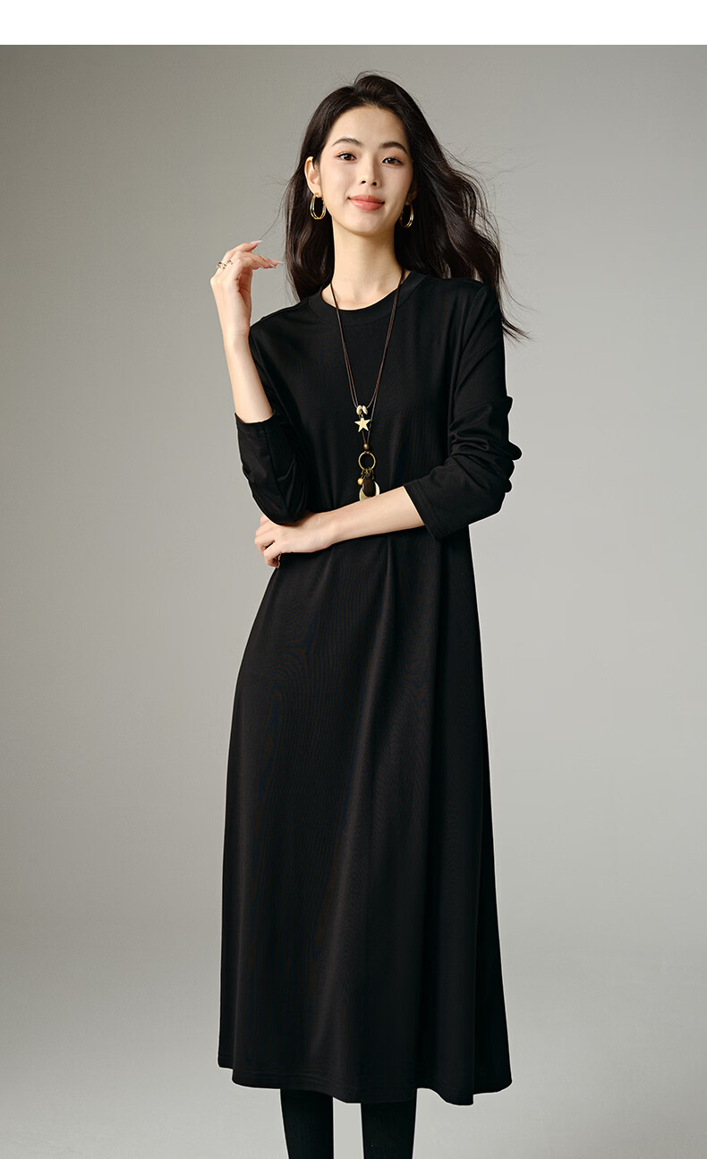 晚白【新品】2026春款经典圆领裙子遮肉显瘦亲肤舒适直筒连衣裙 黑色 M