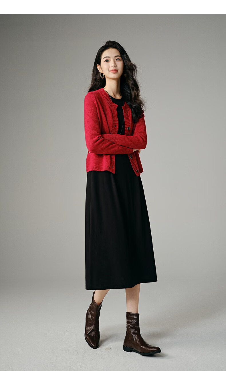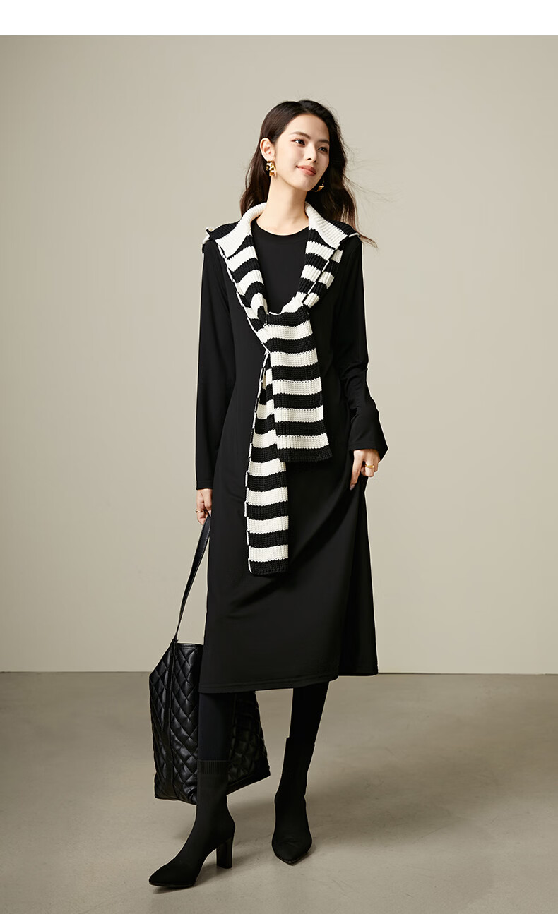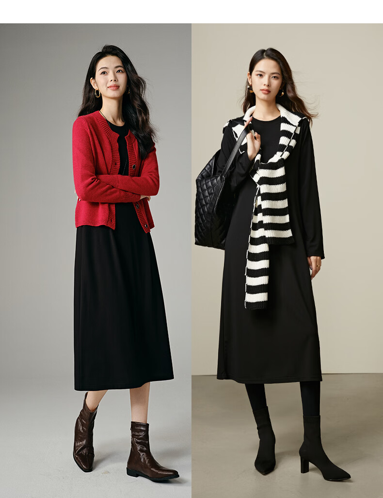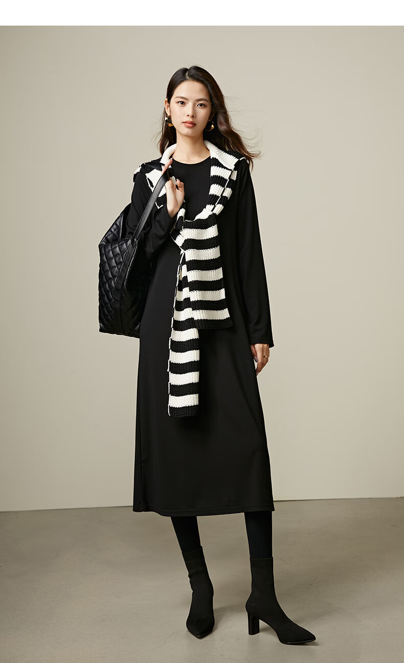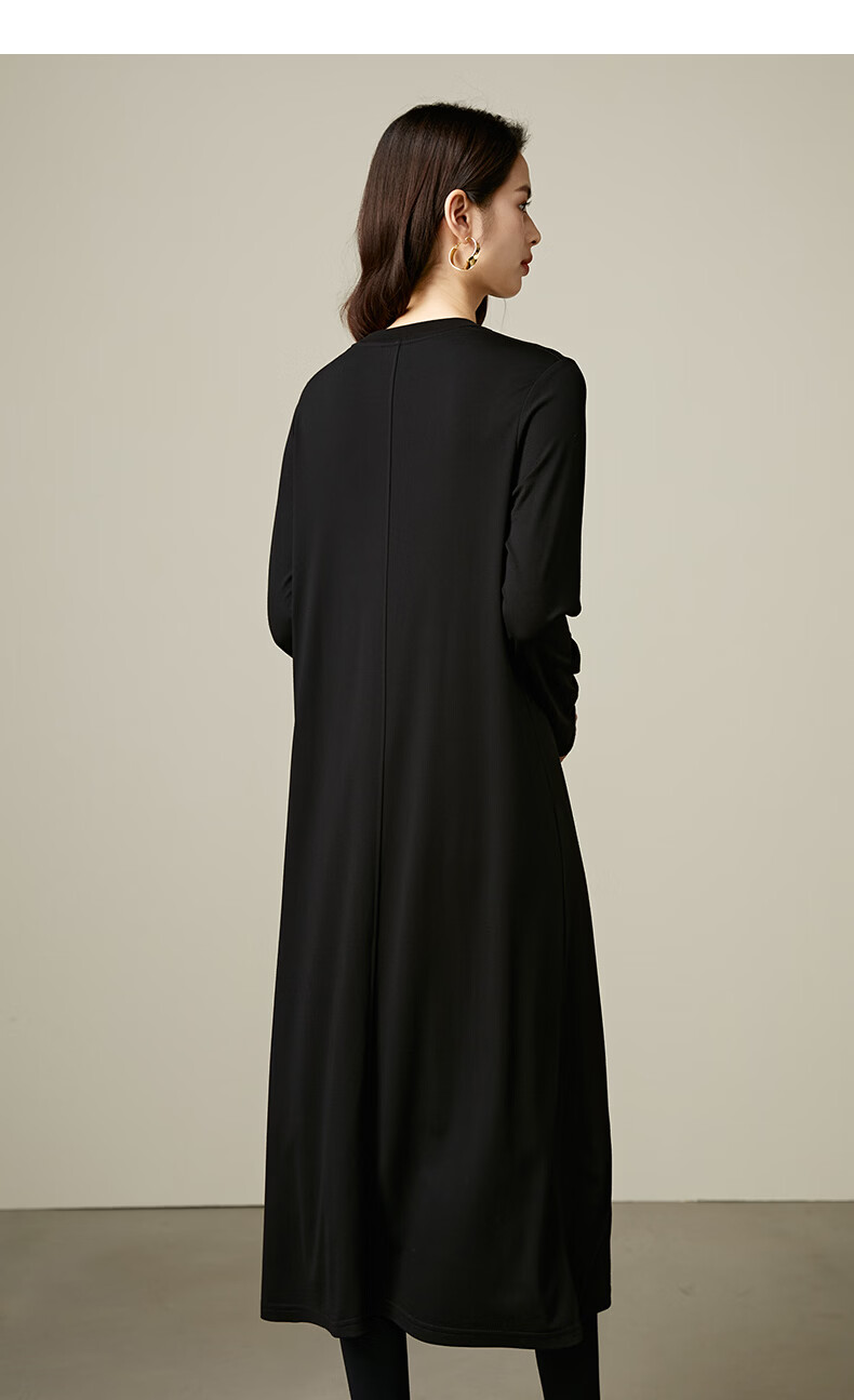 晚白【新品】2026春款经典圆领裙子遮肉显瘦亲肤舒适直筒连衣裙 黑色 M