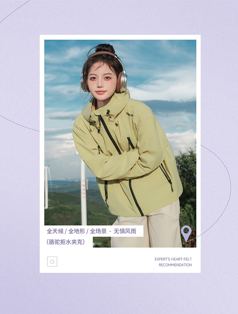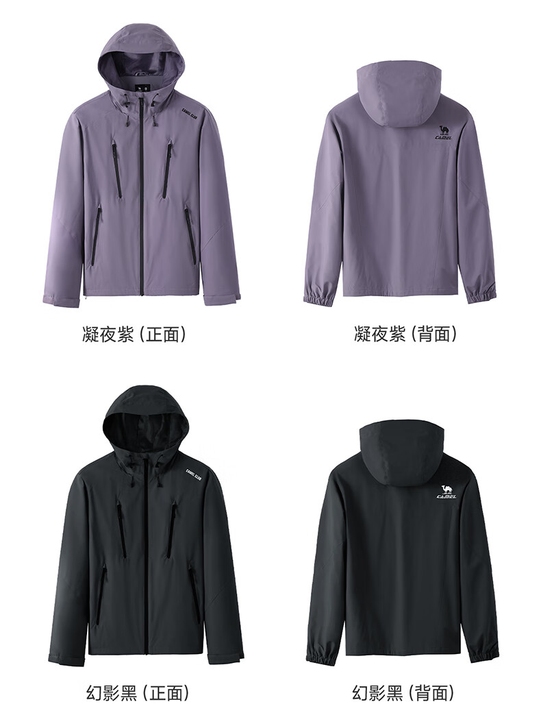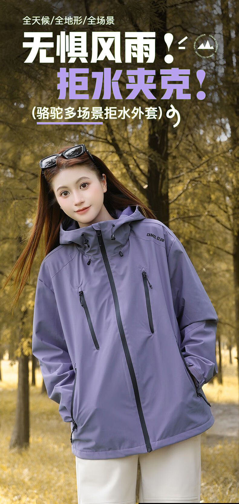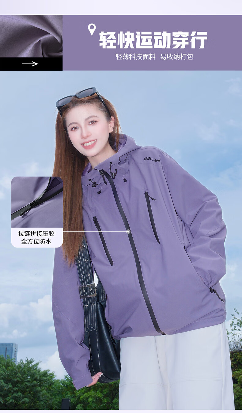 骆驼(CAMEL)李一桐同款外套男女春秋拒水夹克风衣 C35CR0L0019 凝夜紫 S