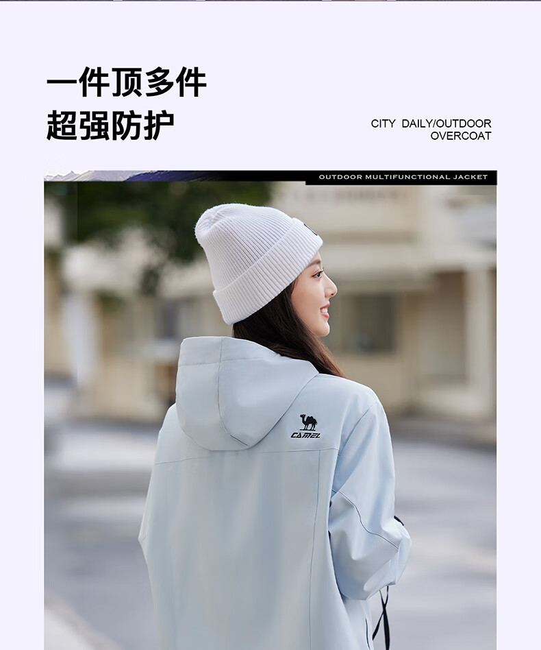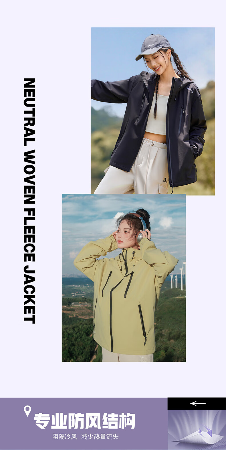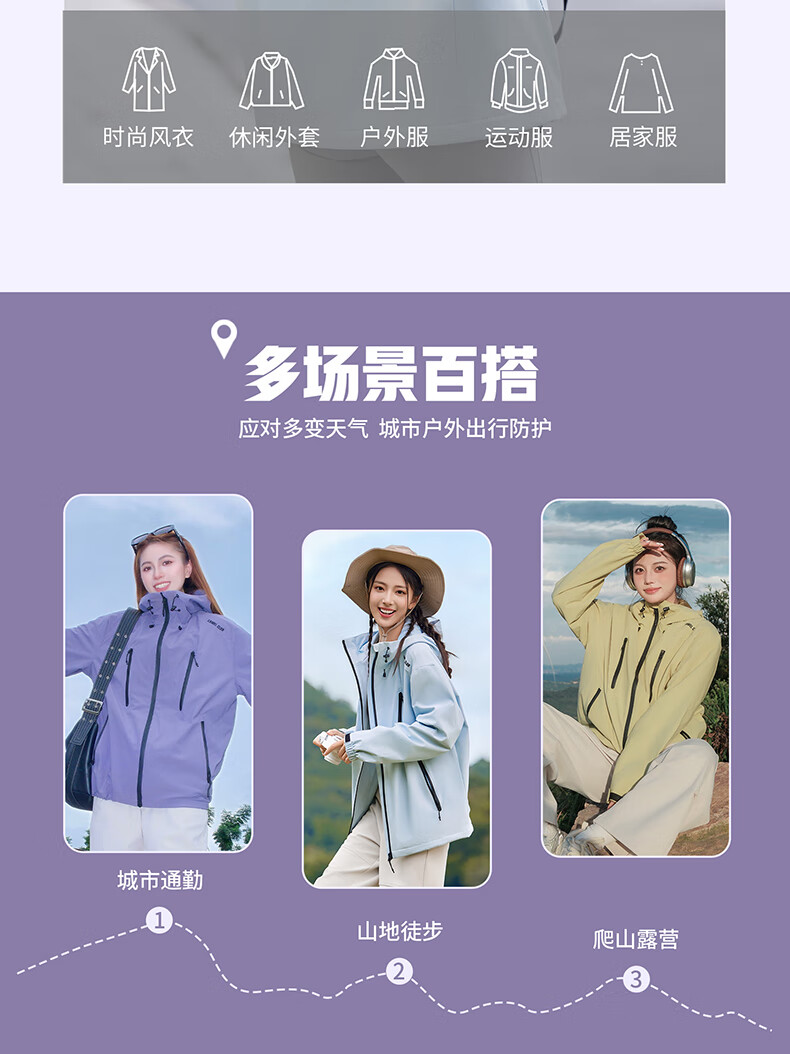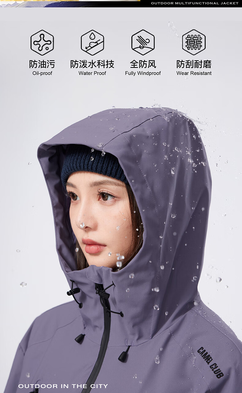 骆驼(CAMEL)李一桐同款外套男女春秋拒水夹克风衣 C35CR0L0019 凝夜紫 S