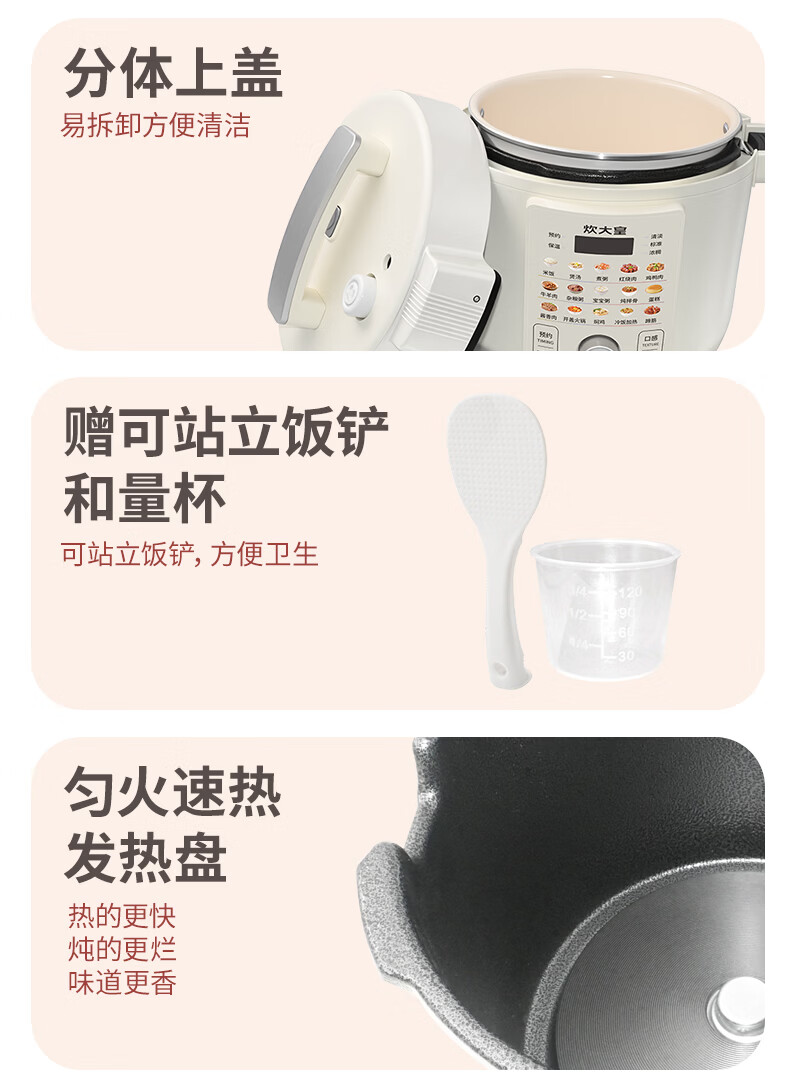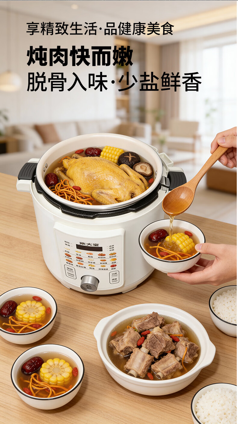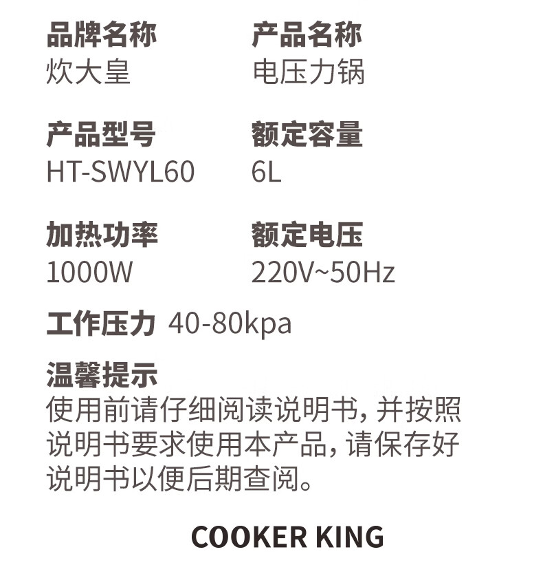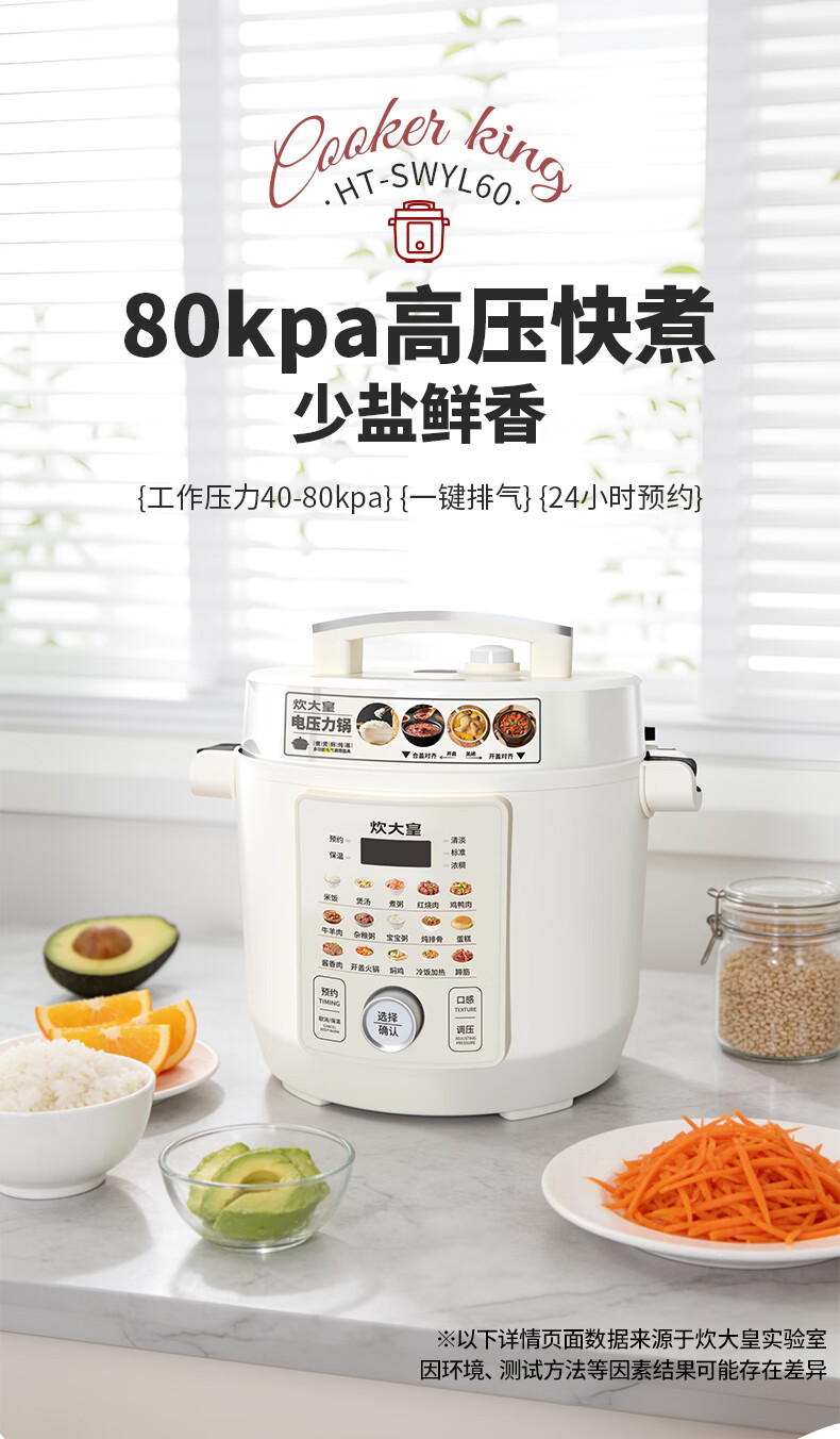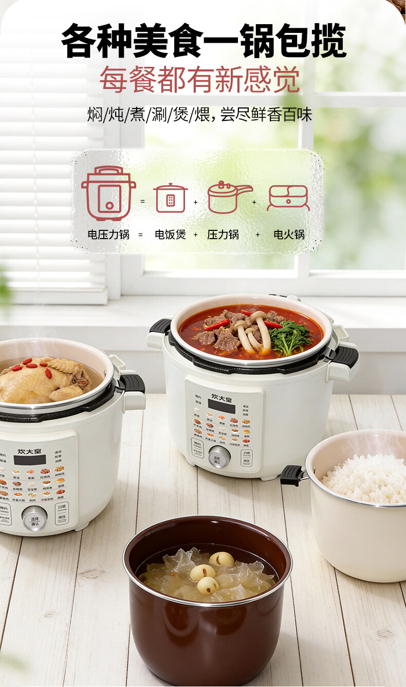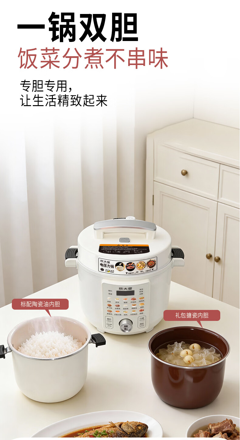 炊大皇(COOKER KING)电压力锅6L双胆家用全自动预约80kpa高压快煮 电压力锅 6L
