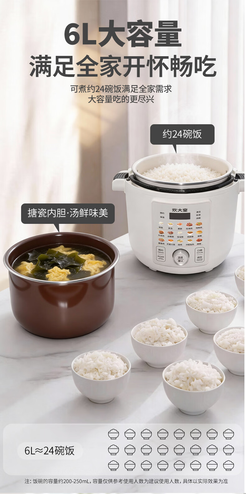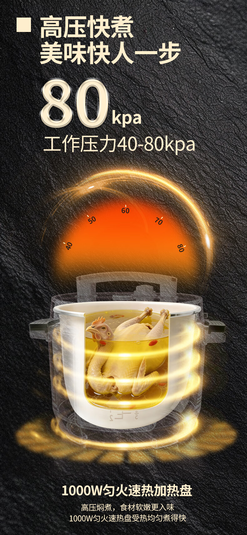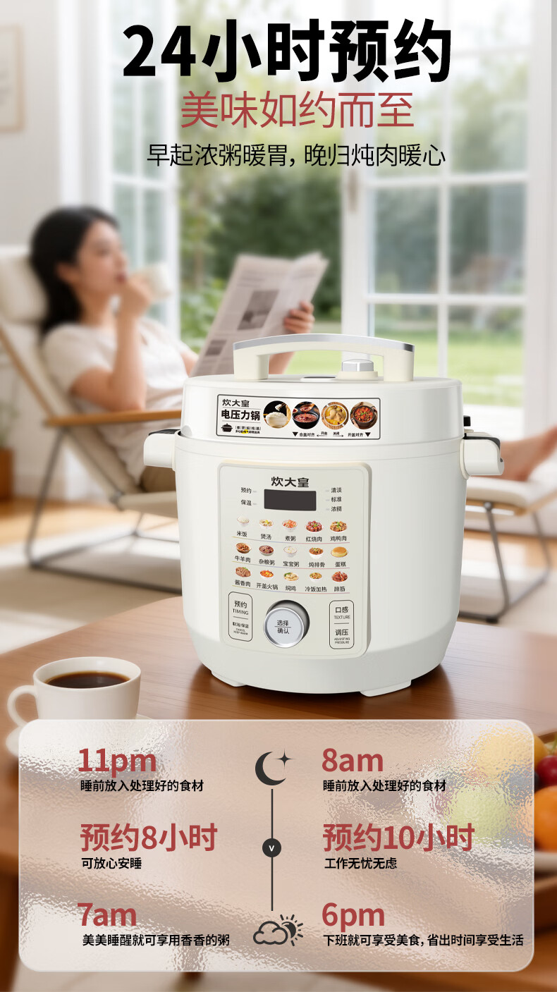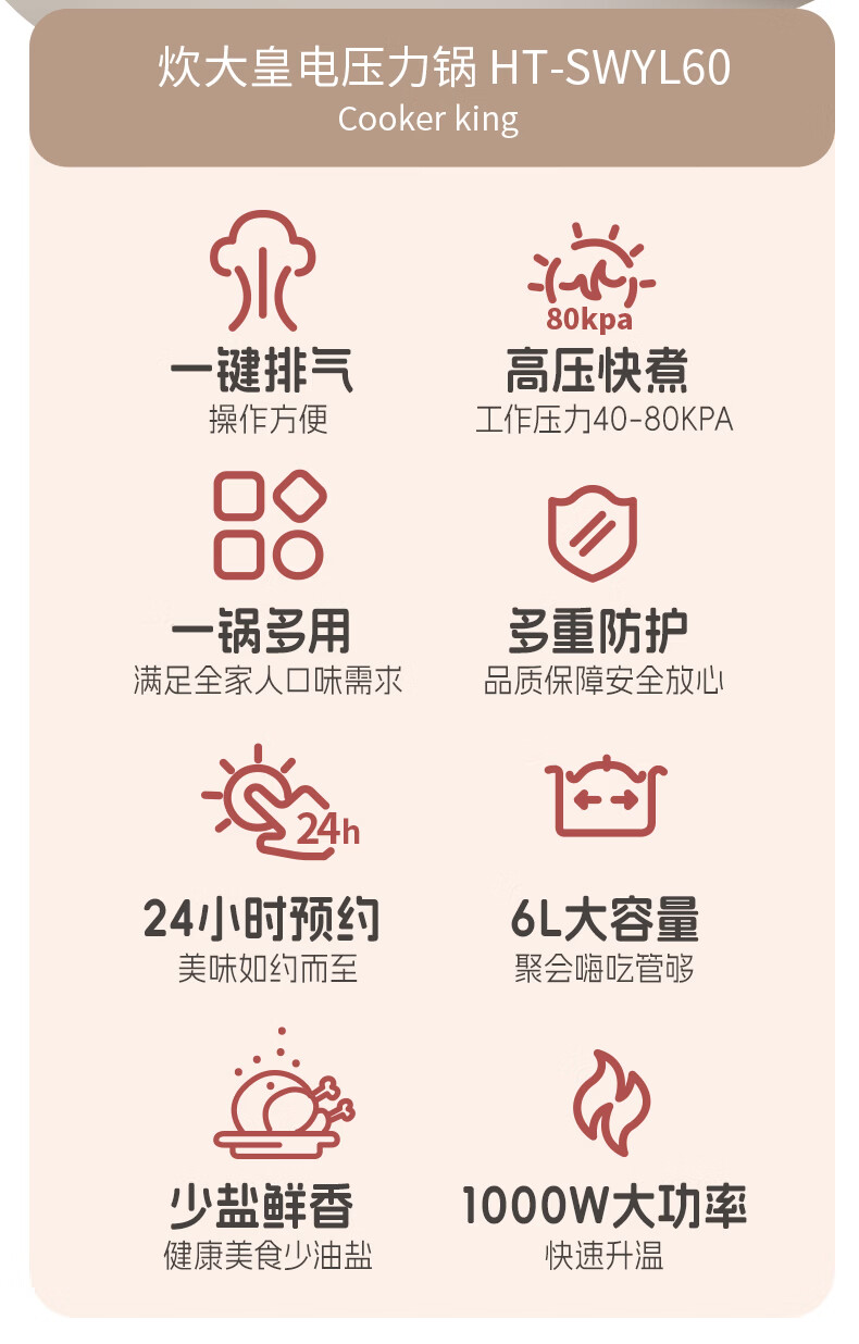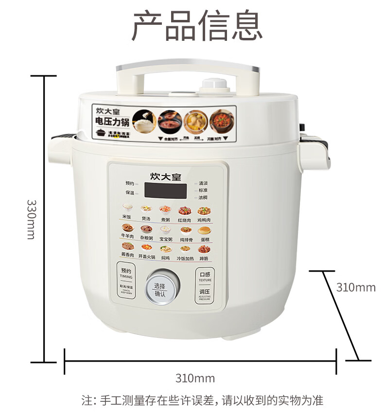 炊大皇(COOKER KING)电压力锅6L双胆家用全自动预约80kpa高压快煮 电压力锅 6L