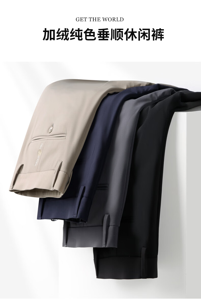 才子(TRIES)男士基础纯色商务休闲裤秋冬新款加绒保暖直筒裤垂顺通勤男长裤 卡其色 31 80cm