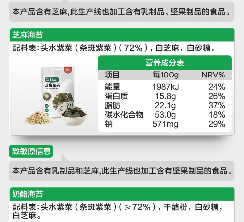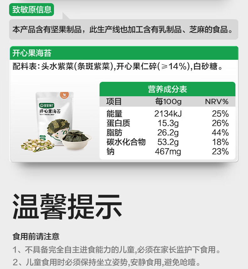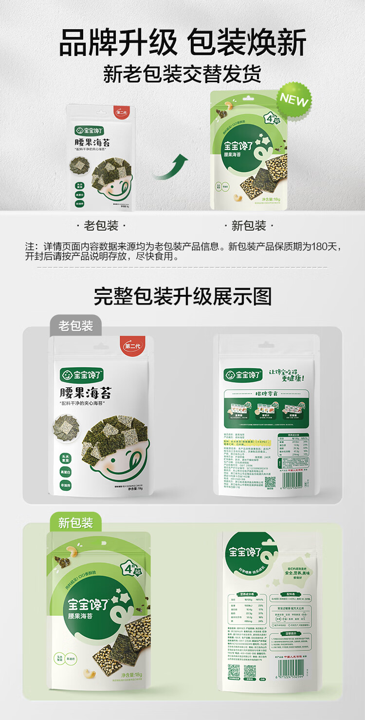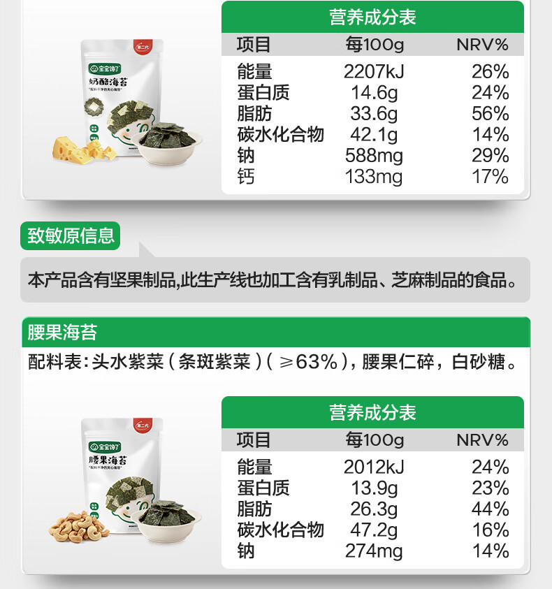 宝宝馋了儿童零食腰果海苔碎夹心脆无添加盐18g