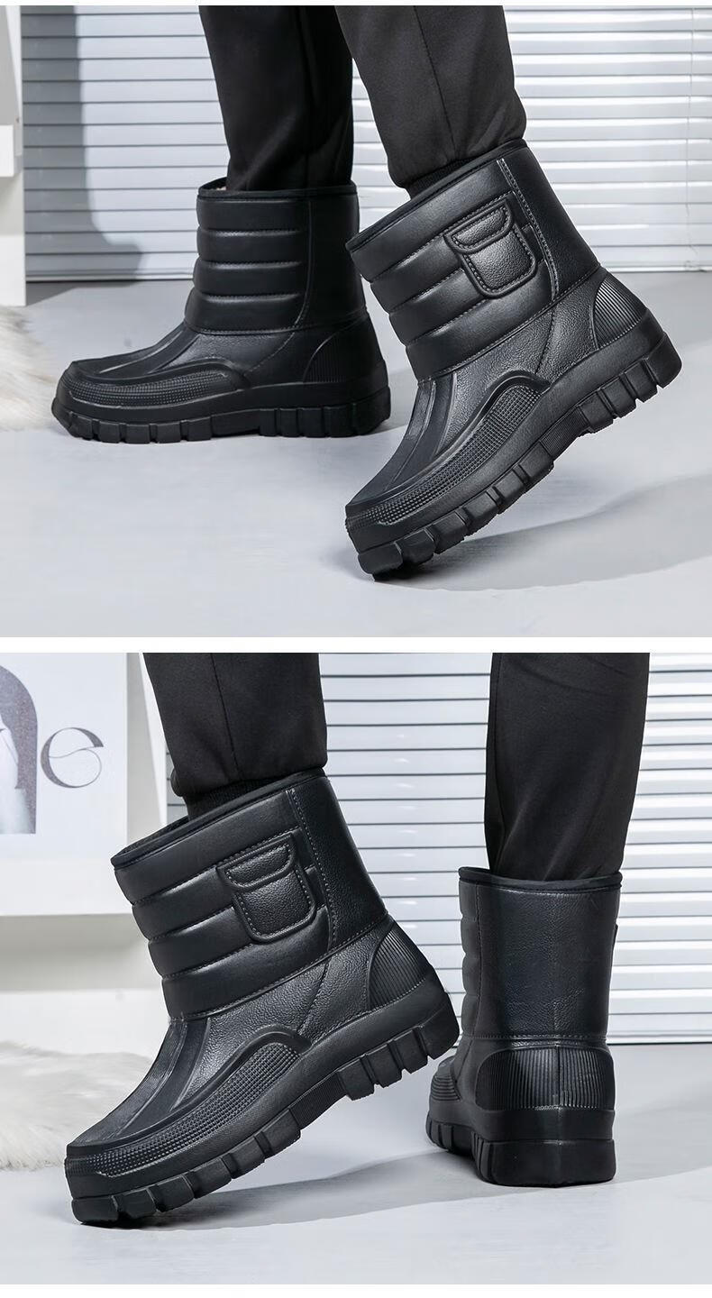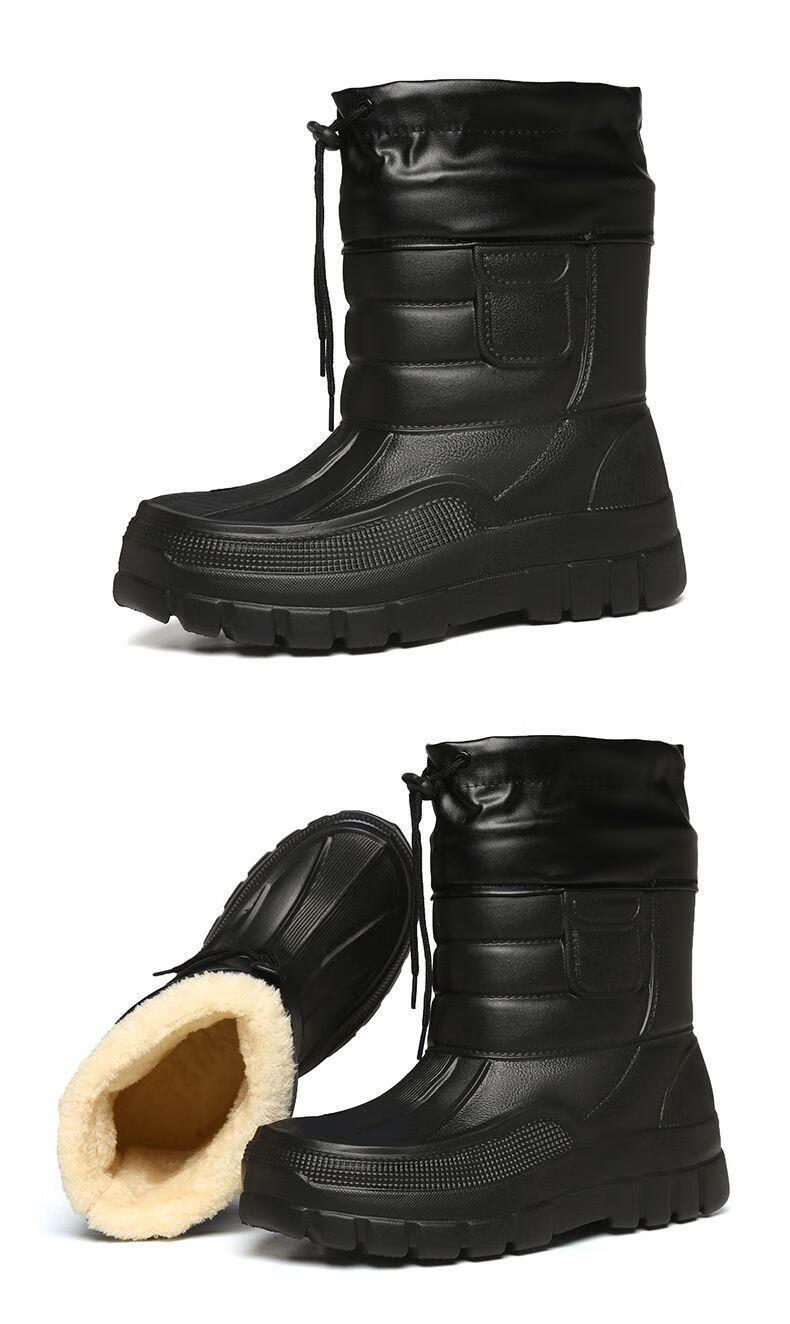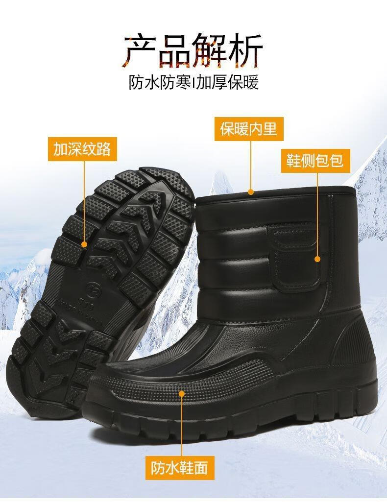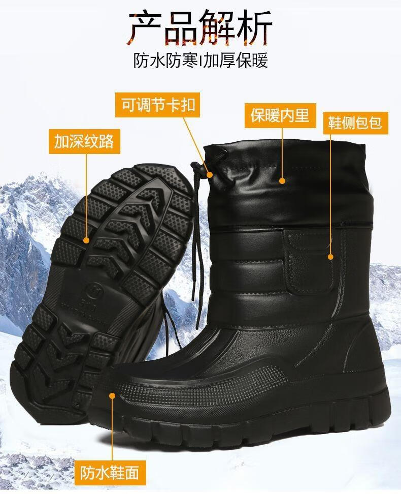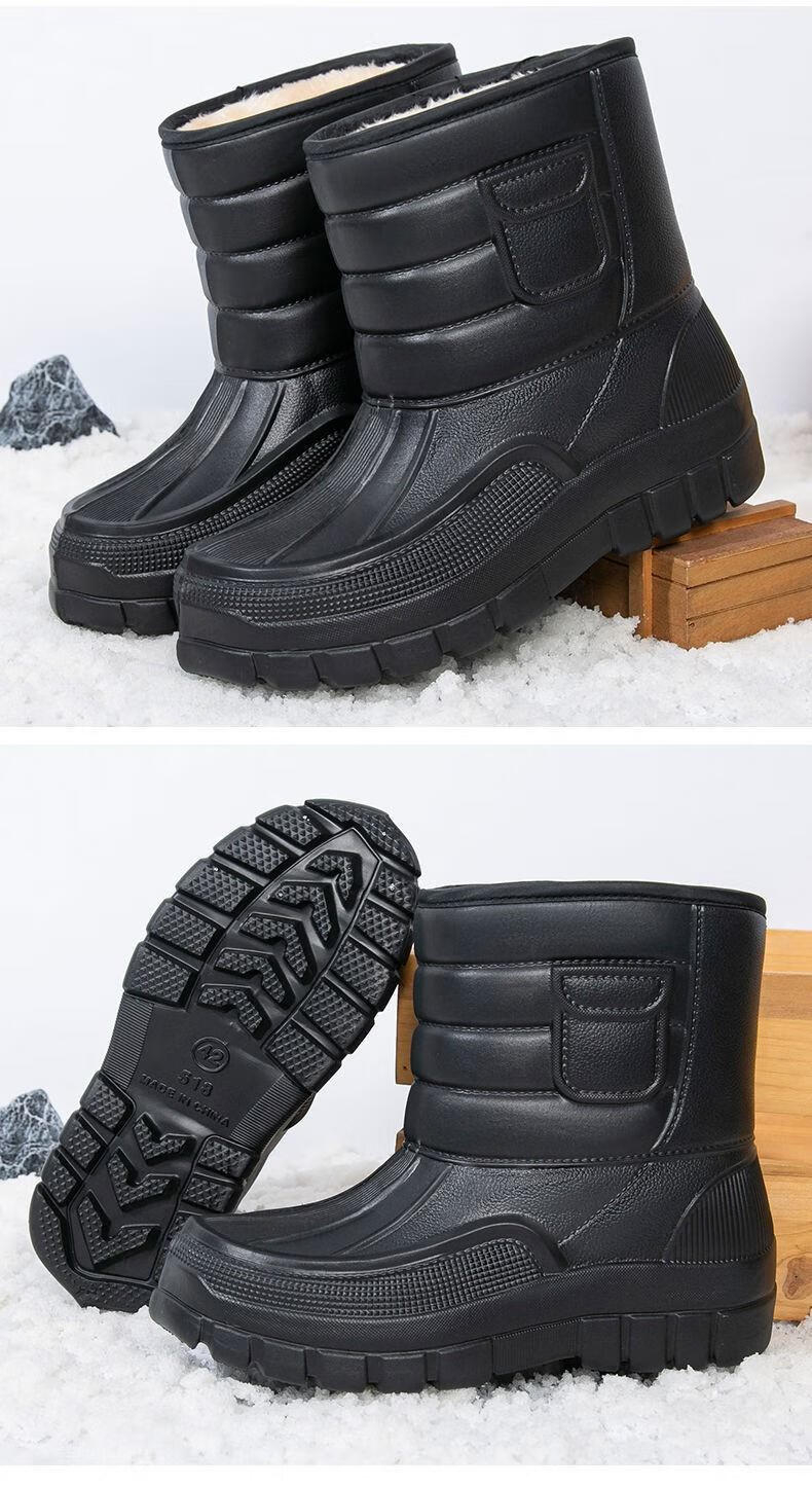 稻草人(MEXICAN)棉鞋男防水户外钓鱼鞋防滑保暖棉靴男士款防寒冬季加绒加厚雪地靴 319黑色短靴【加绒保暖】 42