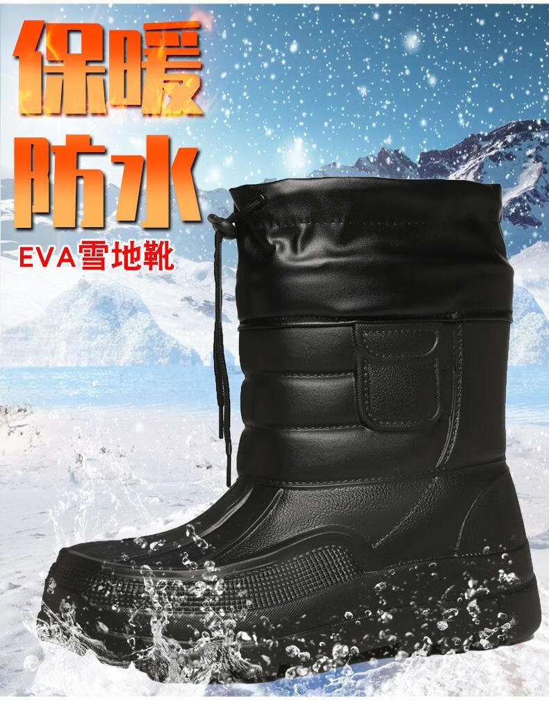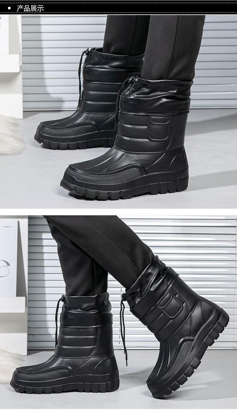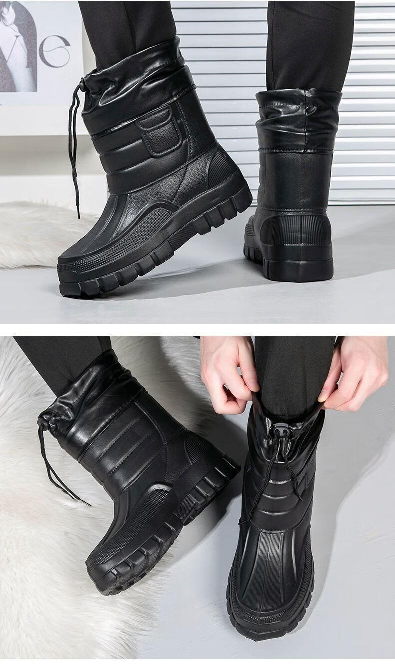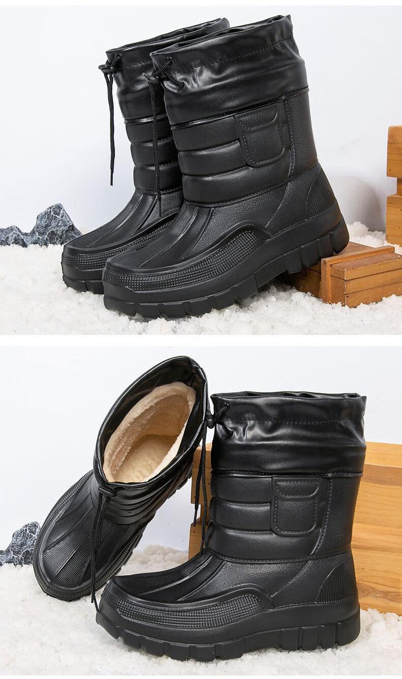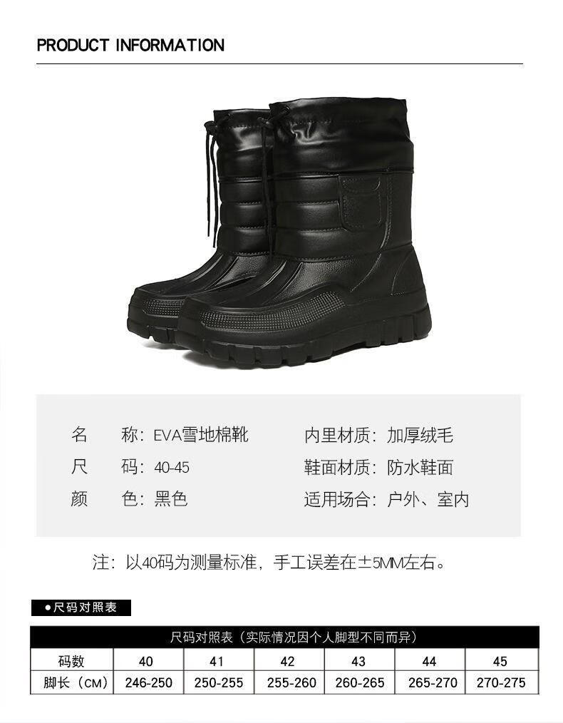 稻草人(MEXICAN)棉鞋男防水户外钓鱼鞋防滑保暖棉靴男士款防寒冬季加绒加厚雪地靴 319黑色短靴【加绒保暖】 42