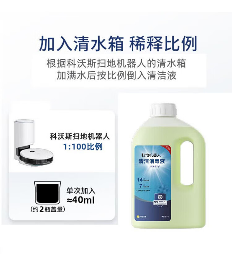 TULX【京东官方正品】科沃斯清洁液扫地机器人清洁剂清洗液 科沃斯原装清洁液 消毒t10t20St50x1t80 【原装】科沃斯清洁液1L装买2瓶送2瓶