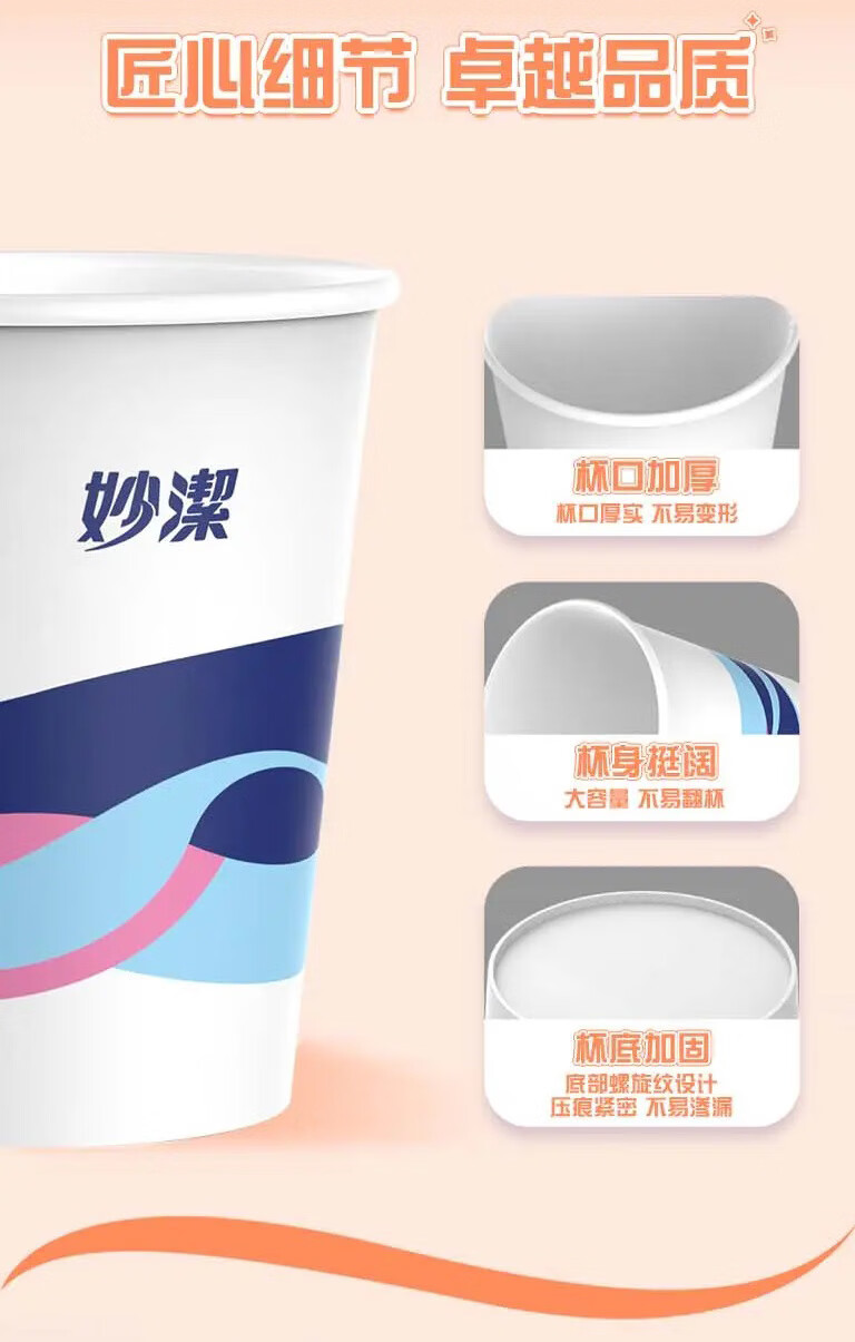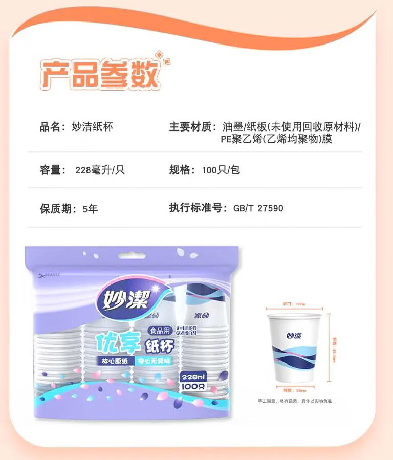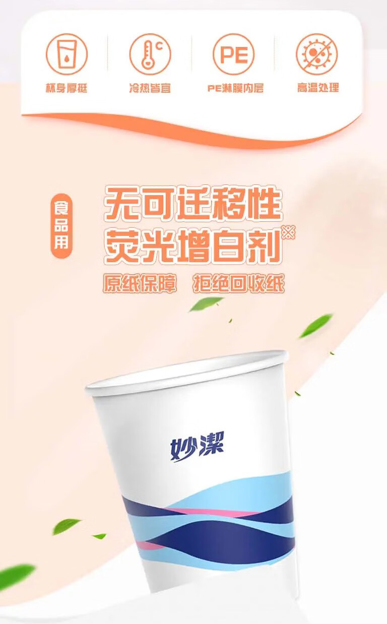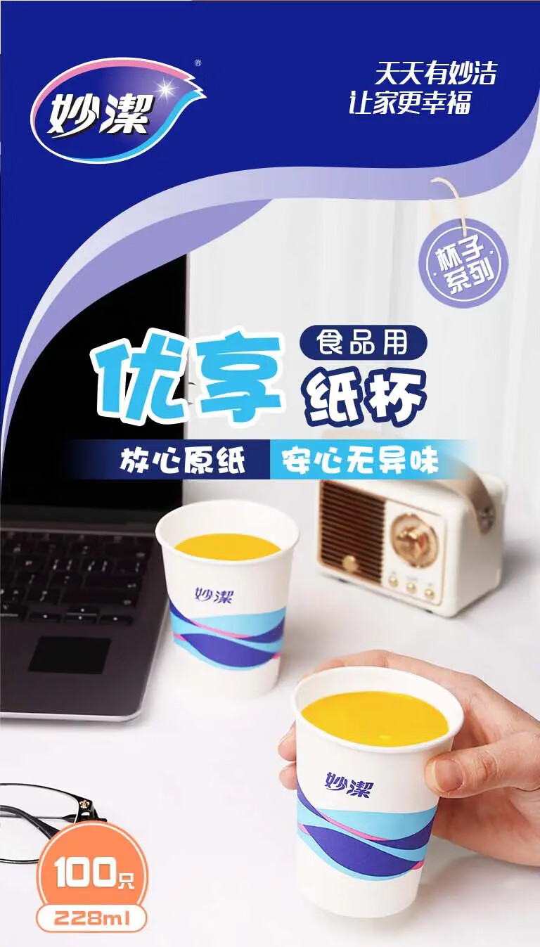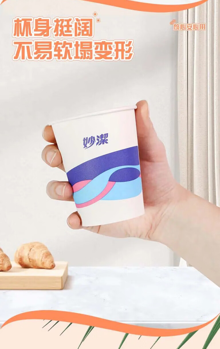 妙洁 欢享纸杯加厚型一次性杯子 8盎司228ml 一箱(2000只)