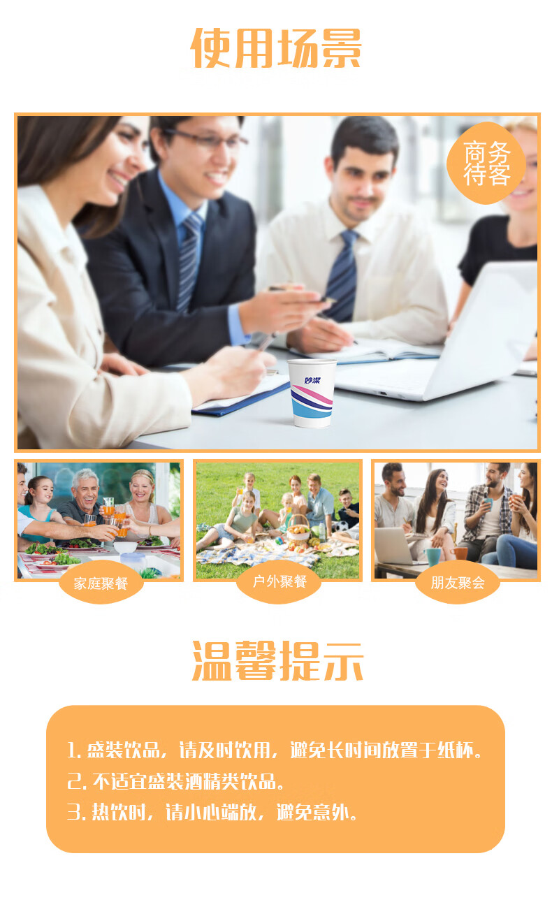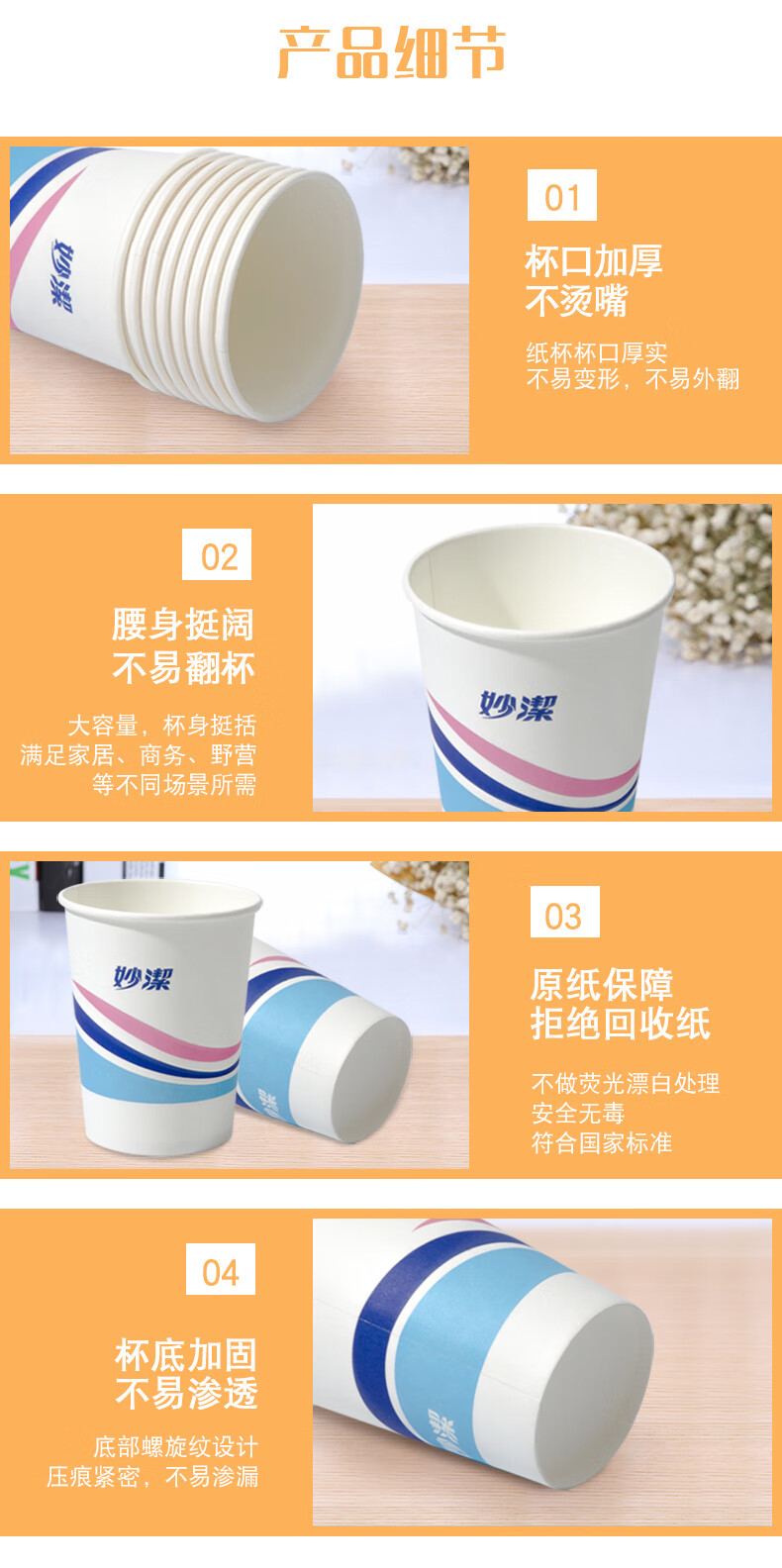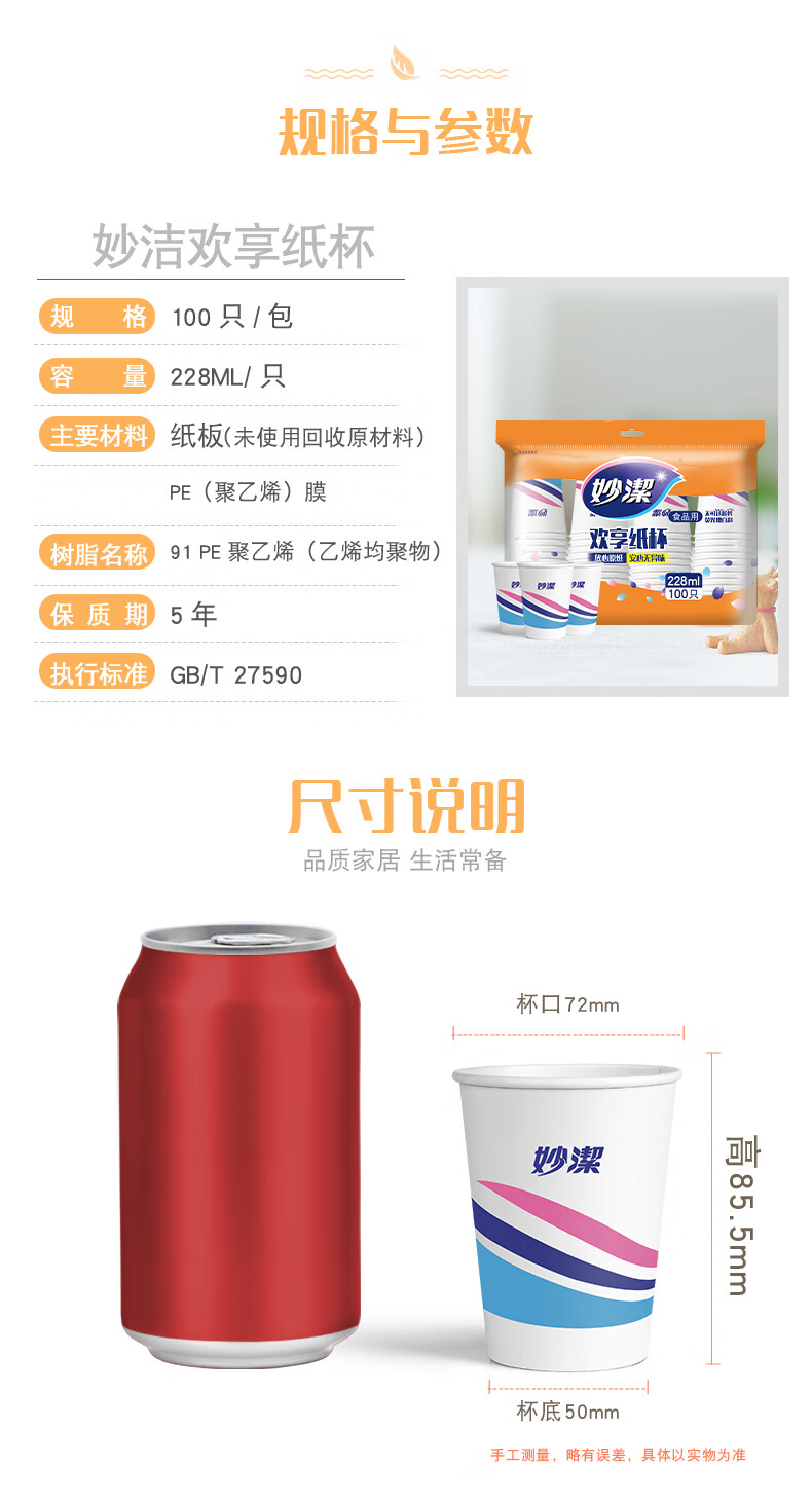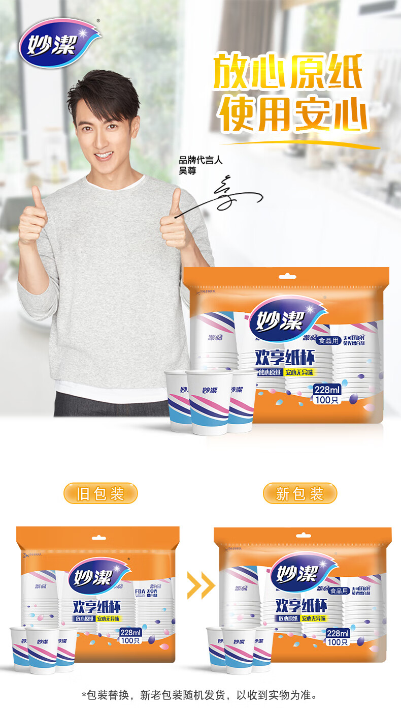妙洁 欢享纸杯加厚型一次性杯子 8盎司228ml 一箱(2000只)