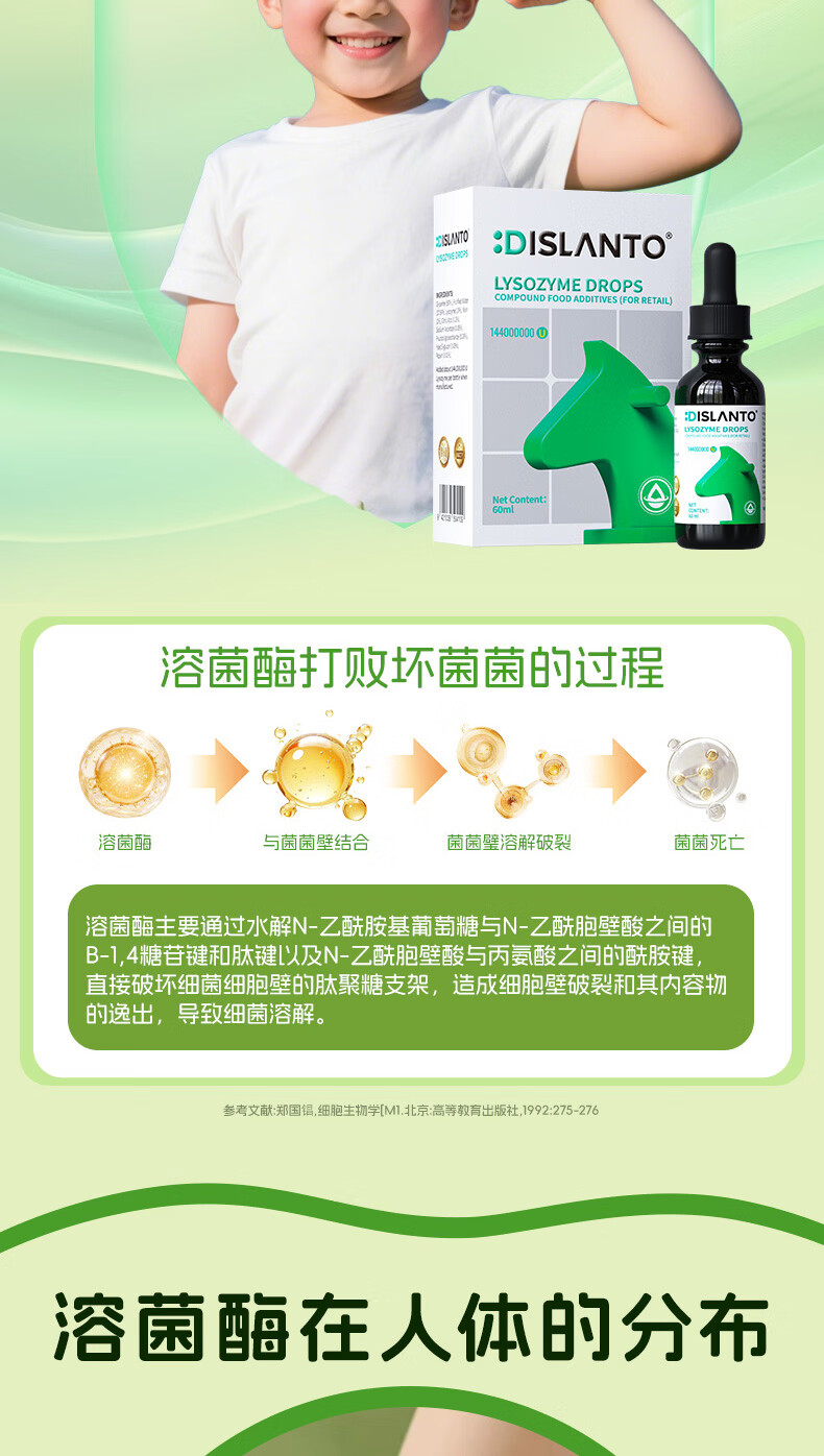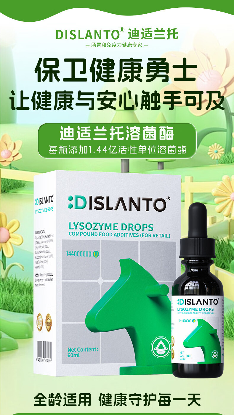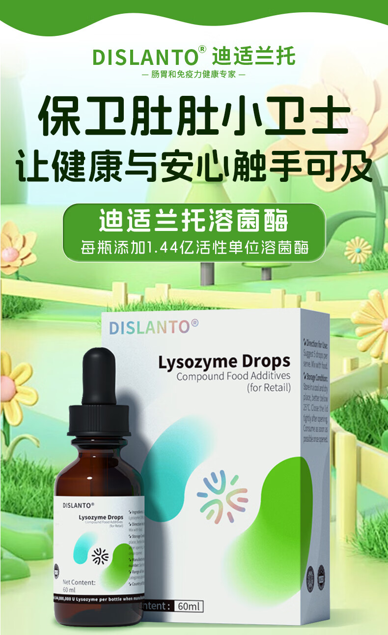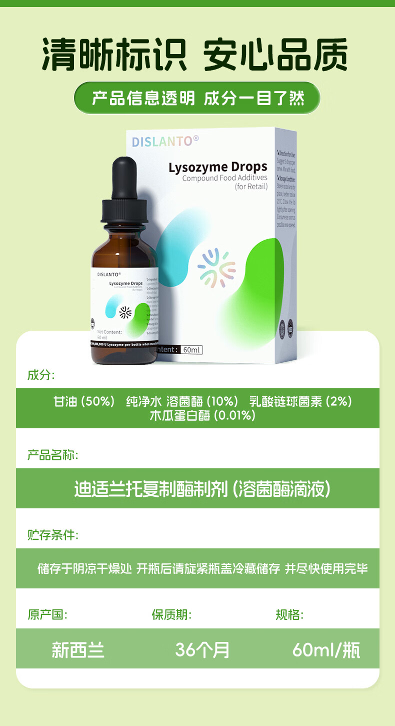 迪适兰托溶菌酶滴剂复配酶乳酸链球菌素蛋白酶婴儿宝宝新西兰原装进口 【新西兰进口】溶菌酶 60ml*1瓶