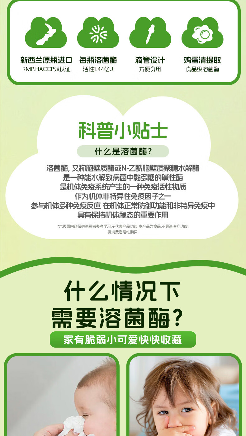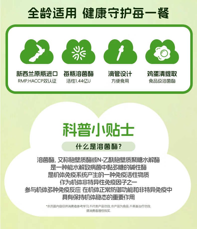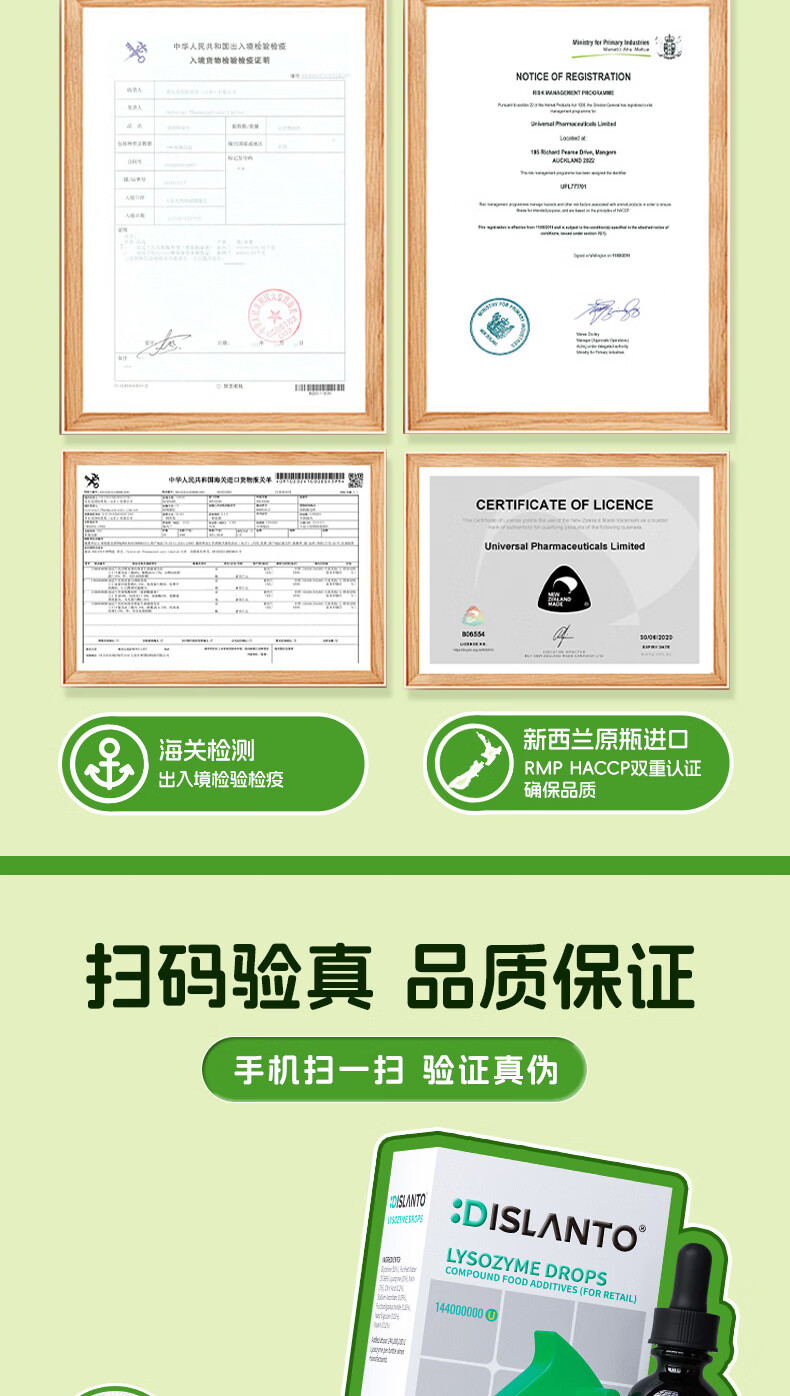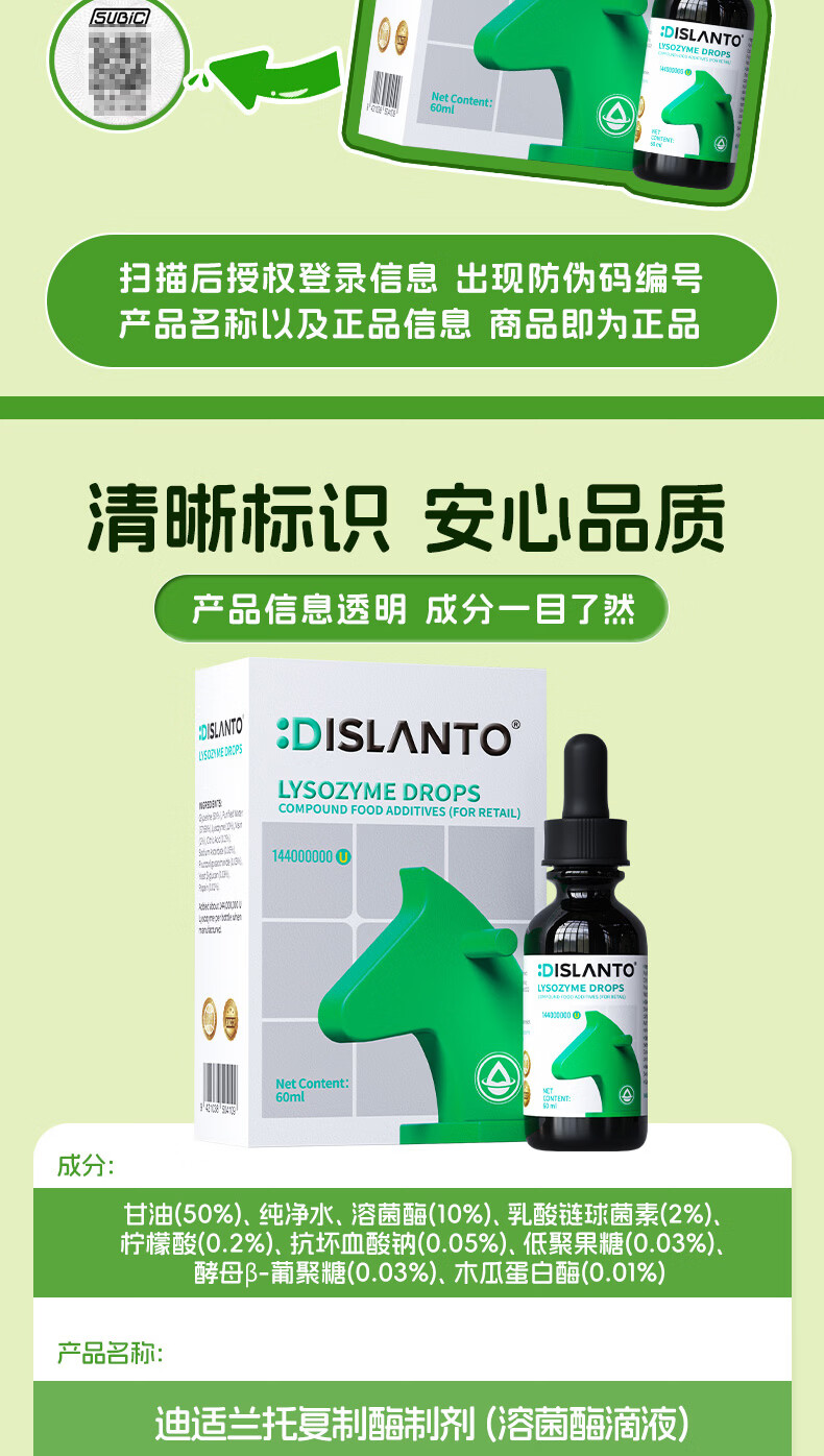 迪适兰托溶菌酶滴剂复配酶乳酸链球菌素蛋白酶婴儿宝宝新西兰原装进口 【新西兰进口】溶菌酶 60ml*1瓶