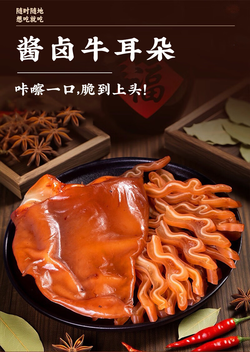 青草家酱卤牛耳朵整只开袋即食酱香牛耳朵卤味熟食下酒菜凉拌菜解馋熟食 卤牛耳朵200g*2