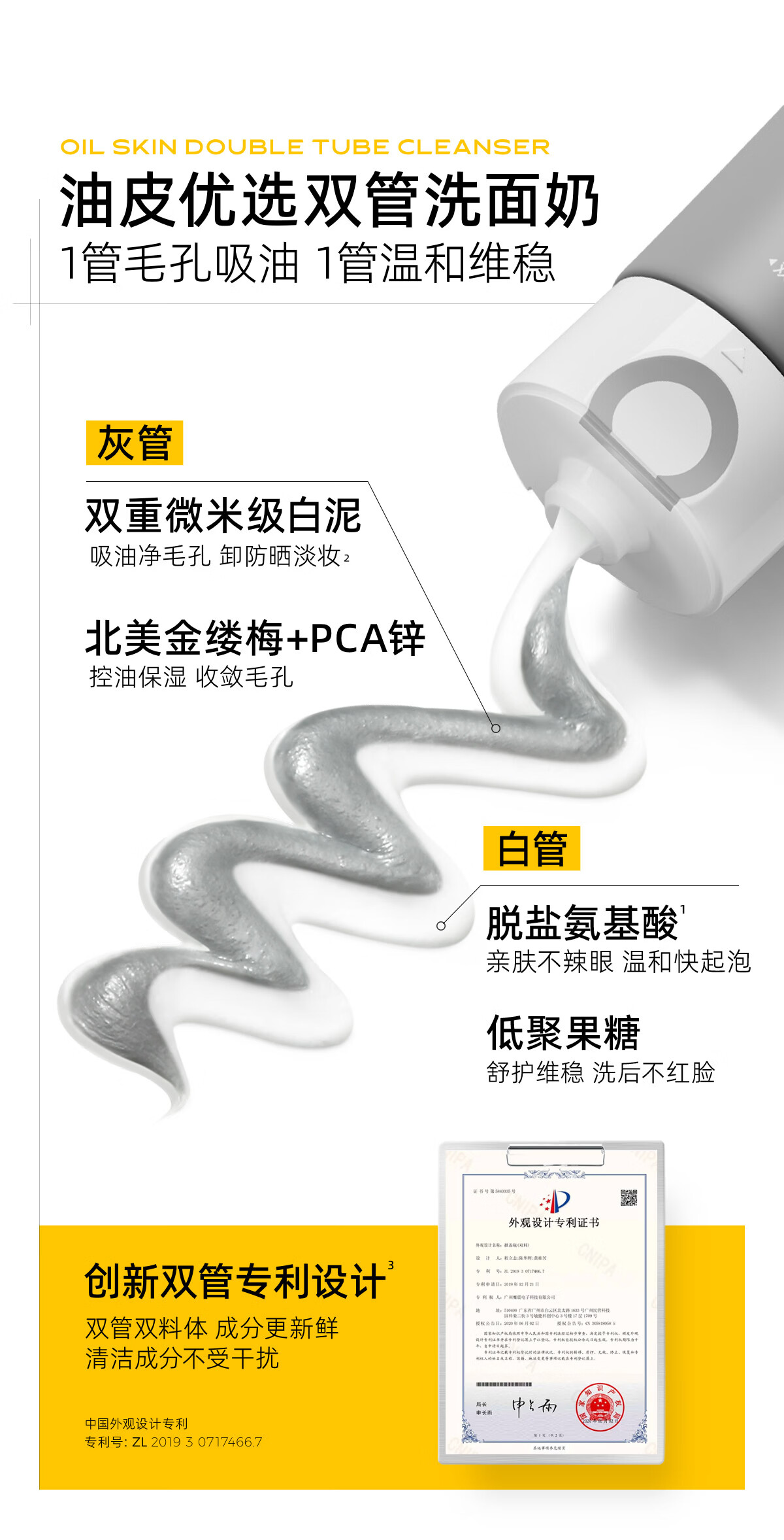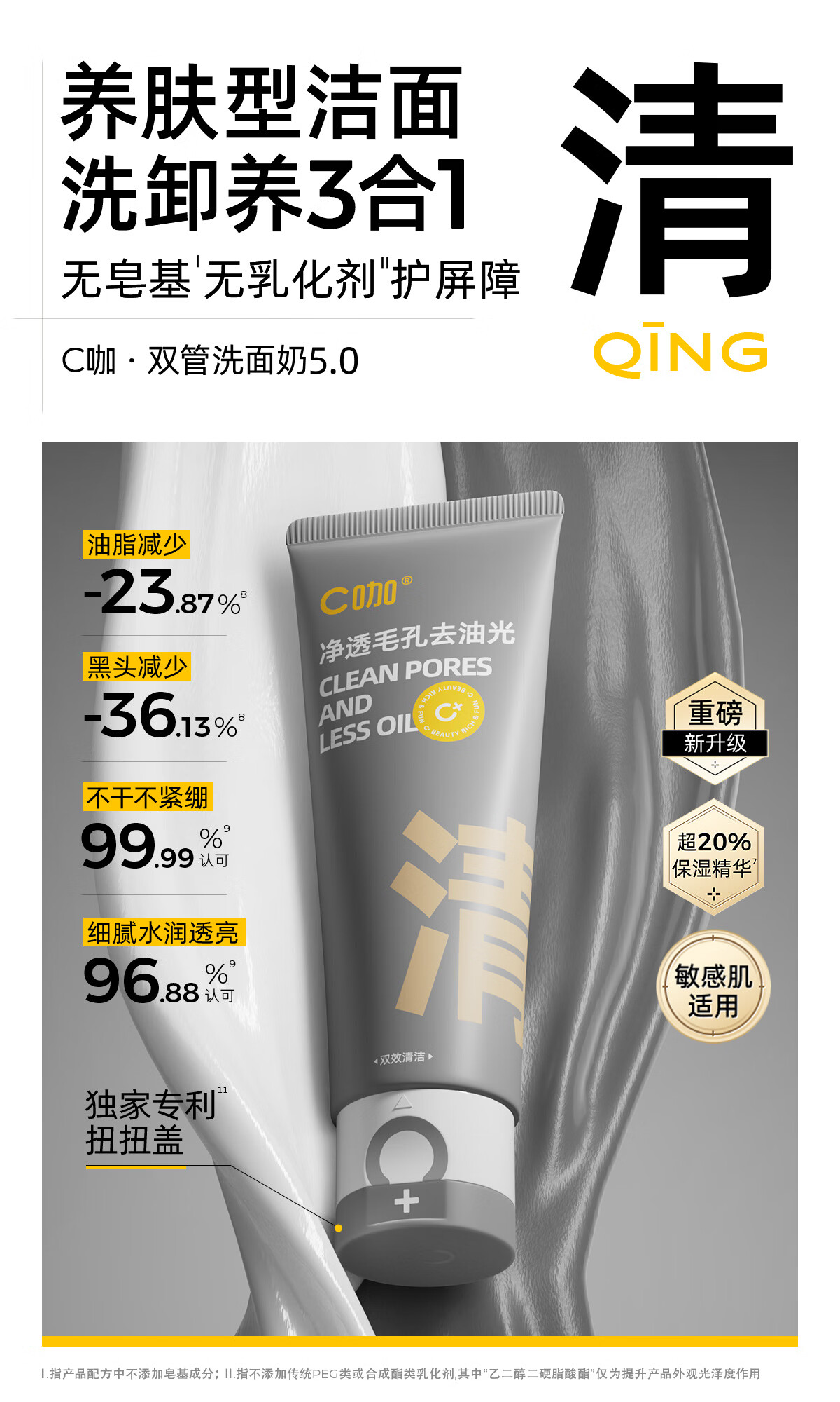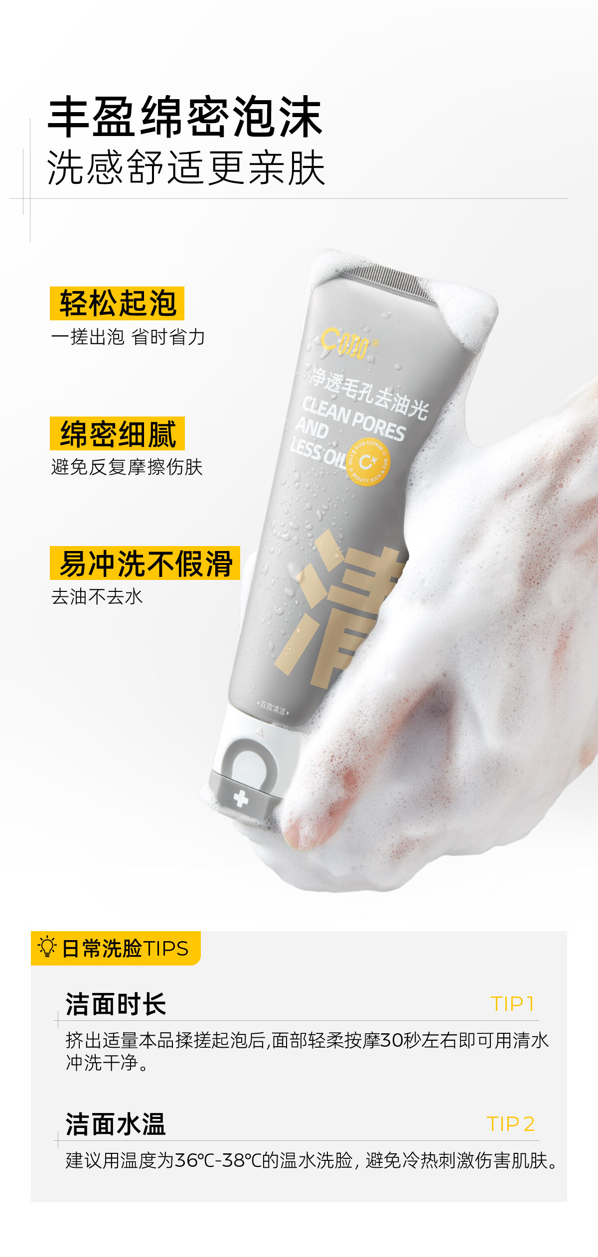 C咖双管洗面奶氨基酸控油去油男女士清洁毛孔卸防晒淡妆洁面乳 【镇店爆款】清净洁面80g*1