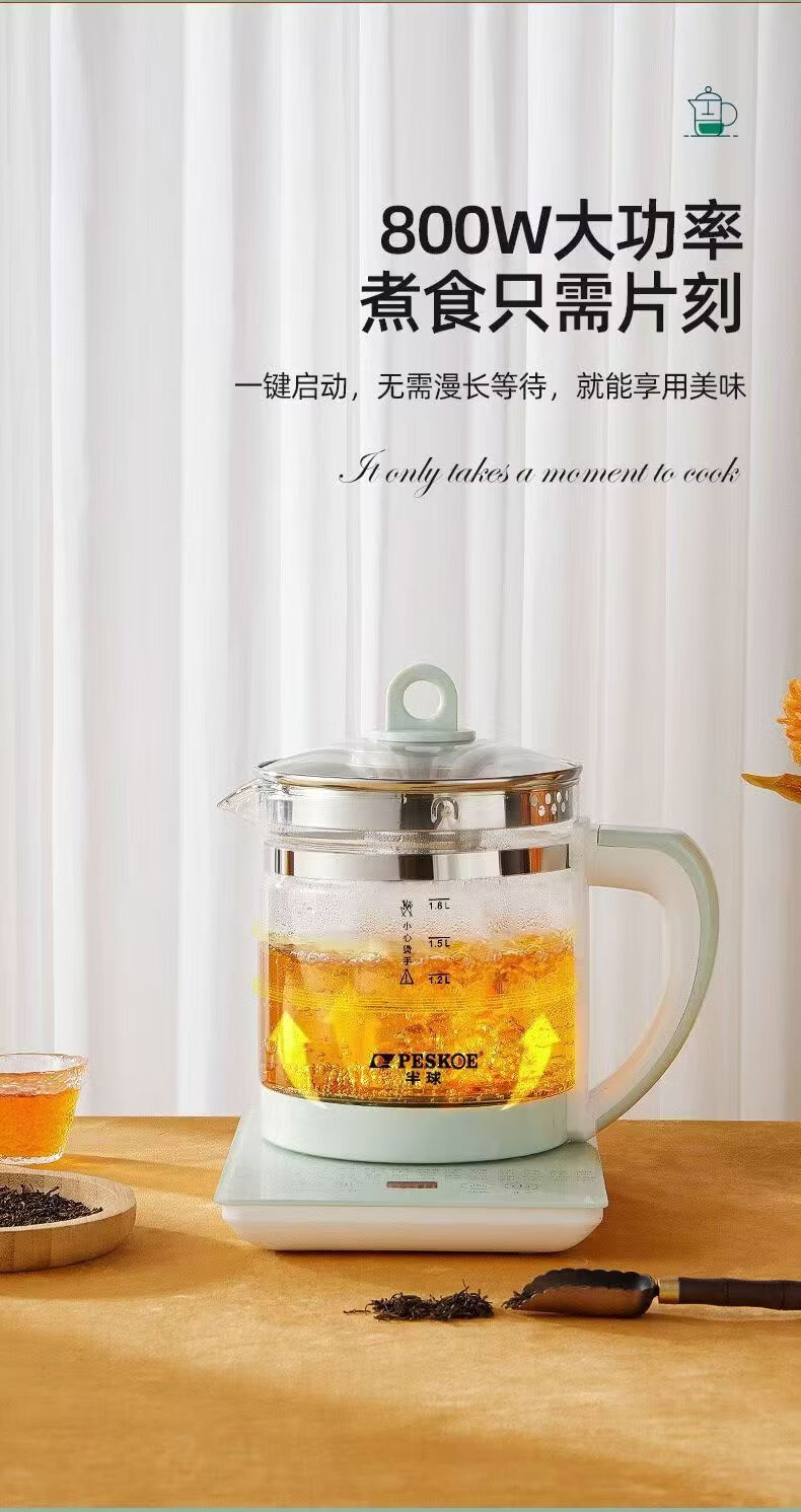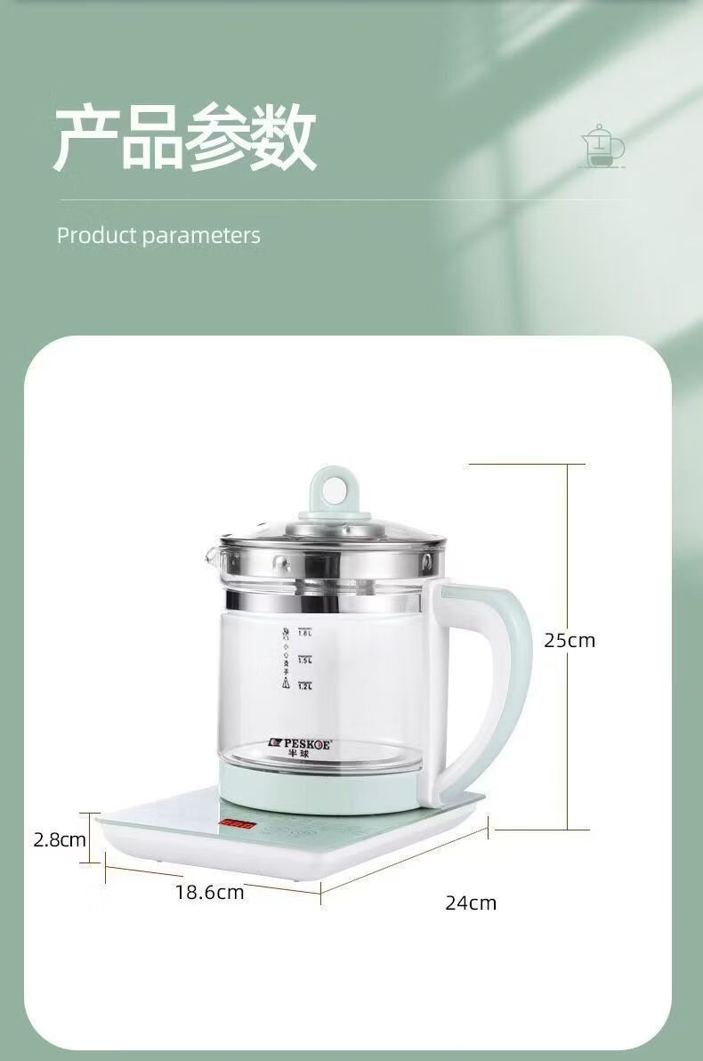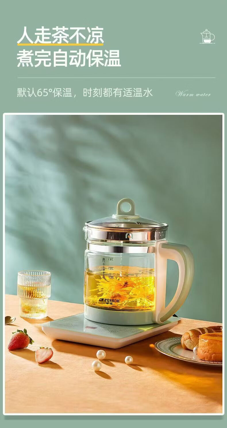 养生壶多功能电热水壶烧水花茶壶办公室煎药壶玻璃煮花茶煮茶壶 底座+壶身 1.8L 大容量