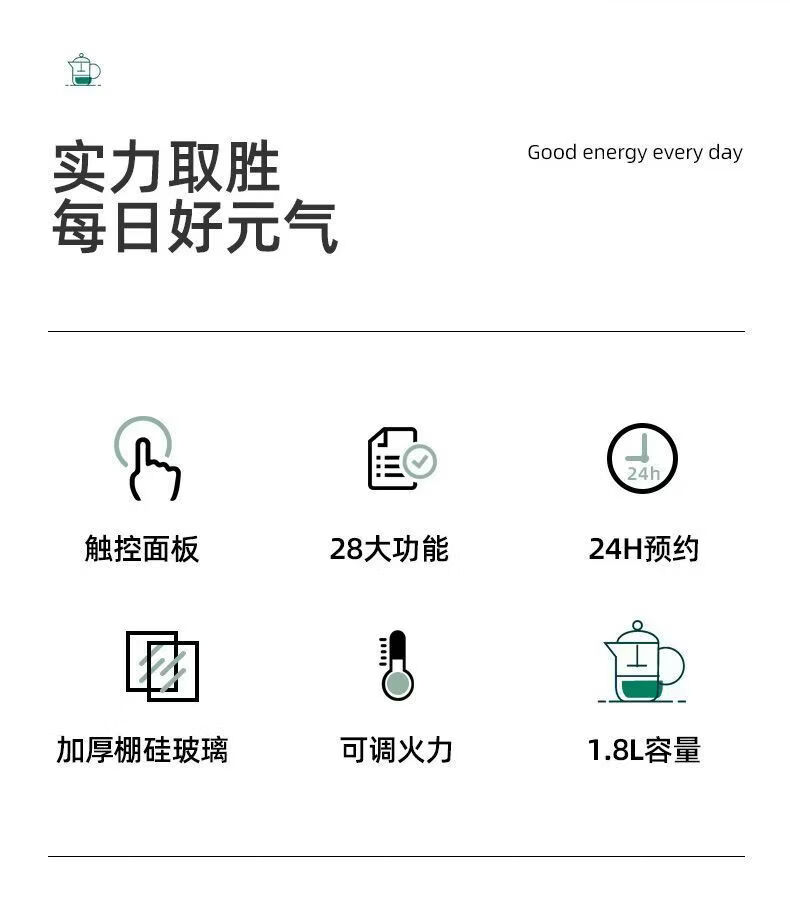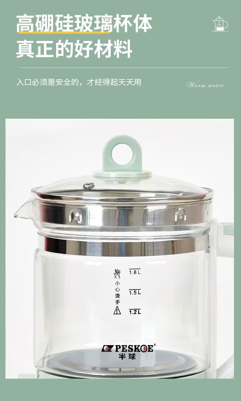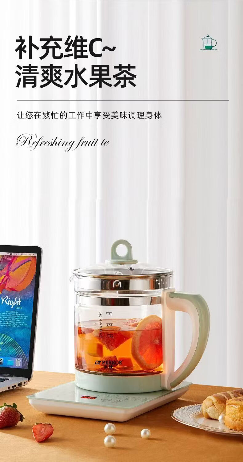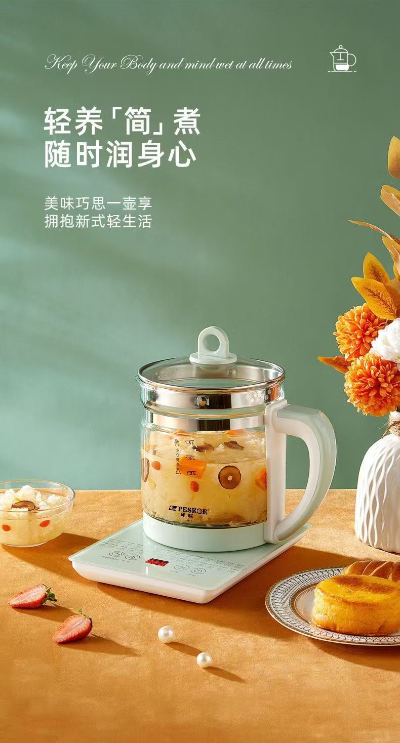 养生壶多功能电热水壶烧水花茶壶办公室煎药壶玻璃煮花茶煮茶壶 底座+壶身 1.8L 大容量