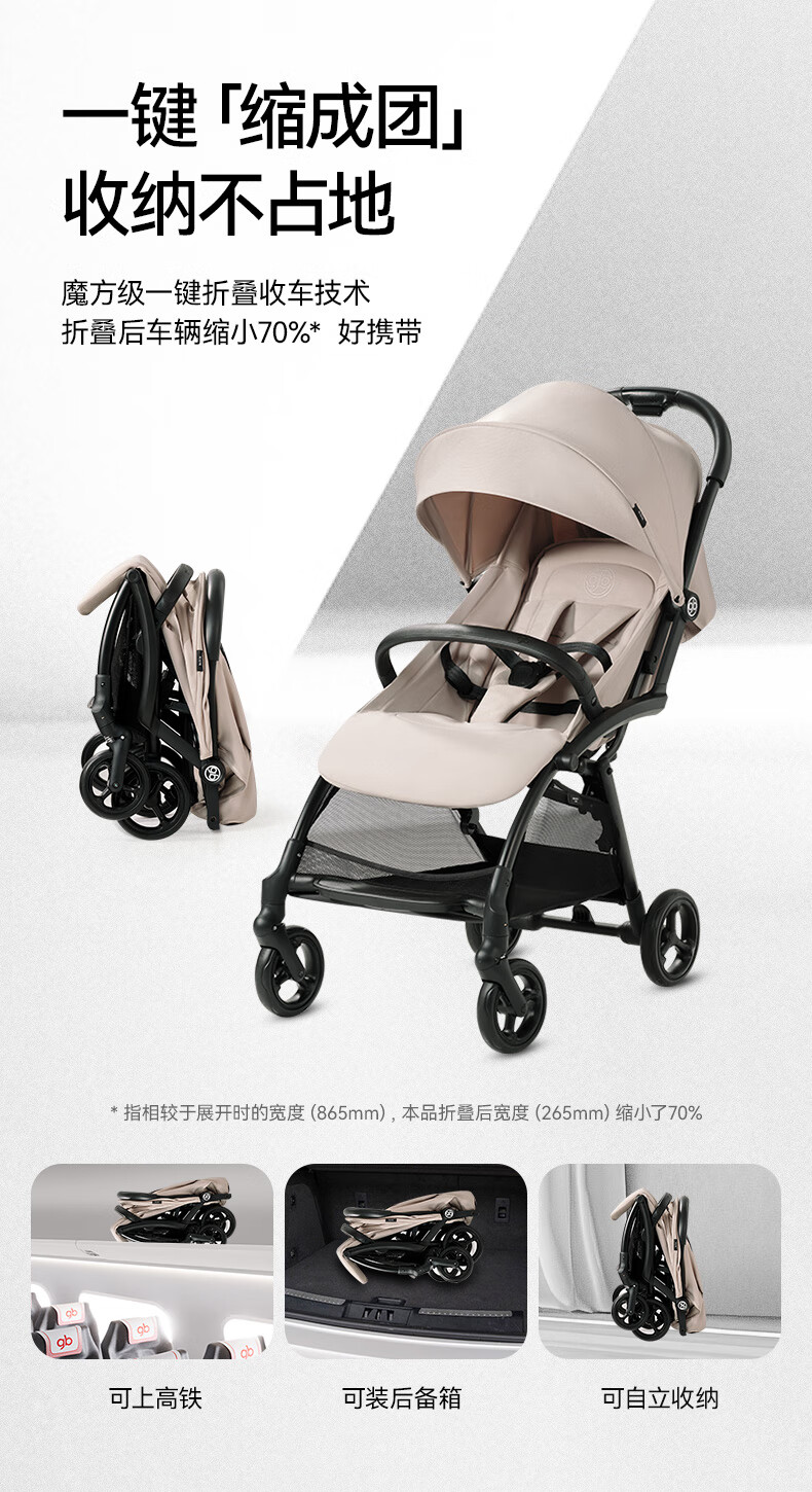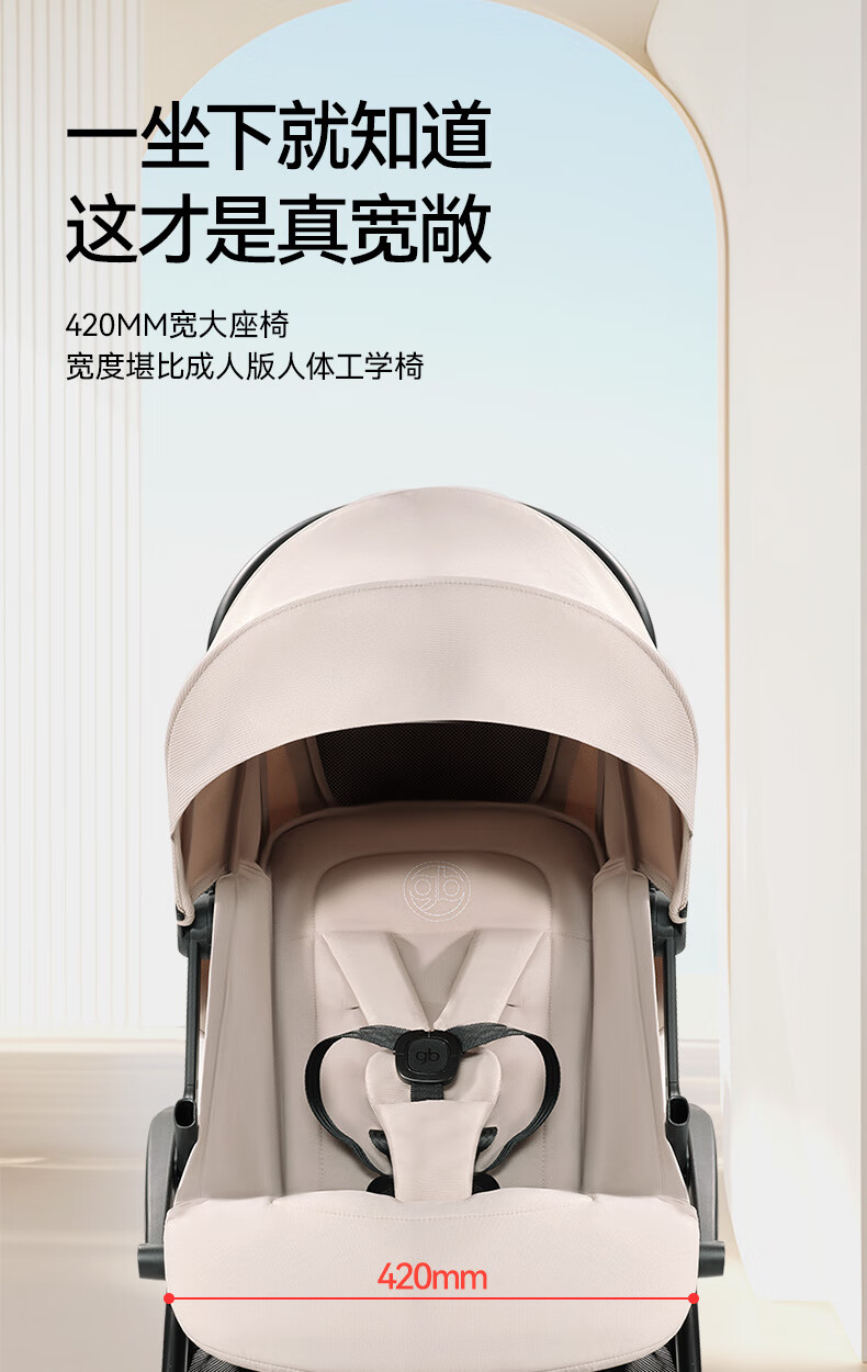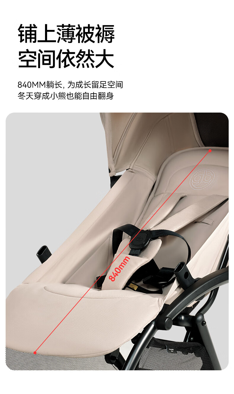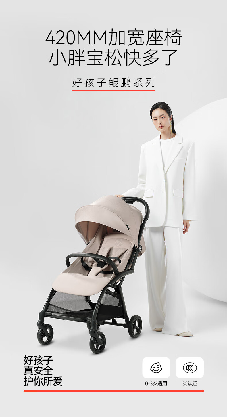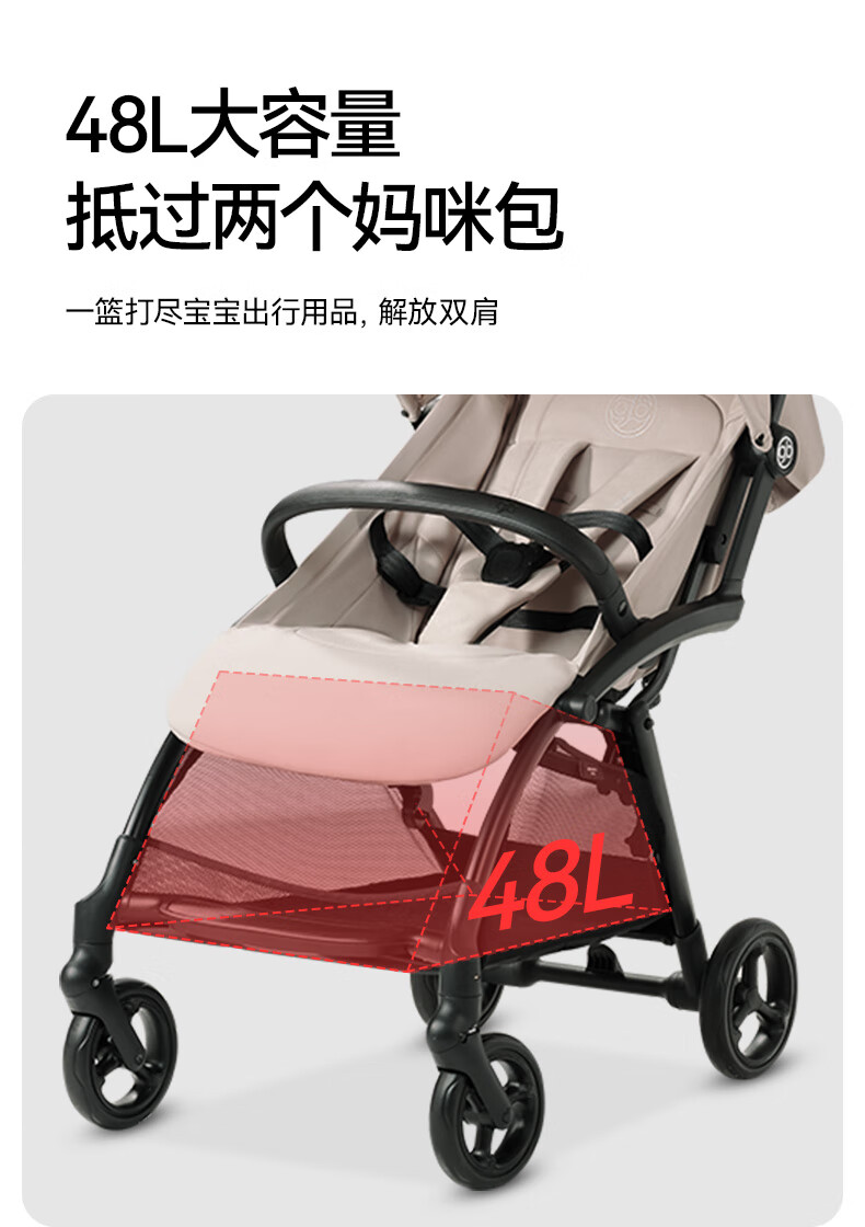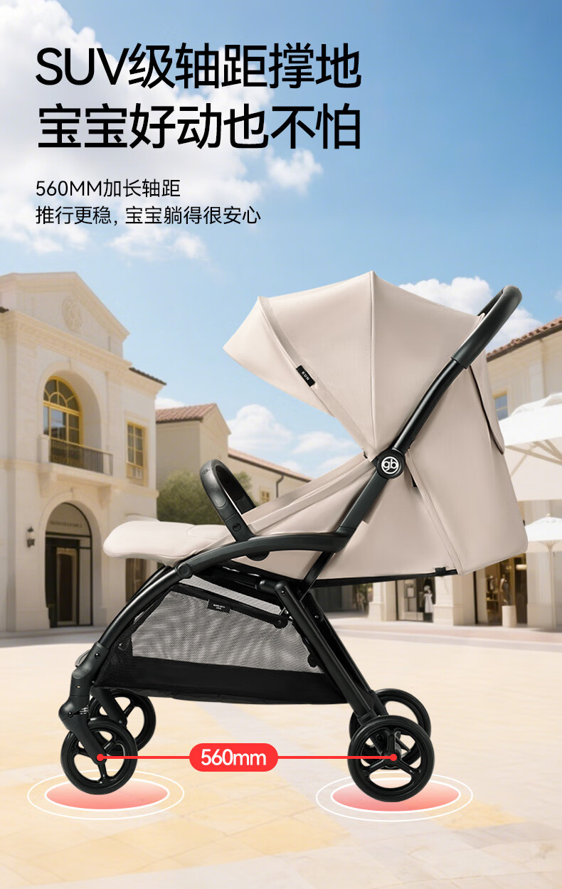 gb好孩子鲲鹏安全四轮新生婴幼儿推车宽大可坐可躺便携推车 D2800 神秘黑-Pro【升级抗震越障】D2800-H