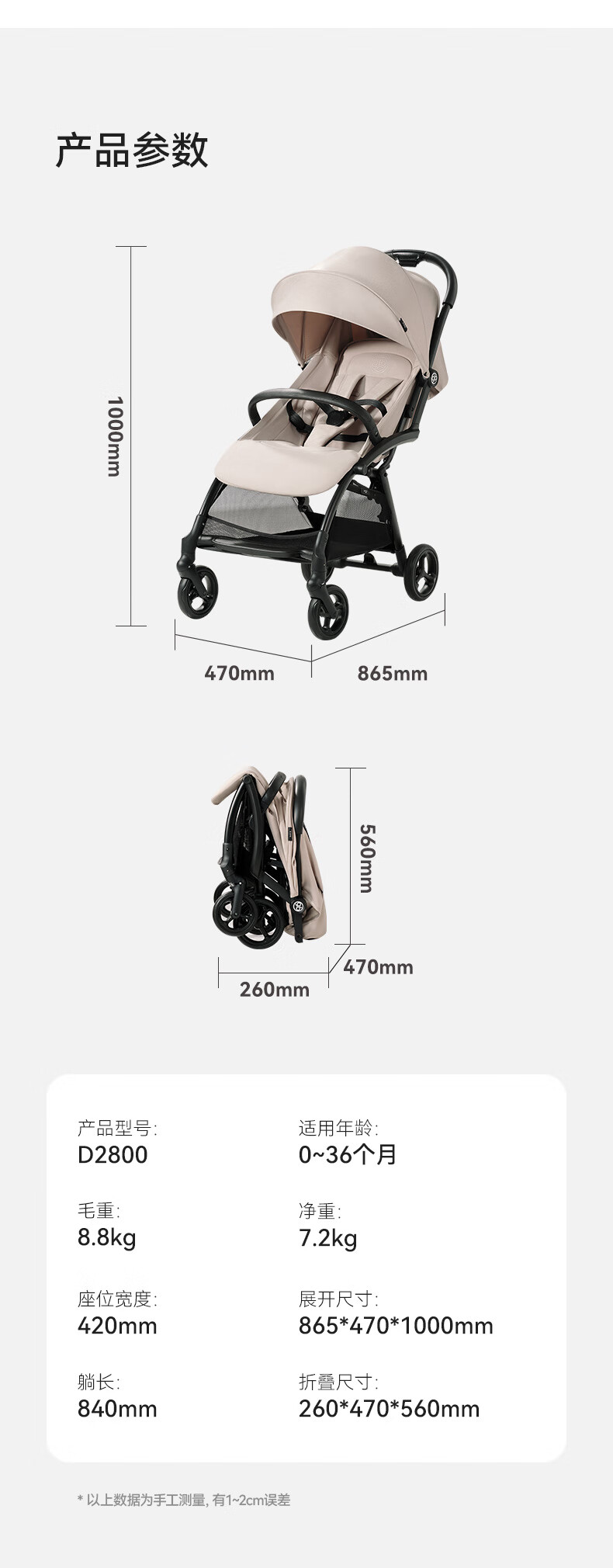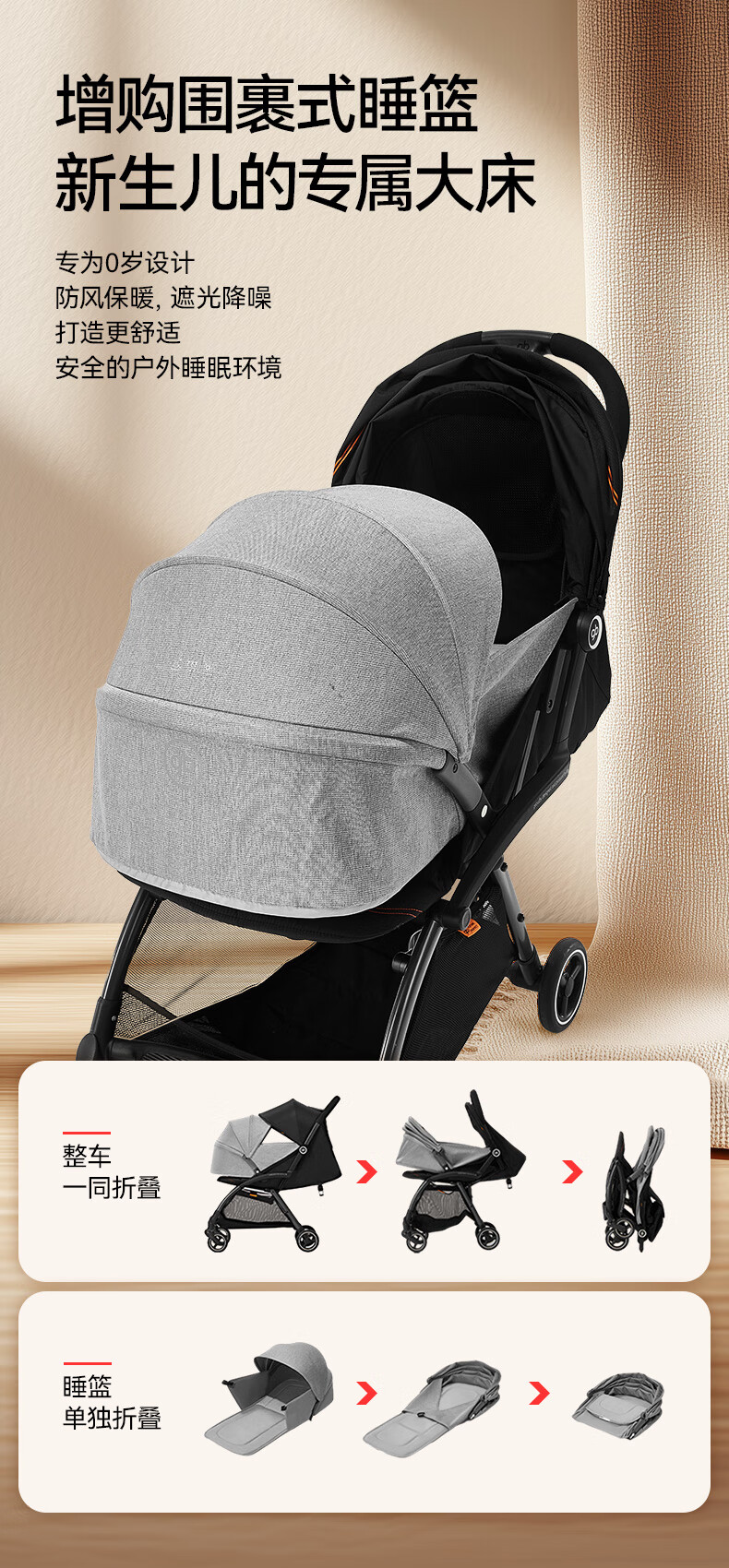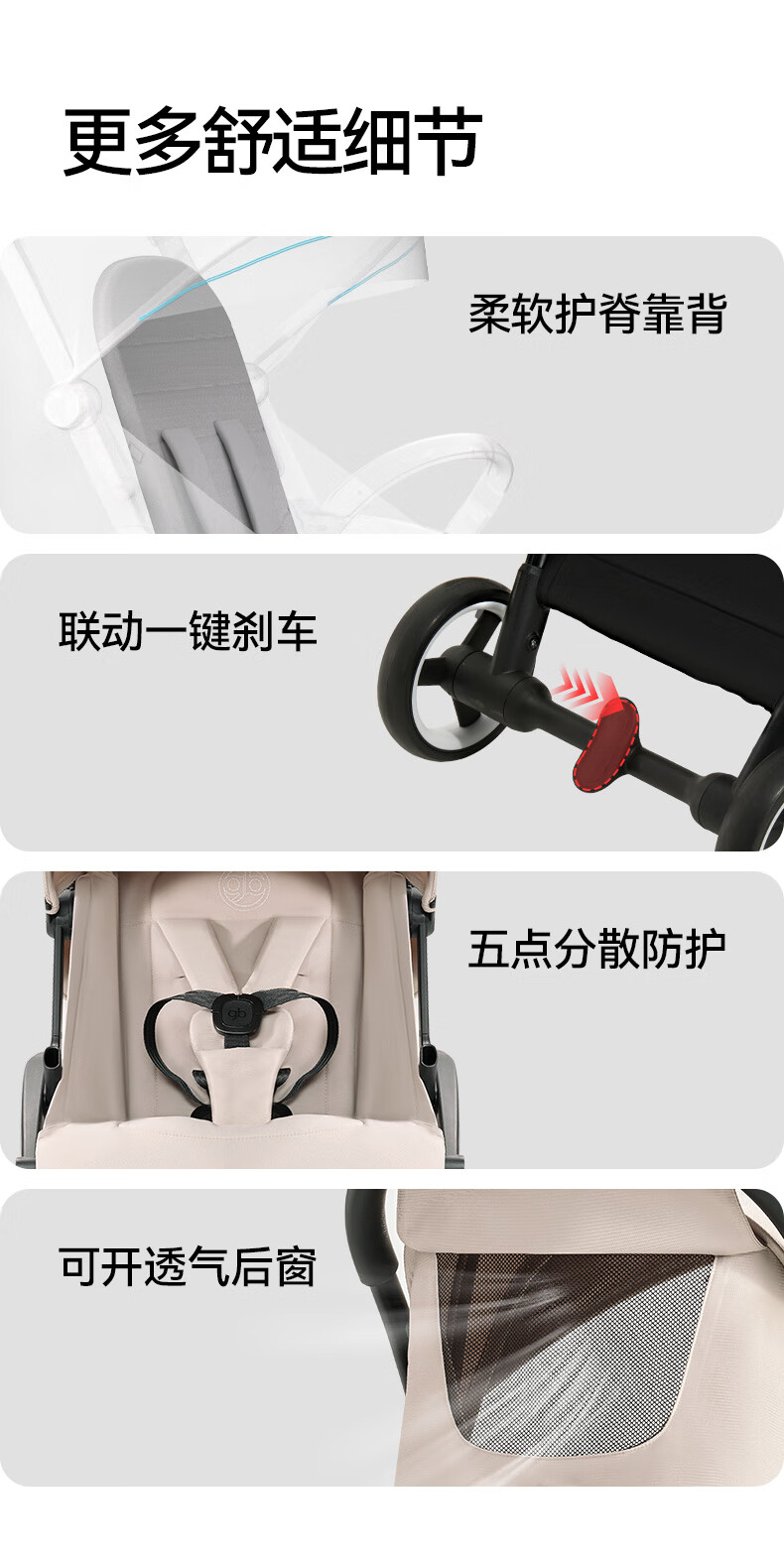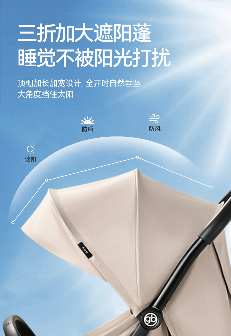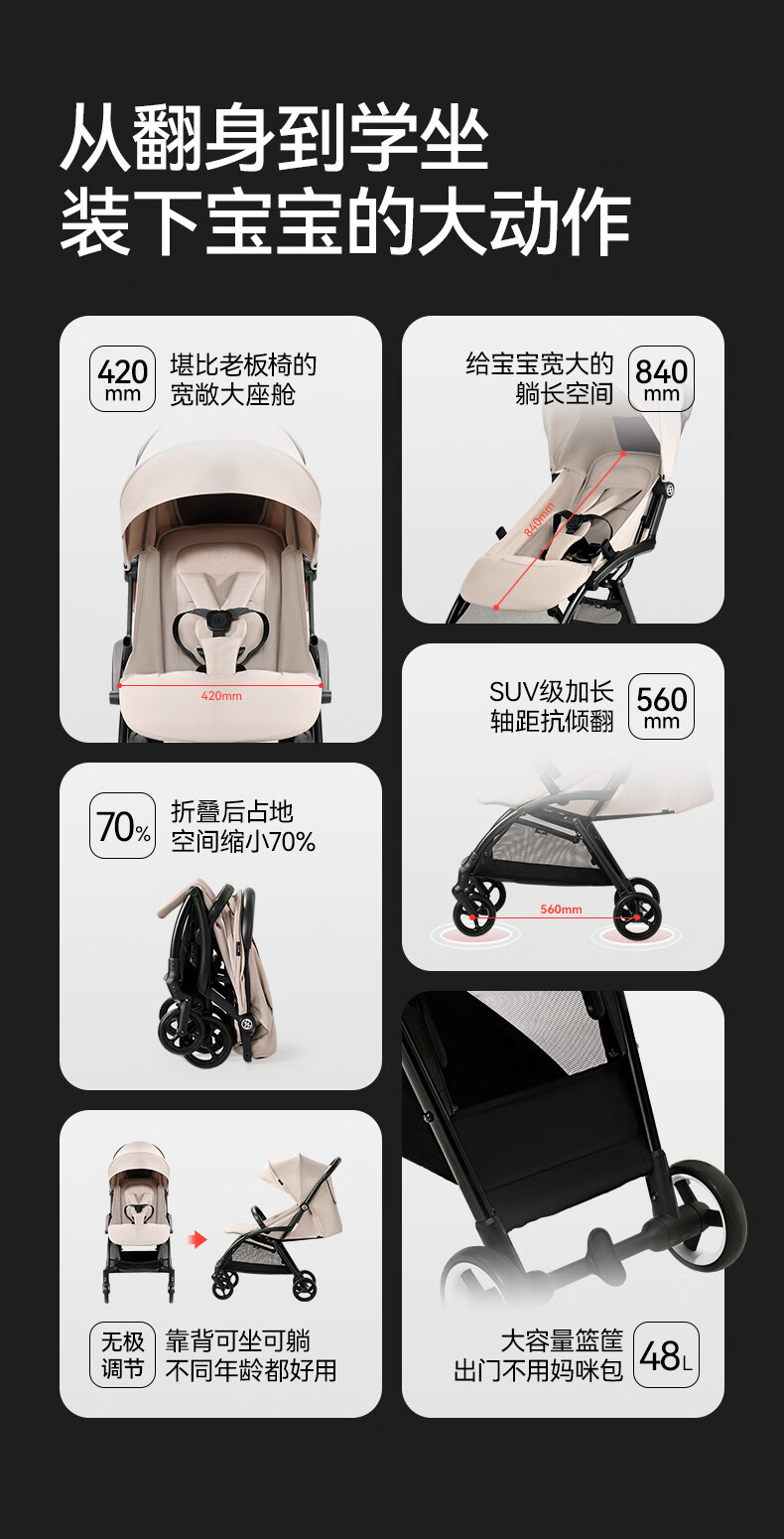 gb好孩子鲲鹏安全四轮新生婴幼儿推车宽大可坐可躺便携推车 D2800 神秘黑-Pro【升级抗震越障】D2800-H