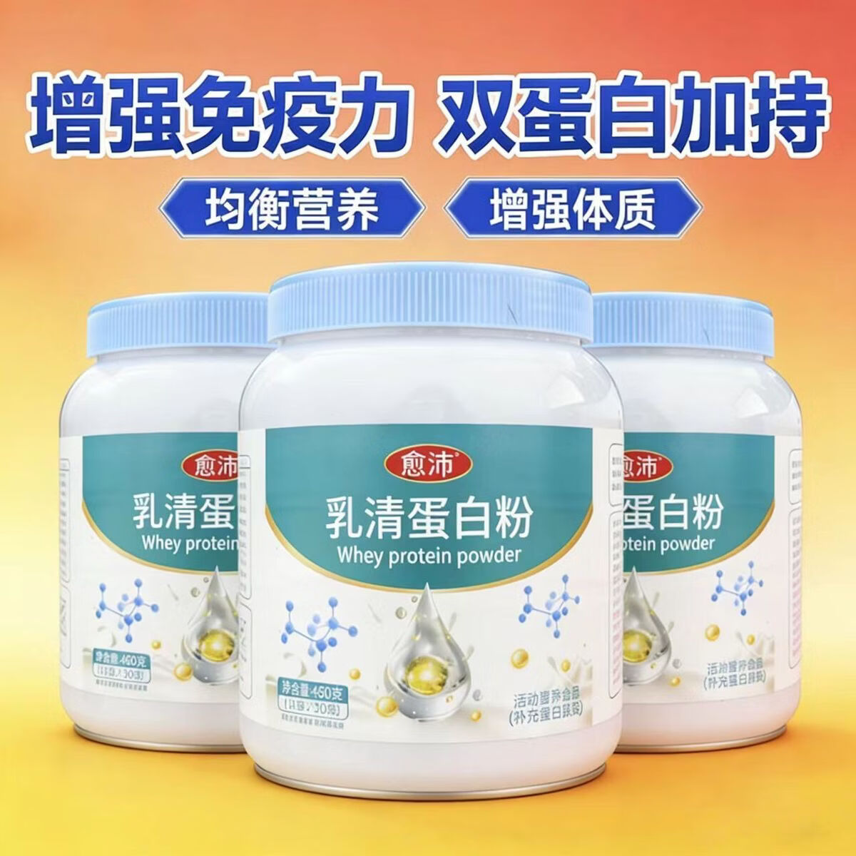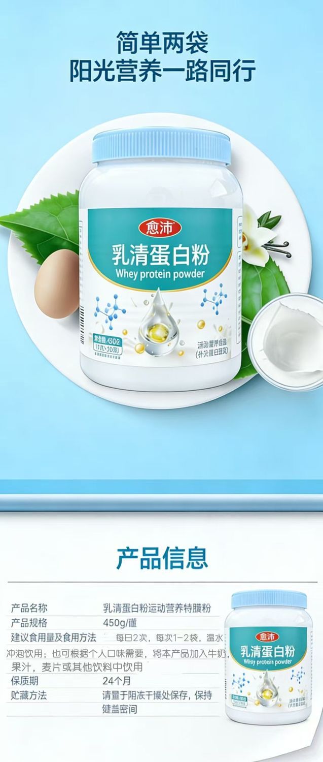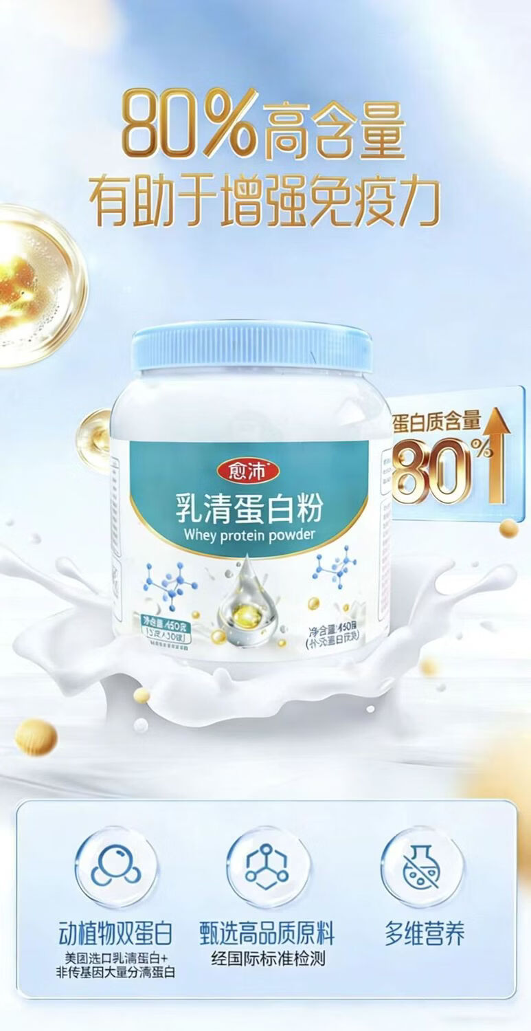 愈沛乳清蛋白粉 450g/罐 80%蛋白质含量 冲调即食代餐15g*30袋 乳清蛋白 450g*1罐