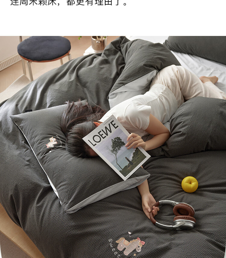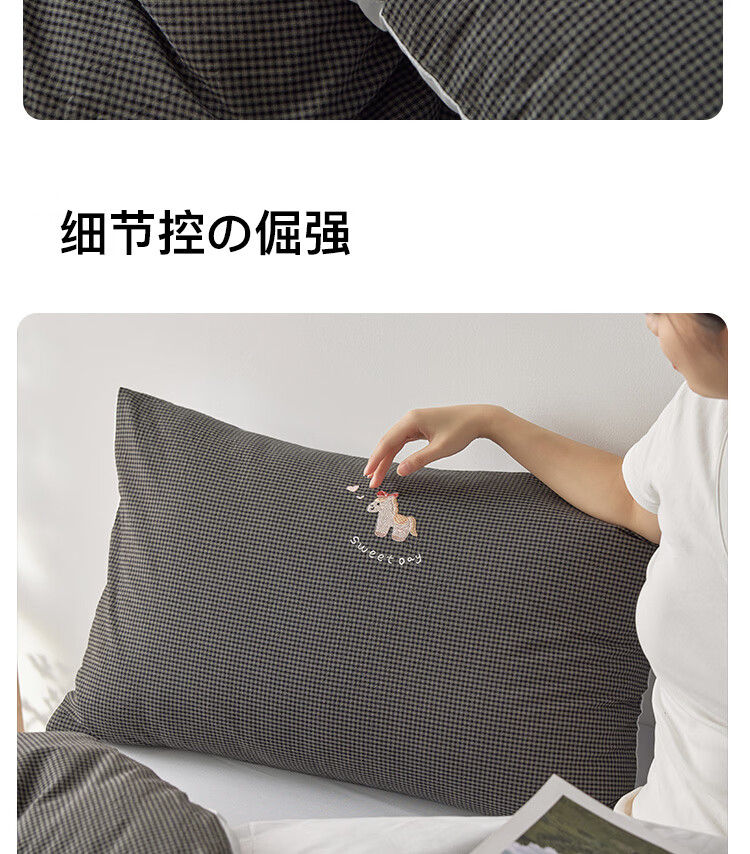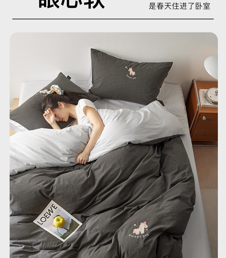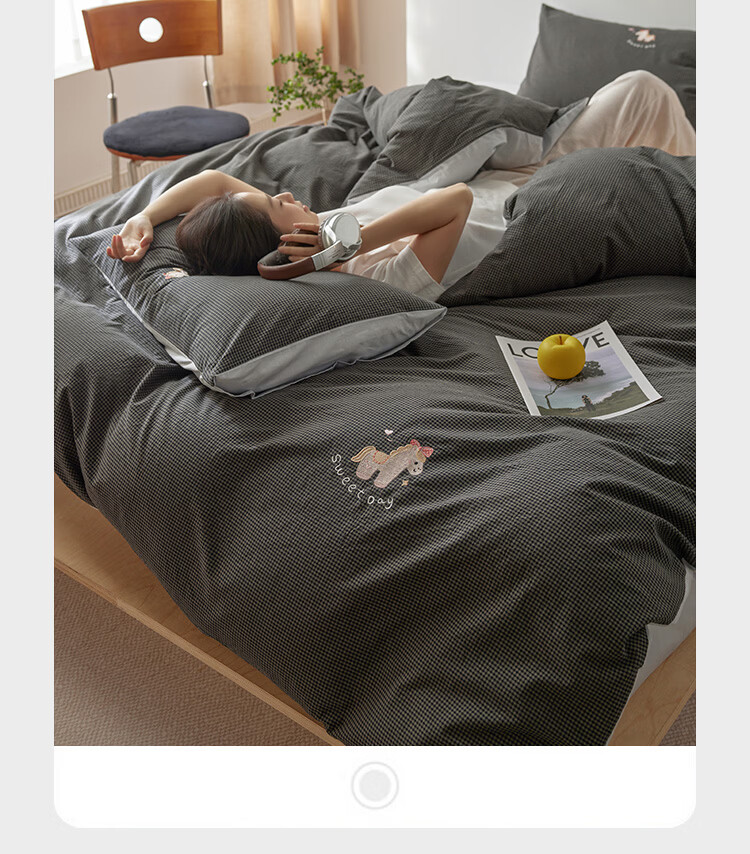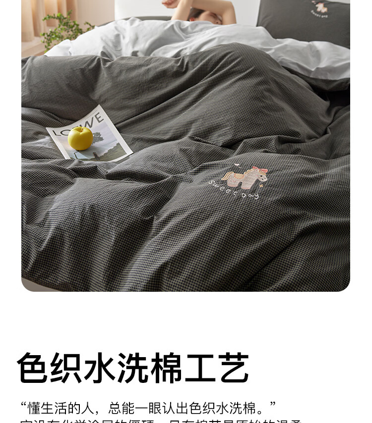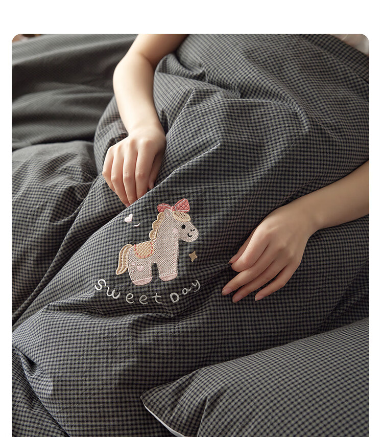 ROLAND LIVE全棉色织水洗棉刺绣四件套文艺风小格子被套透气学生宿舍三件套 KZ 全棉水洗棉套件-马上幸运 1.2米床 床单款 【被套150*200cm】