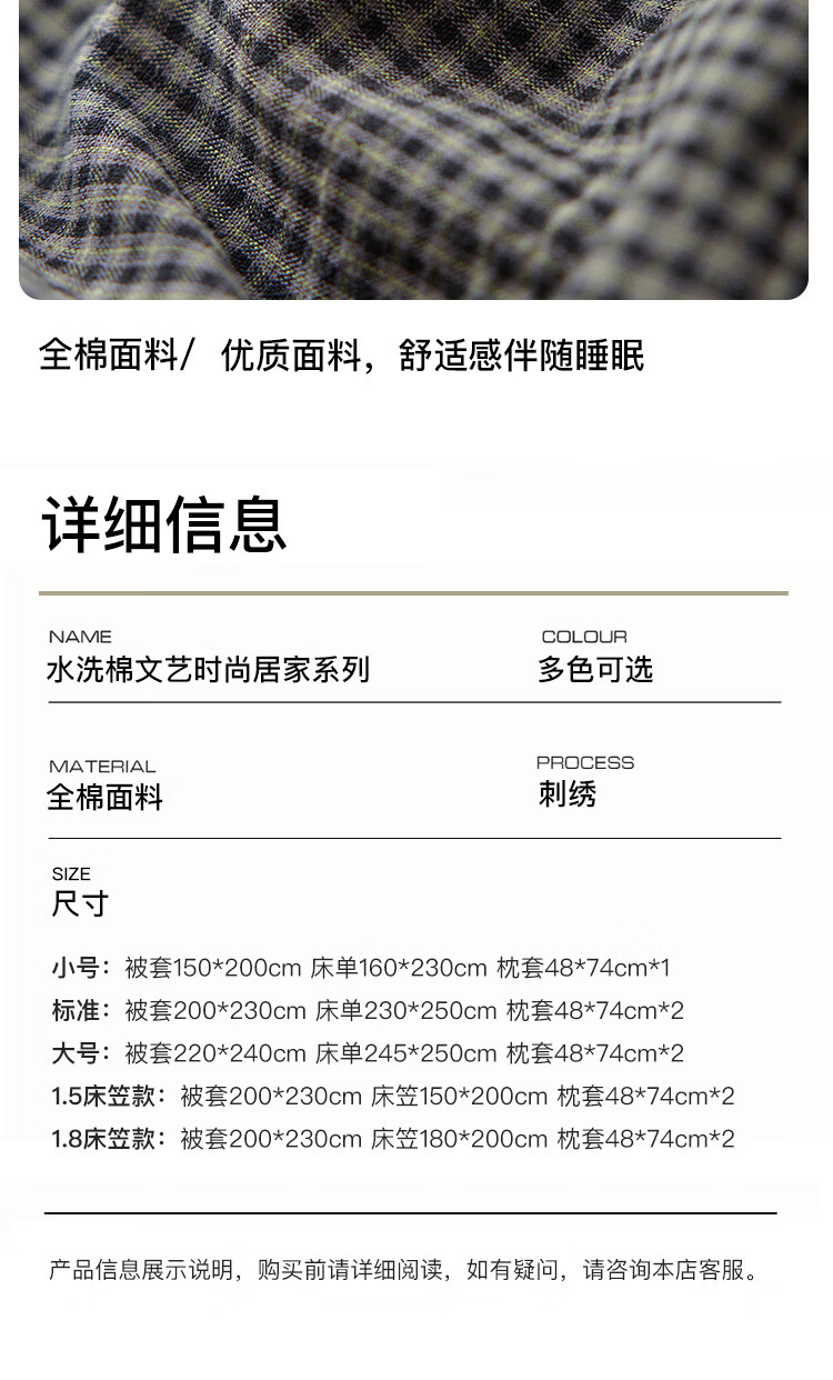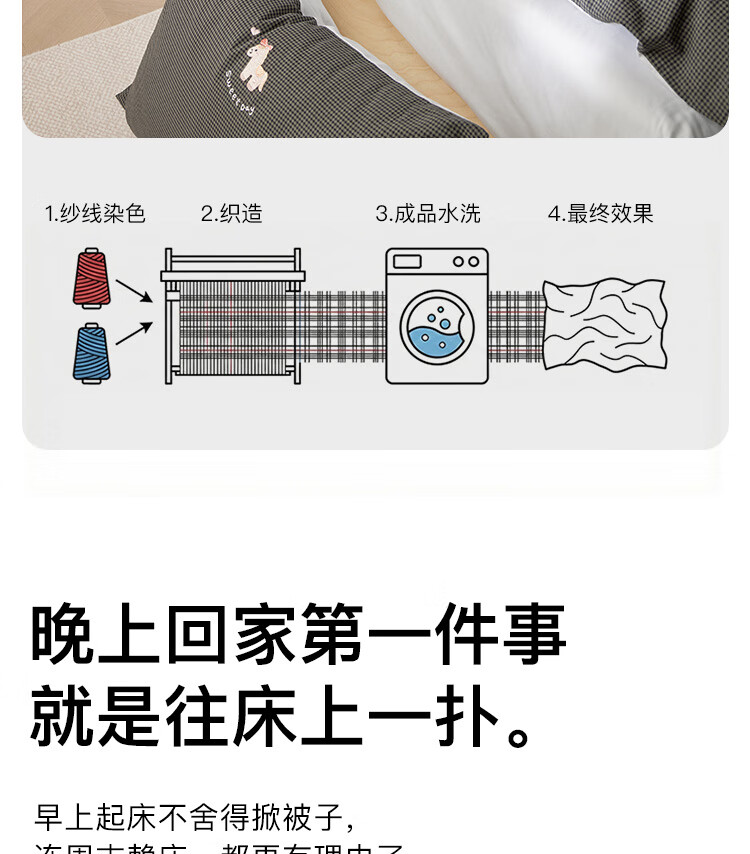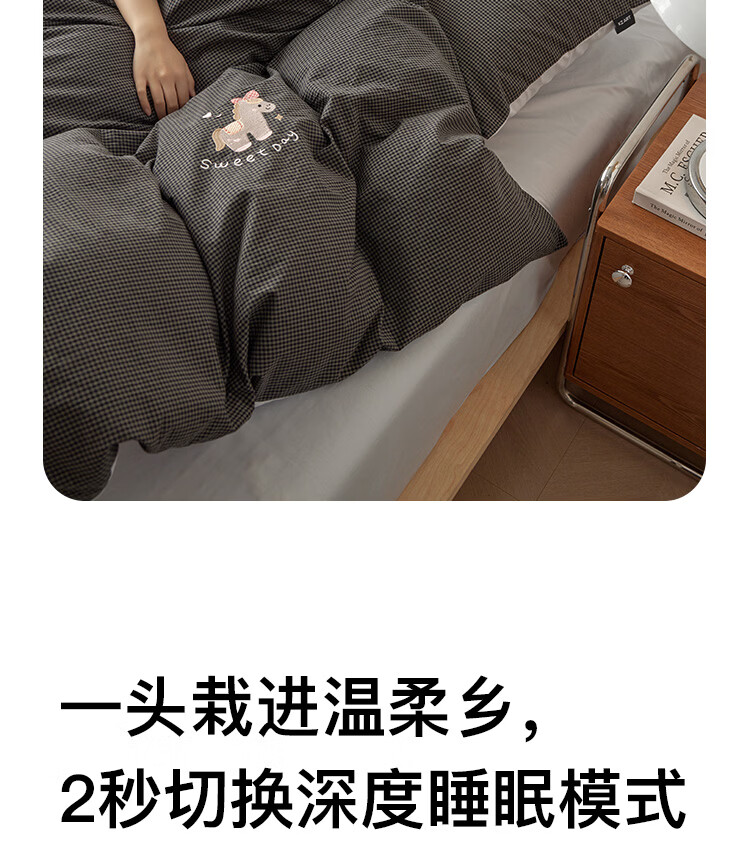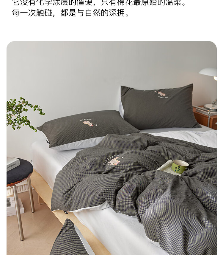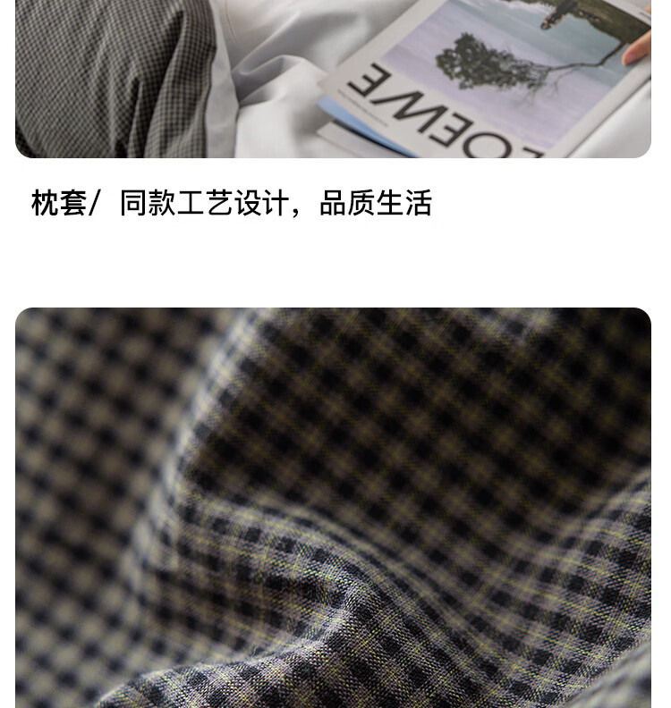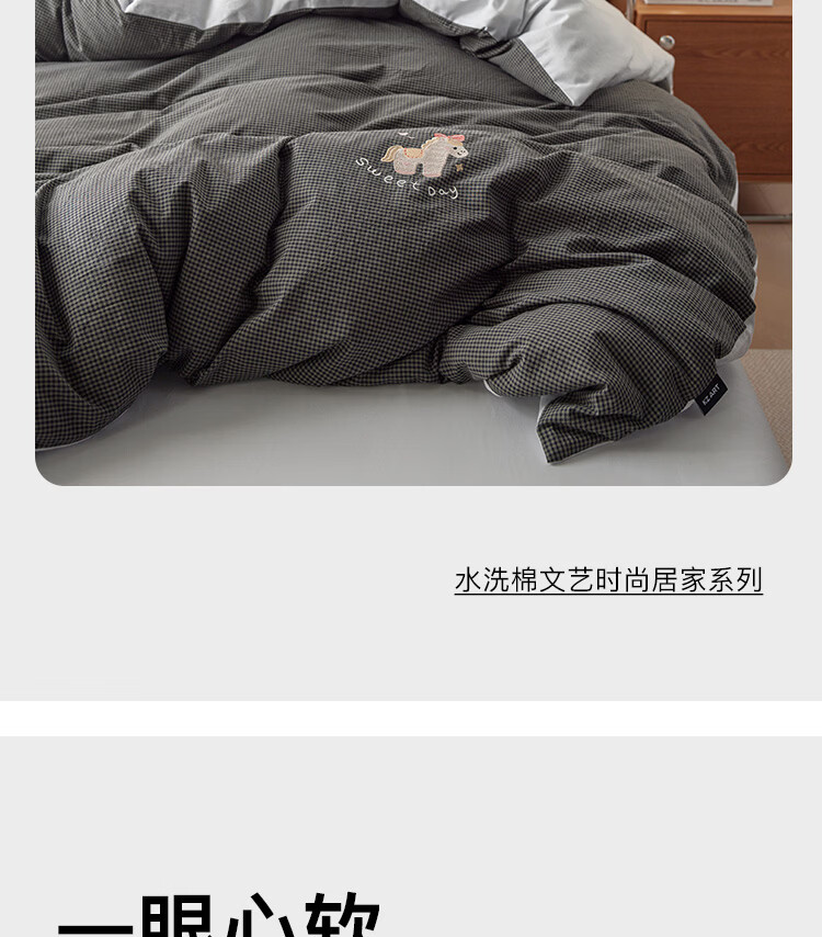 ROLAND LIVE全棉色织水洗棉刺绣四件套文艺风小格子被套透气学生宿舍三件套 KZ 全棉水洗棉套件-马上幸运 1.2米床 床单款 【被套150*200cm】