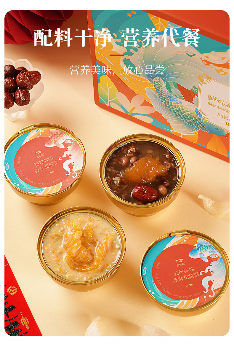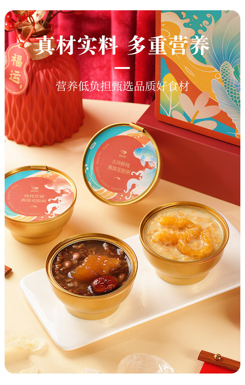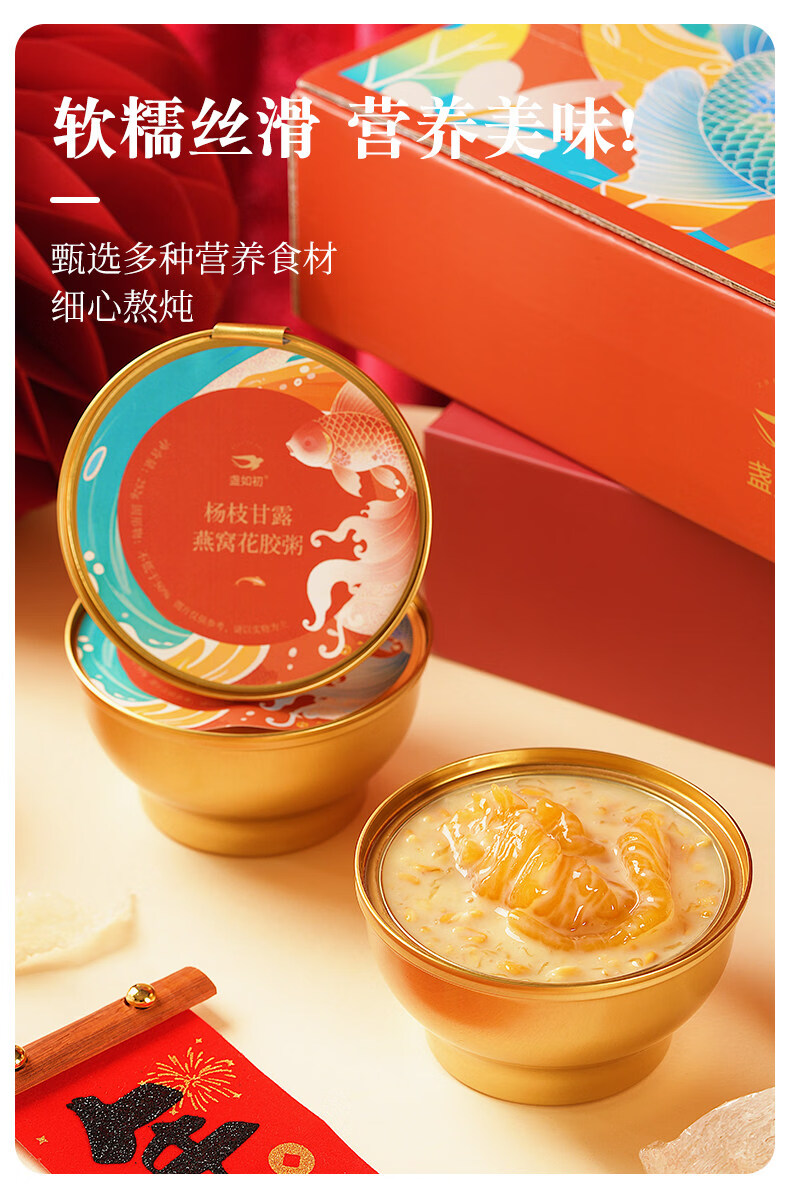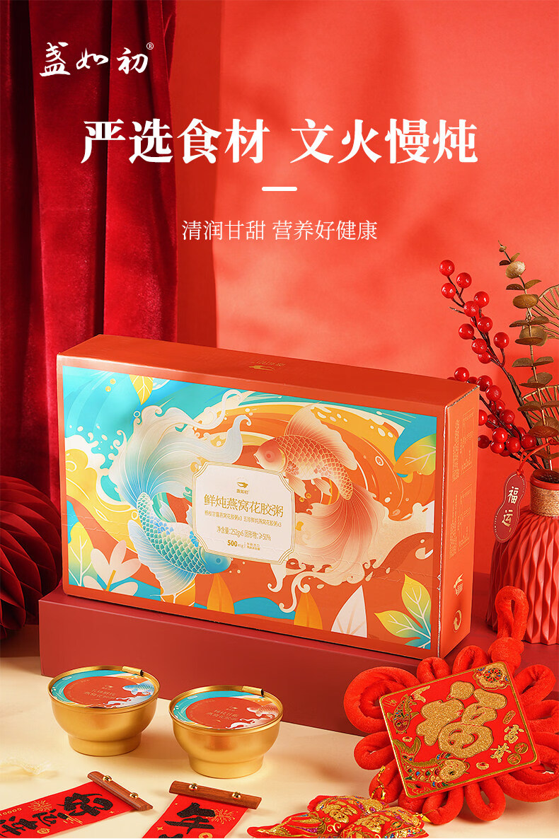 盏如初【年年有鱼】鲜炖燕窝花胶羹252g*6碗即食深海鱼胶羹年货礼盒装 鲜炖燕窝花胶粥 252g*6碗 /1盒【2个口味】