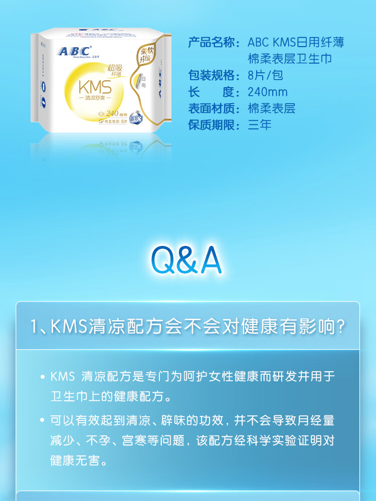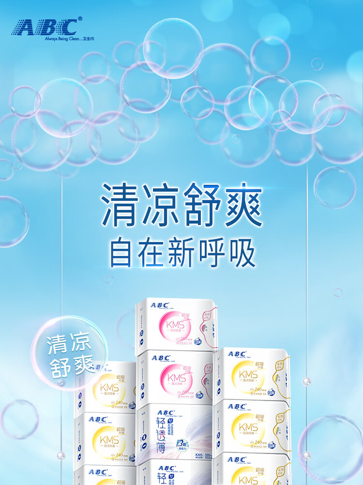ABCKMS纤薄健康配方超薄透气日夜卫生巾套装京东自营10包70片