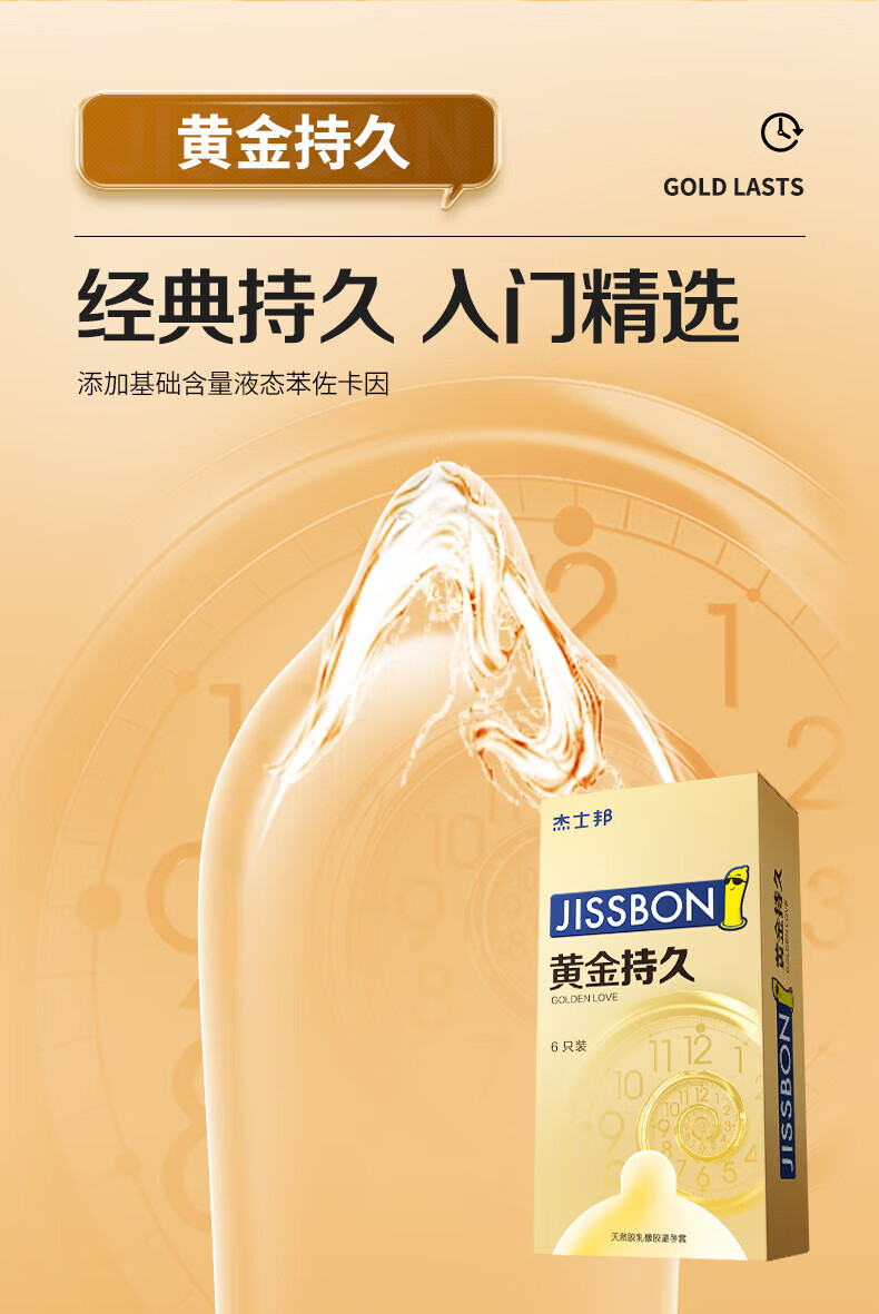 杰士邦延时避孕套黄金持久安全套超薄大颗粒带刺阴狼牙套防早泄计生用品 持久性价比【共24只】黄金持久4+超薄19+狼牙套