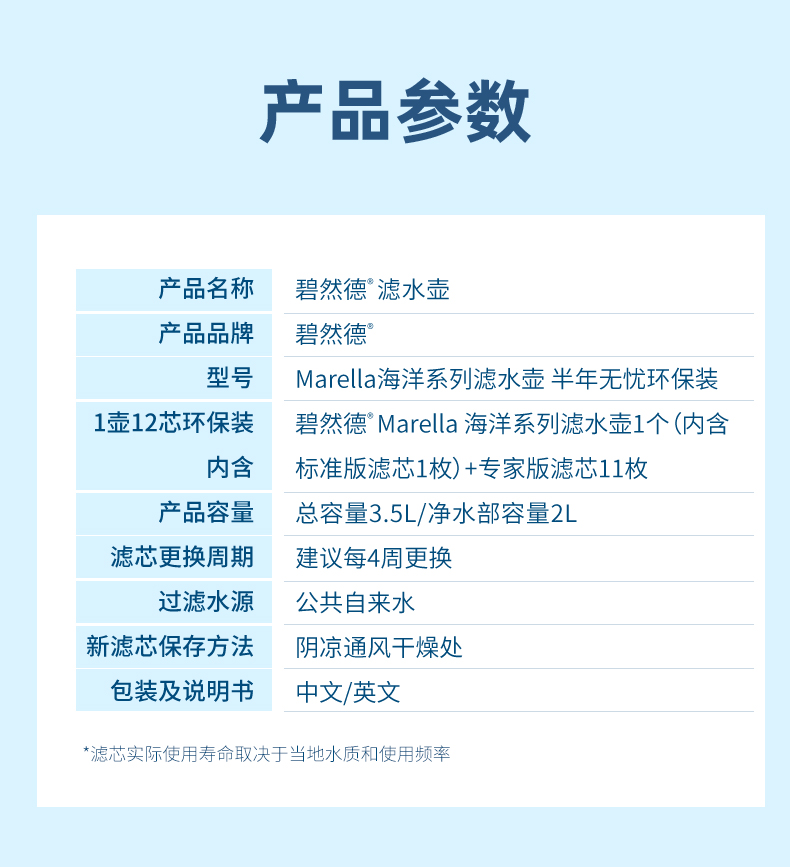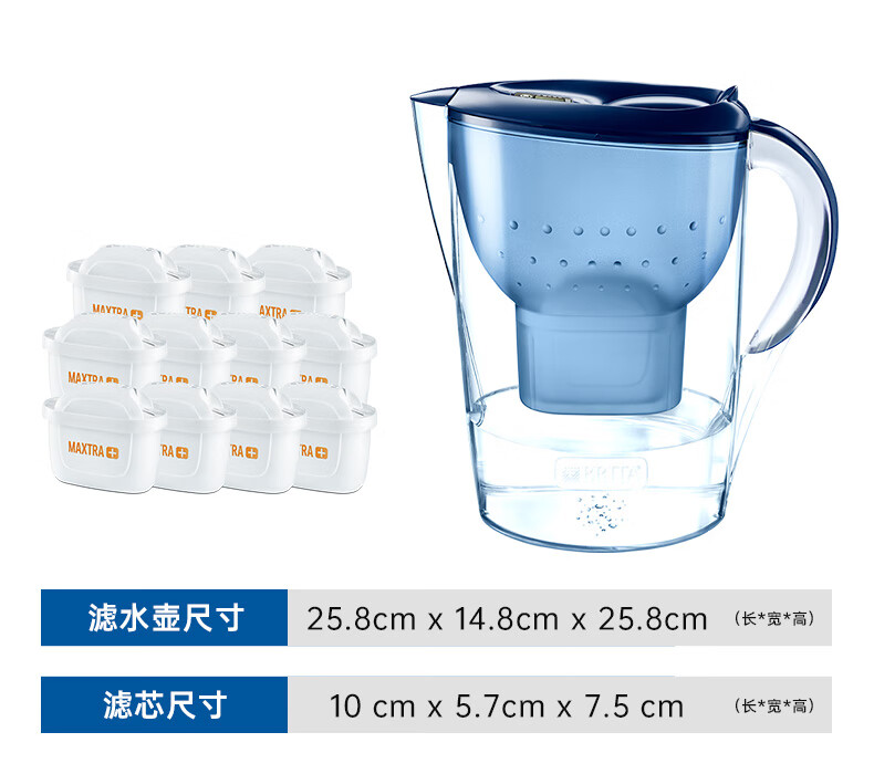 碧然德(BRITA)过滤净水器 滤水壶 海洋系列 3.5L(蓝色)+去水垢专家版滤芯11枚 环保加固包装