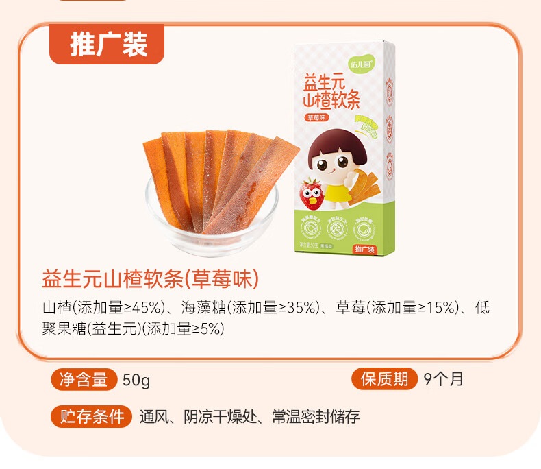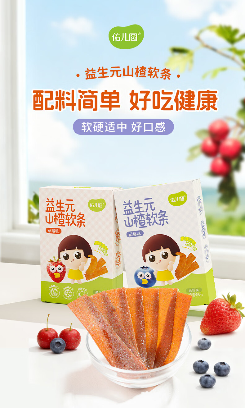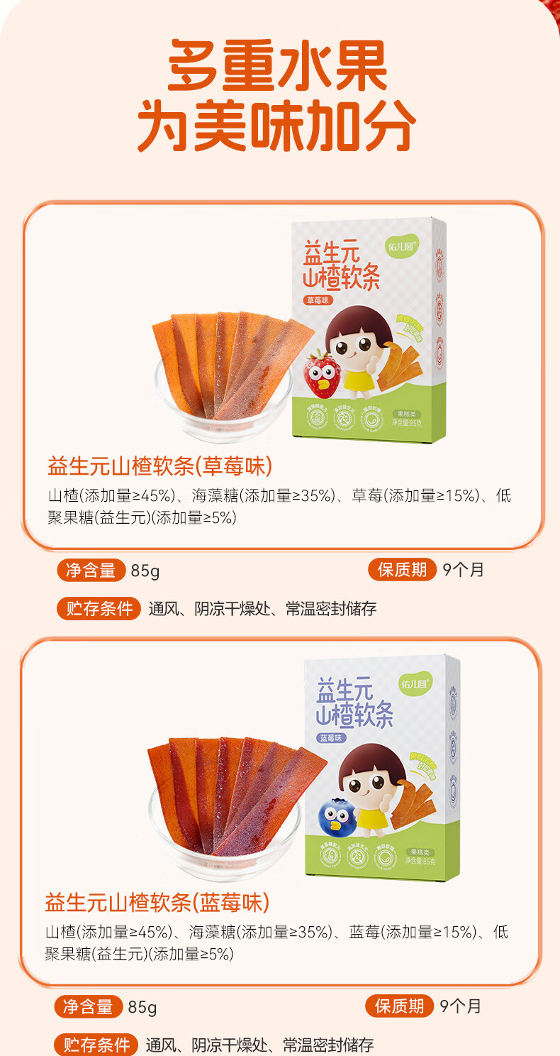 佑儿圆益生元山楂软条85g儿童果条草莓味蓝莓味水果片独立包装果干食品 草莓味50g