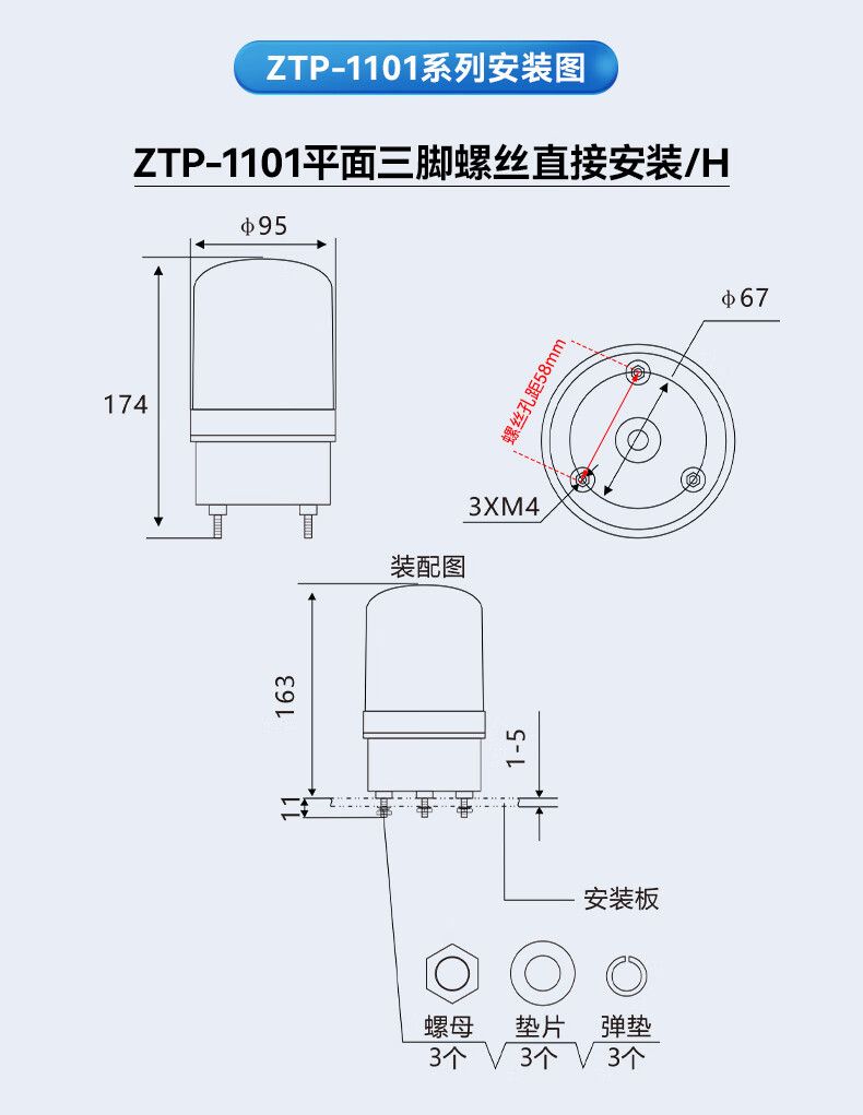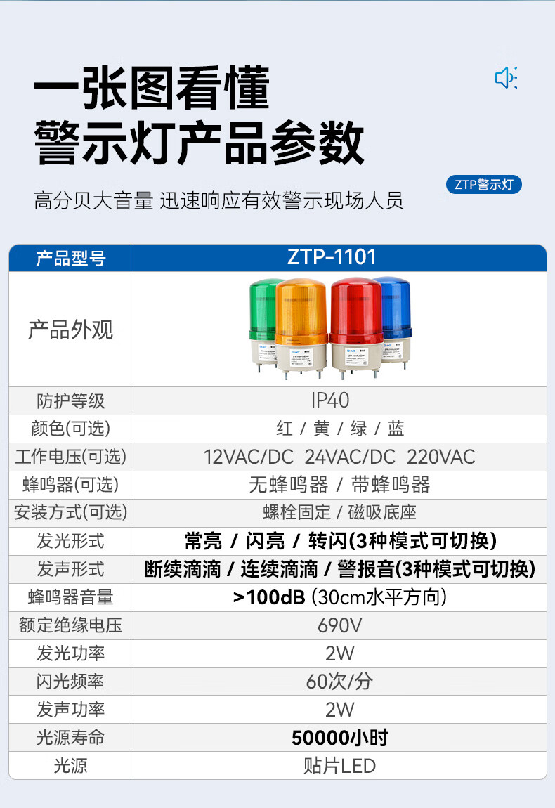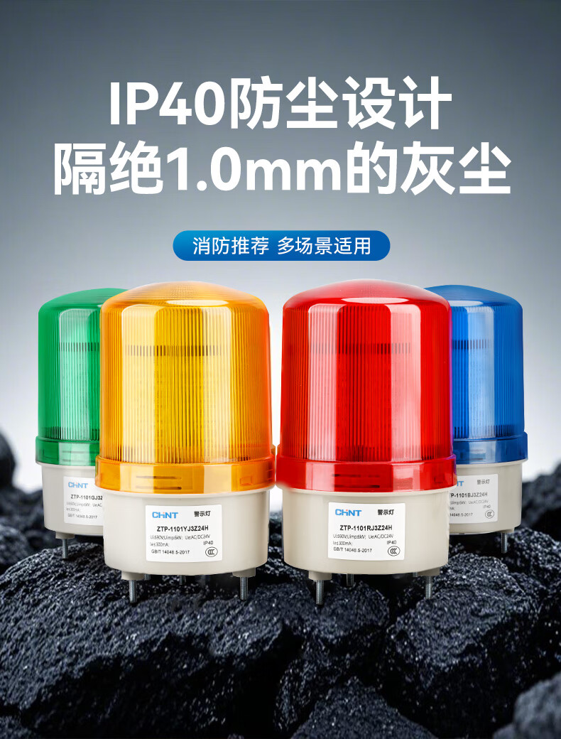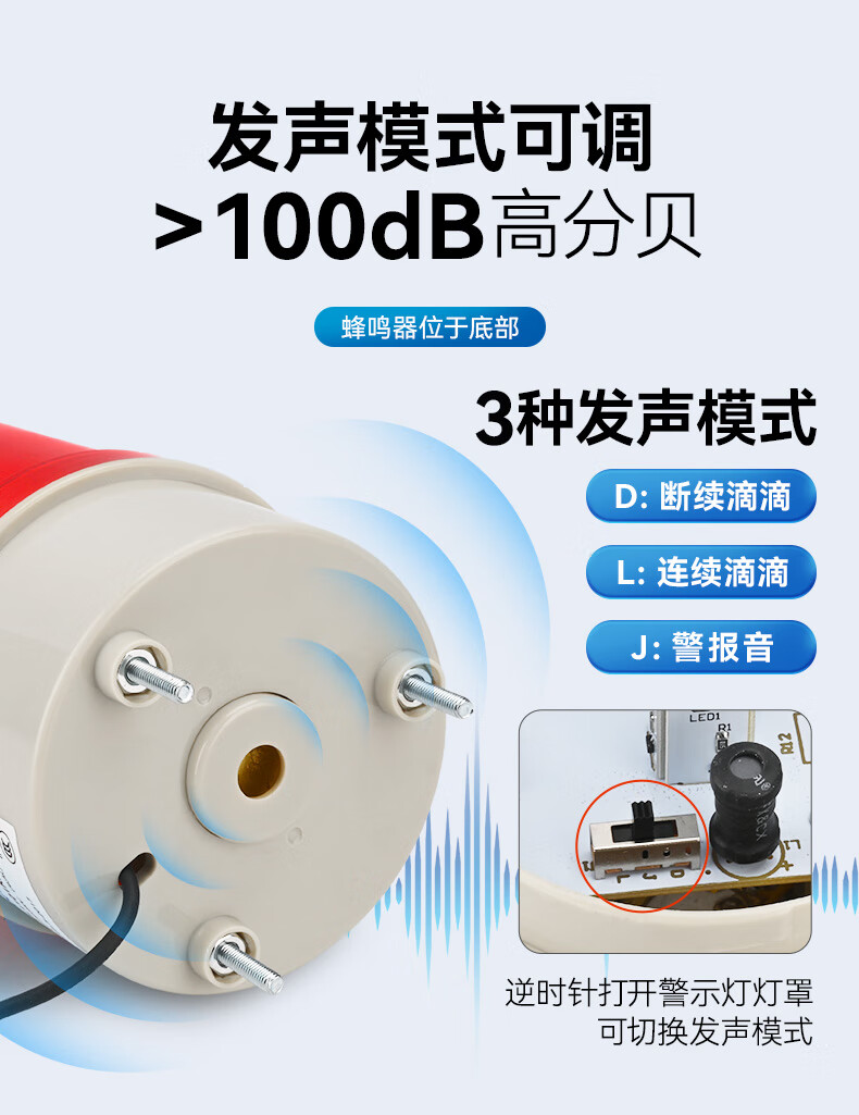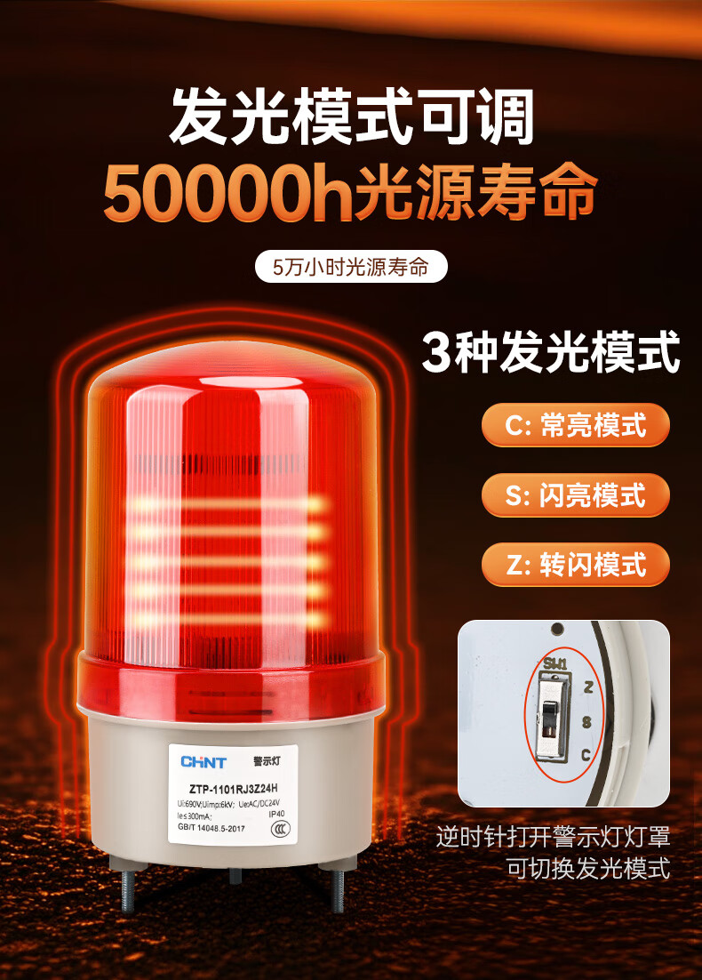 正泰(CHNT)报警灯警报灯LED警示灯 DC24V 红色声光报警器三脚旋转爆闪信号灯