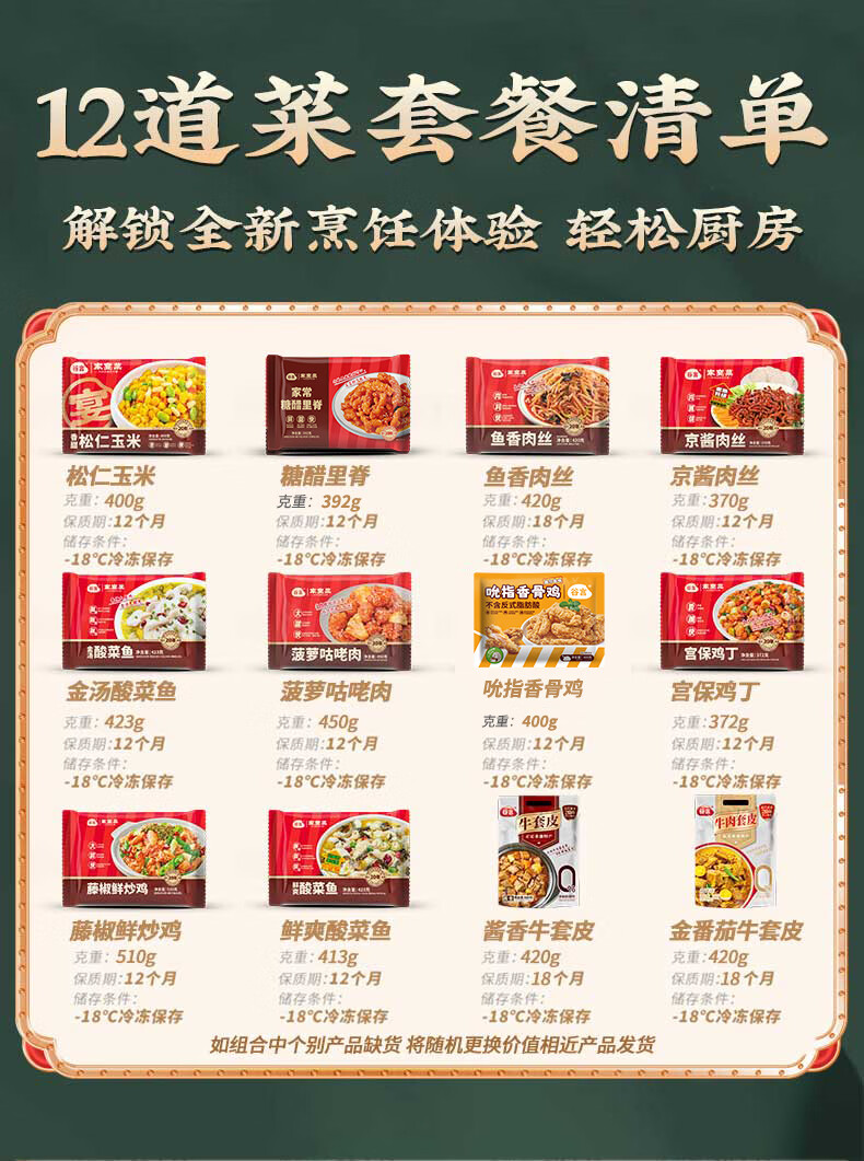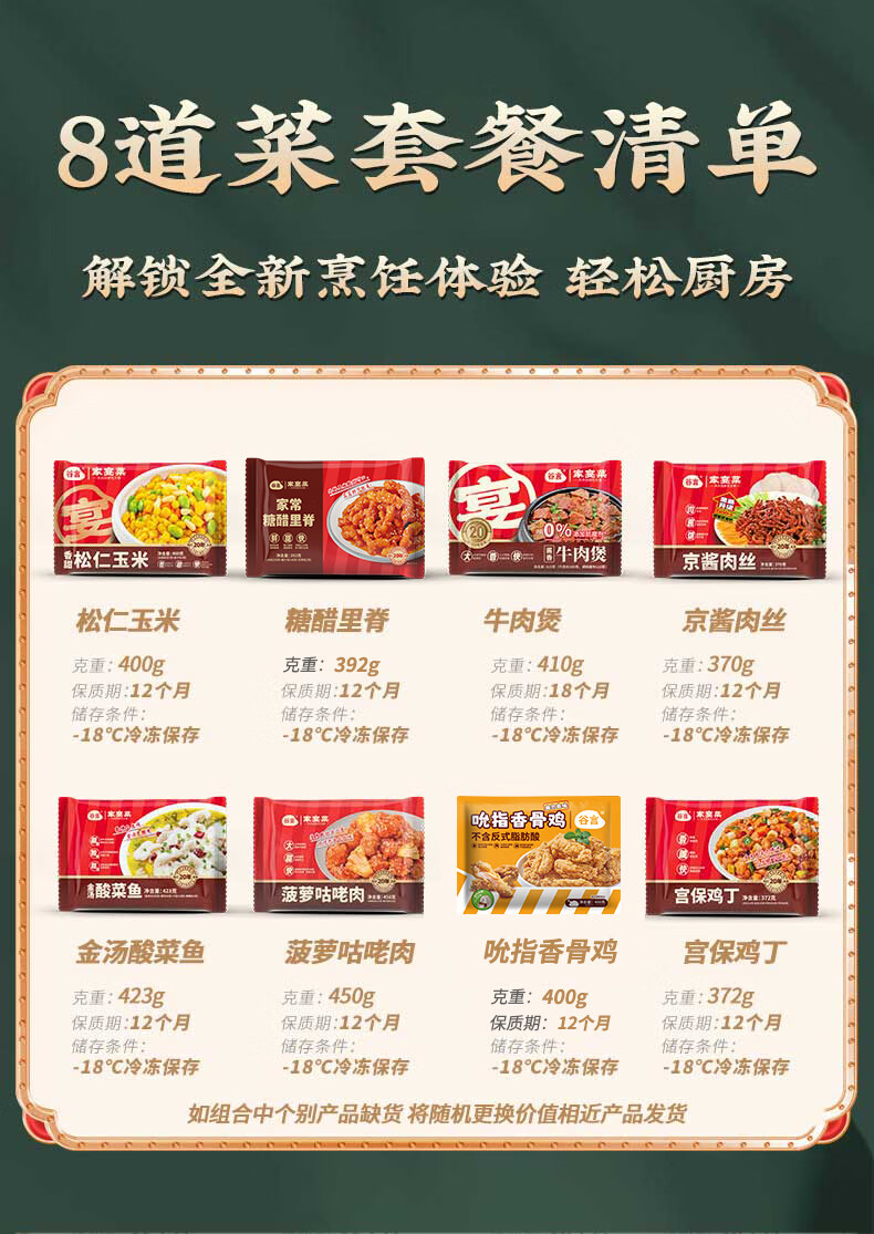 谷言预制菜 年夜饭套餐 家宴菜 酸菜鱼 糖醋里脊 年货送礼半成品食材 美味8道家宴菜套餐3217g
