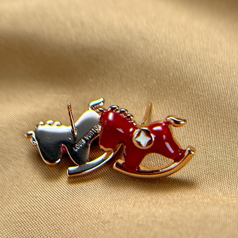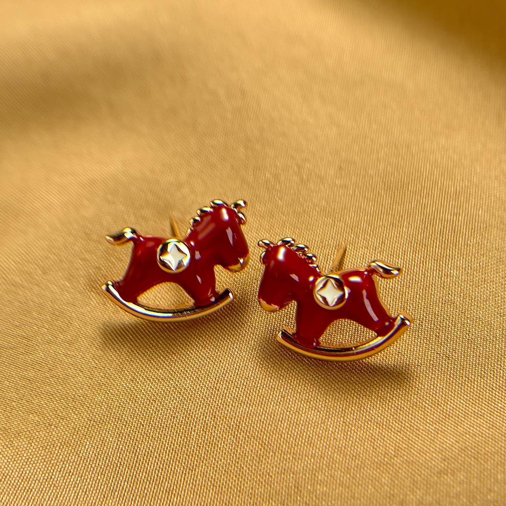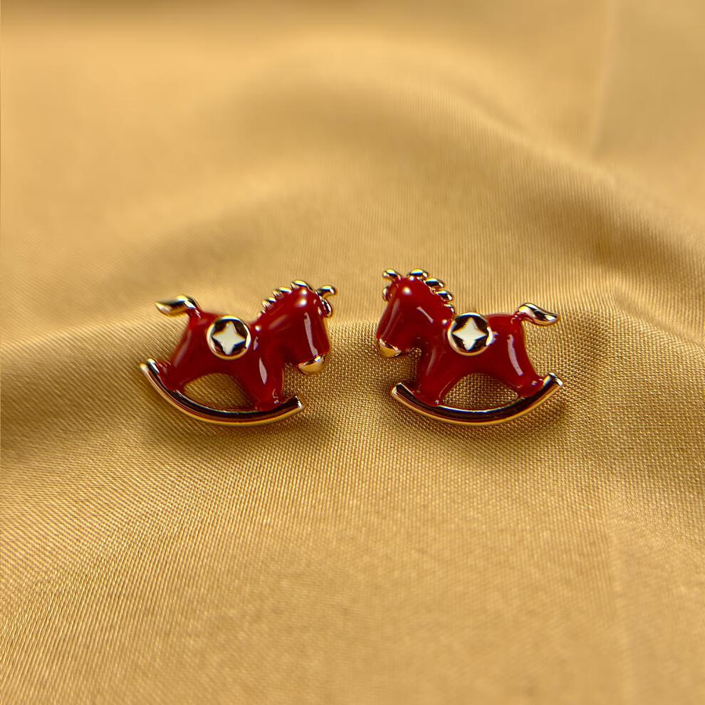 DL 1998胖东来同款品质马年耳饰马上有钱生肖本命年红色小马耳环2025新款 红色木马耳钉一对 精美礼盒装