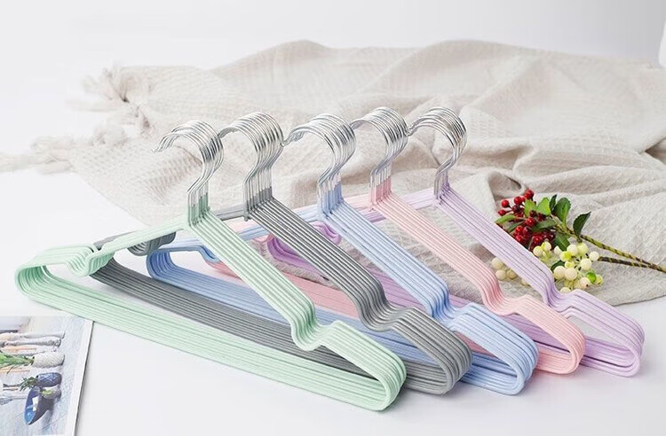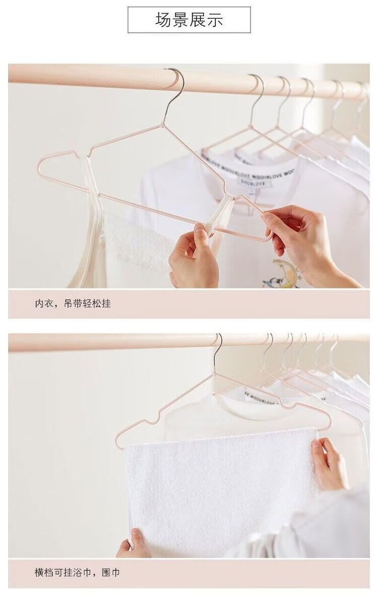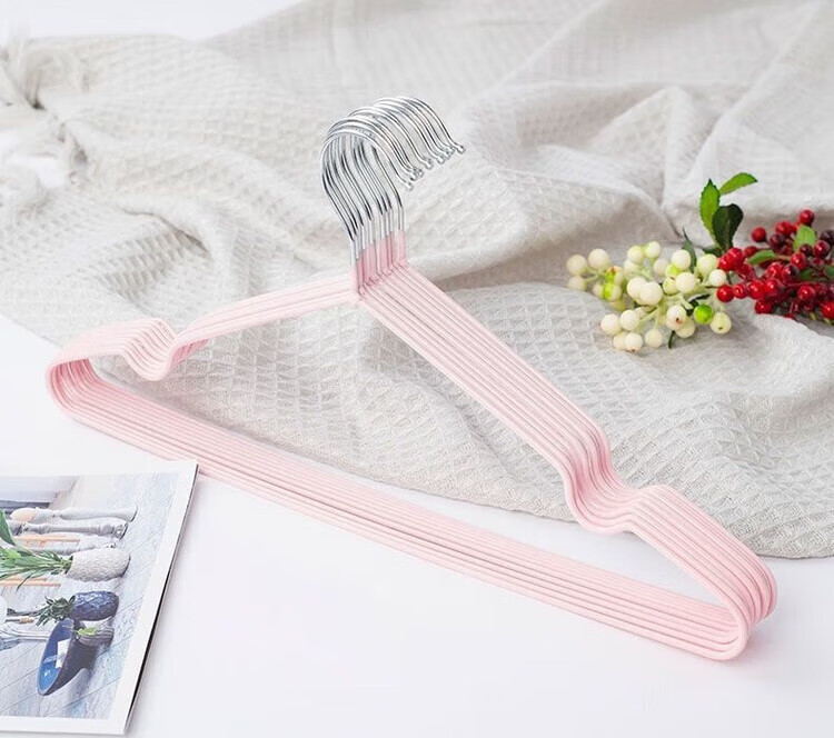 衣架家用挂衣服架子无痕防滑衣撑子多功能晾衣架衣柜收纳神器 樱花粉【实心加粗+浸塑防滑】 30支【家用推荐】