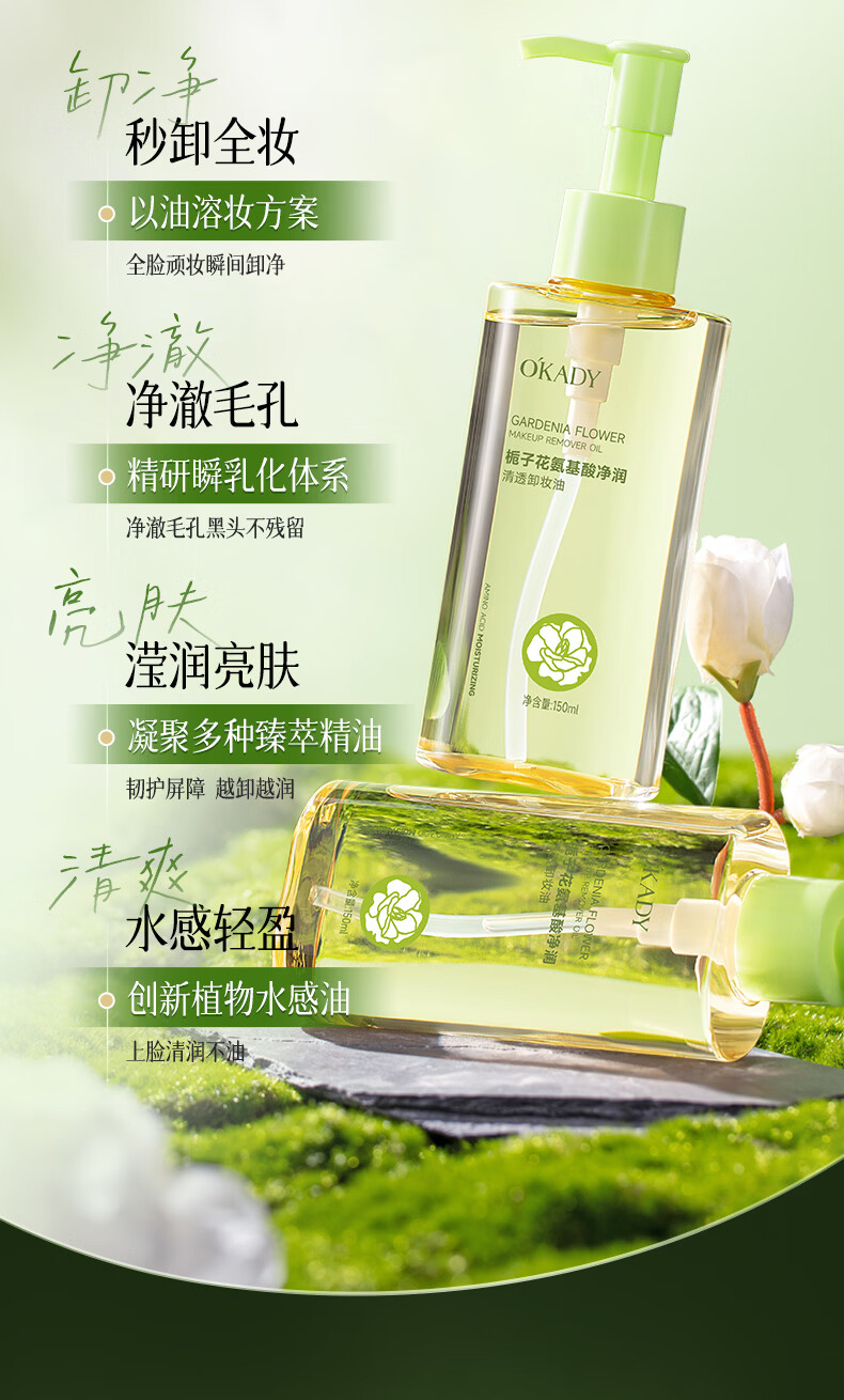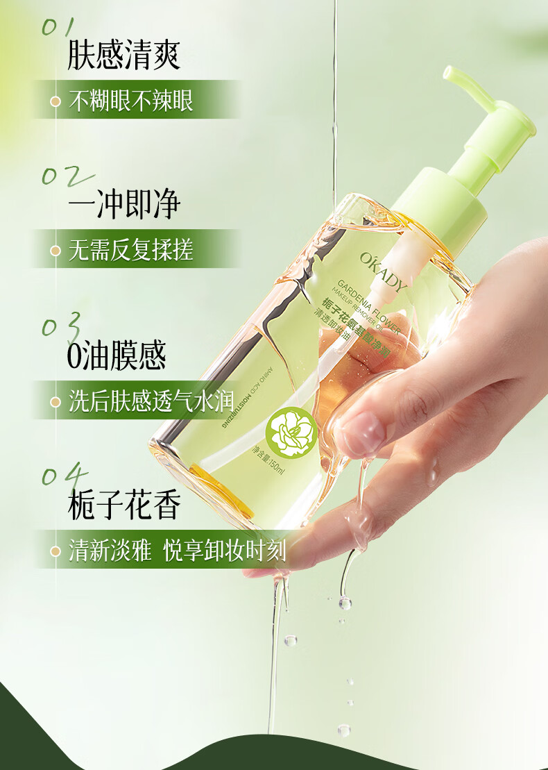 O'KADY栀子花氨基酸净润清透卸妆油150ml 栀子花氨基酸卸妆油*1瓶