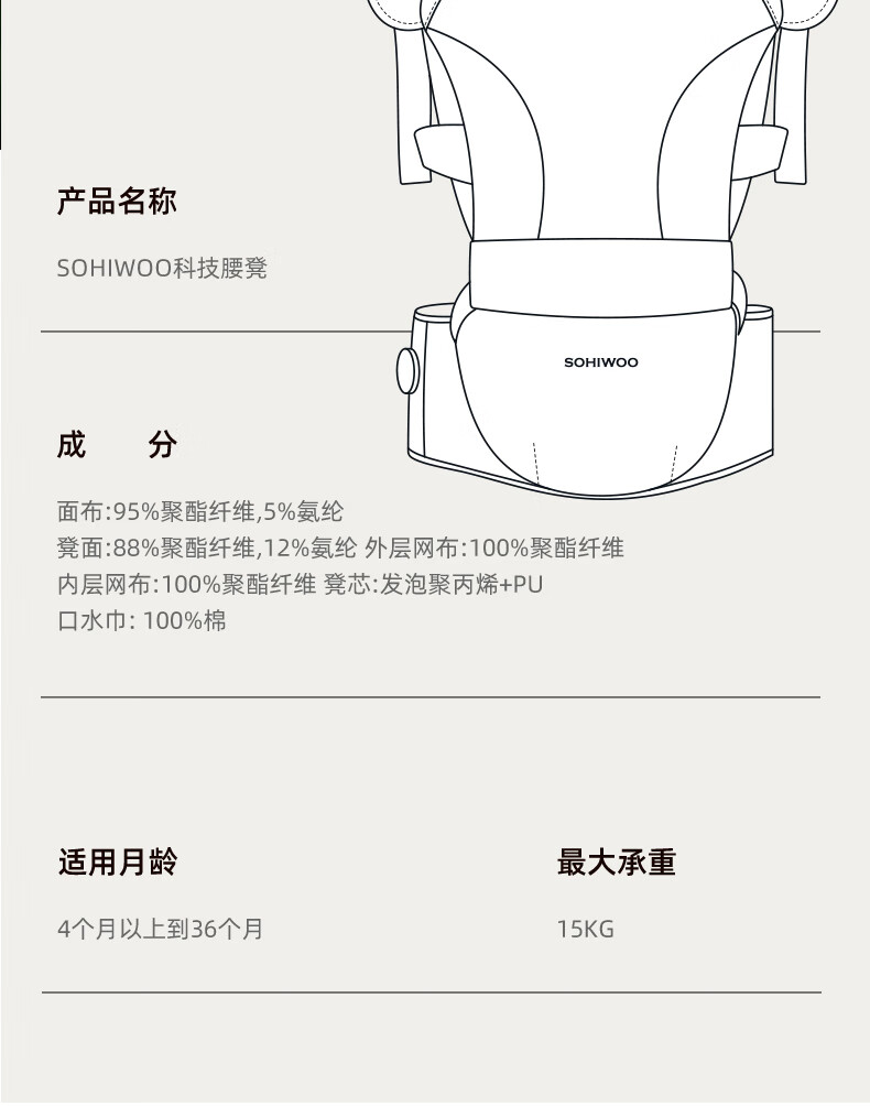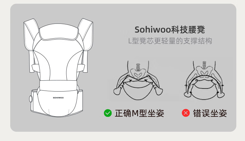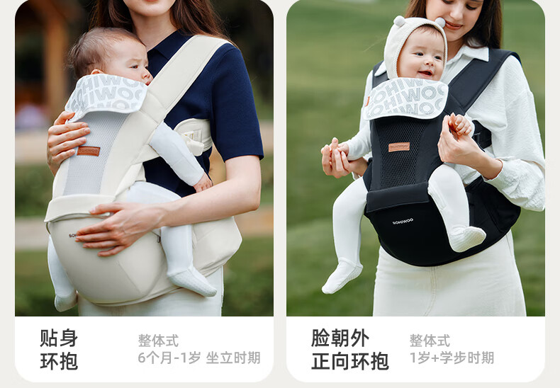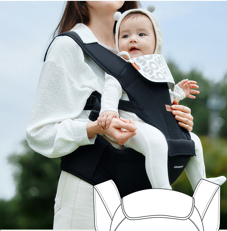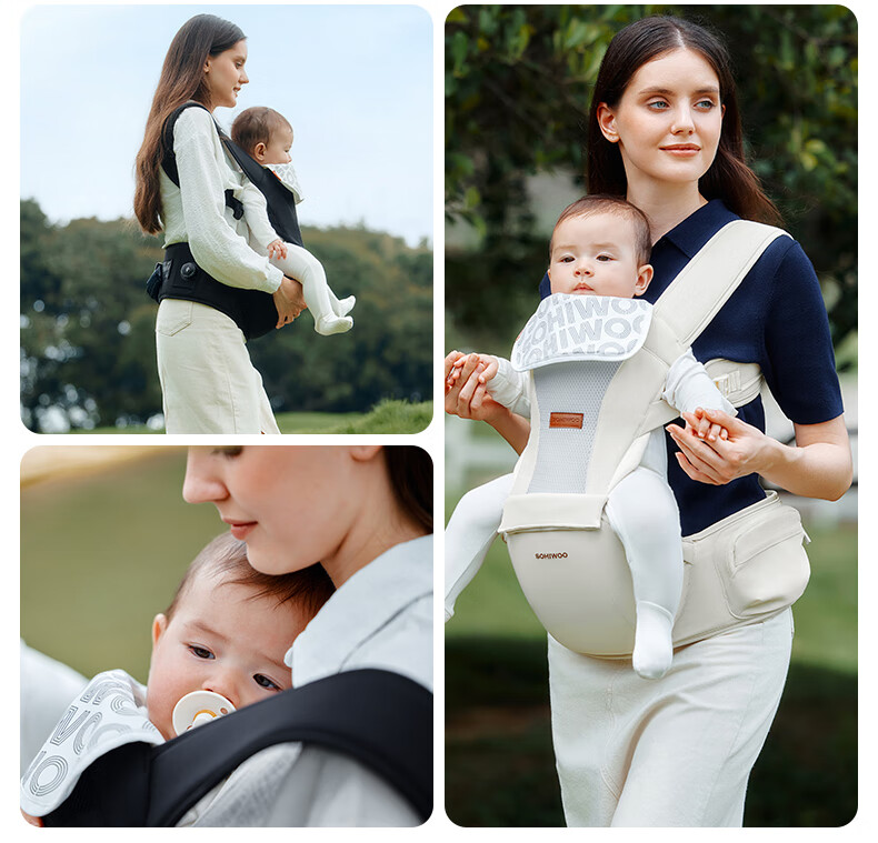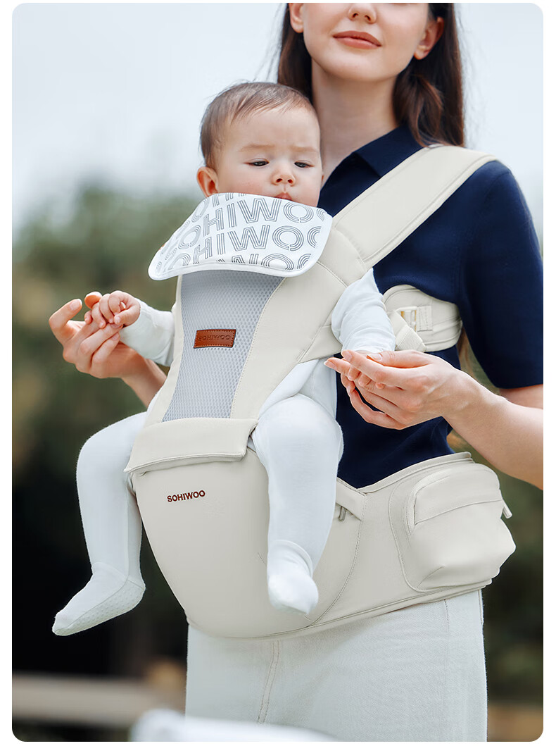 sohiwoo腰凳婴儿轻便透气小月龄宝宝外出背带二合一四季抱娃神器 【礼盒装】槿木灰含一条口水巾 无规格