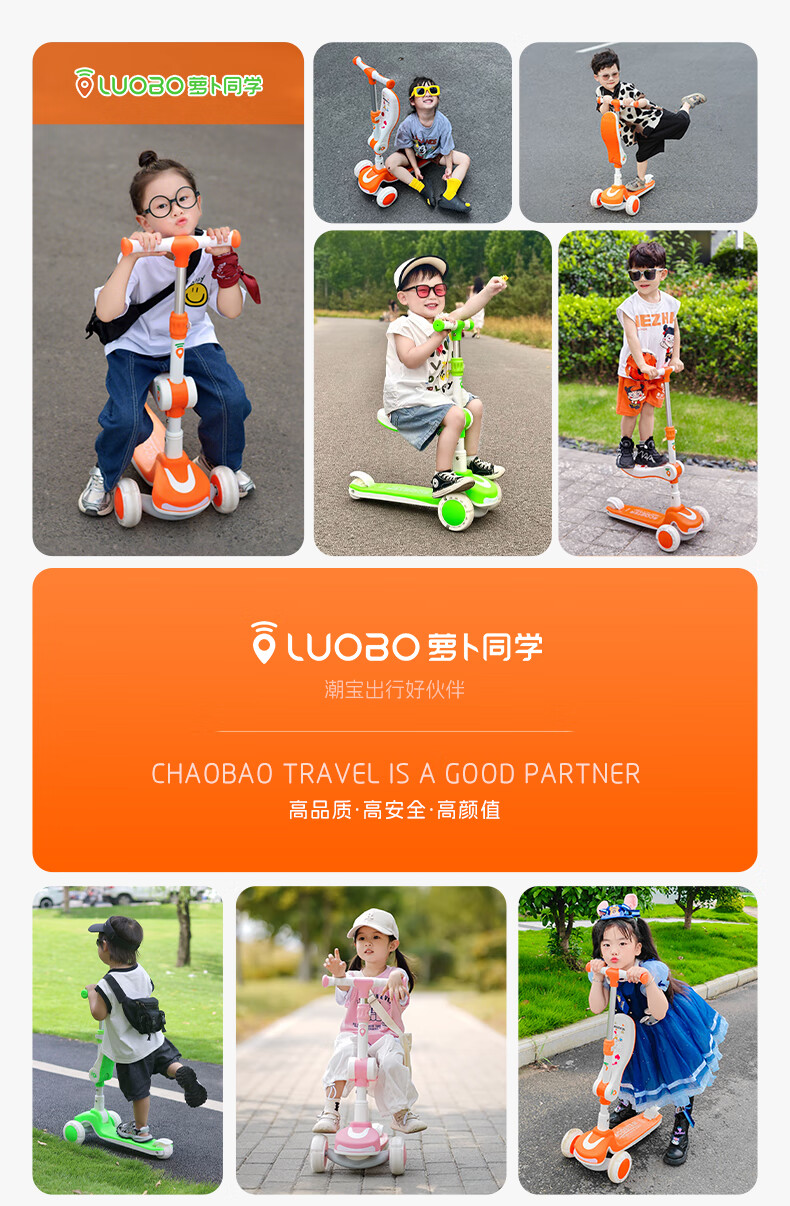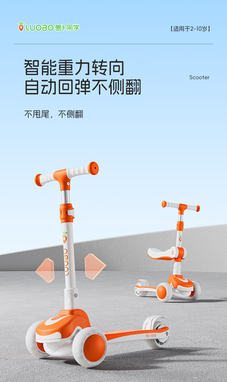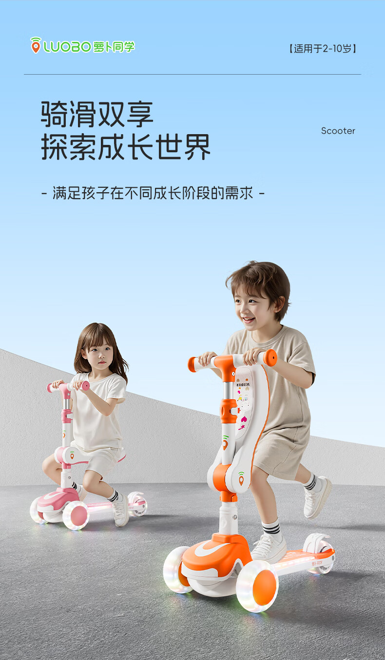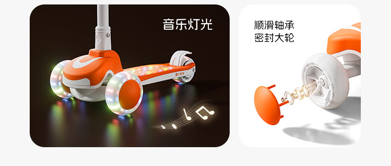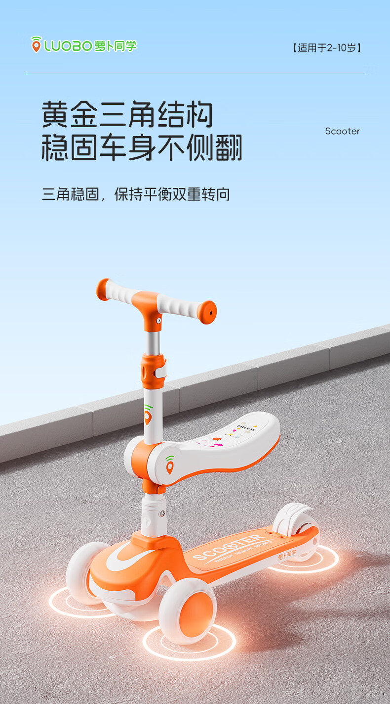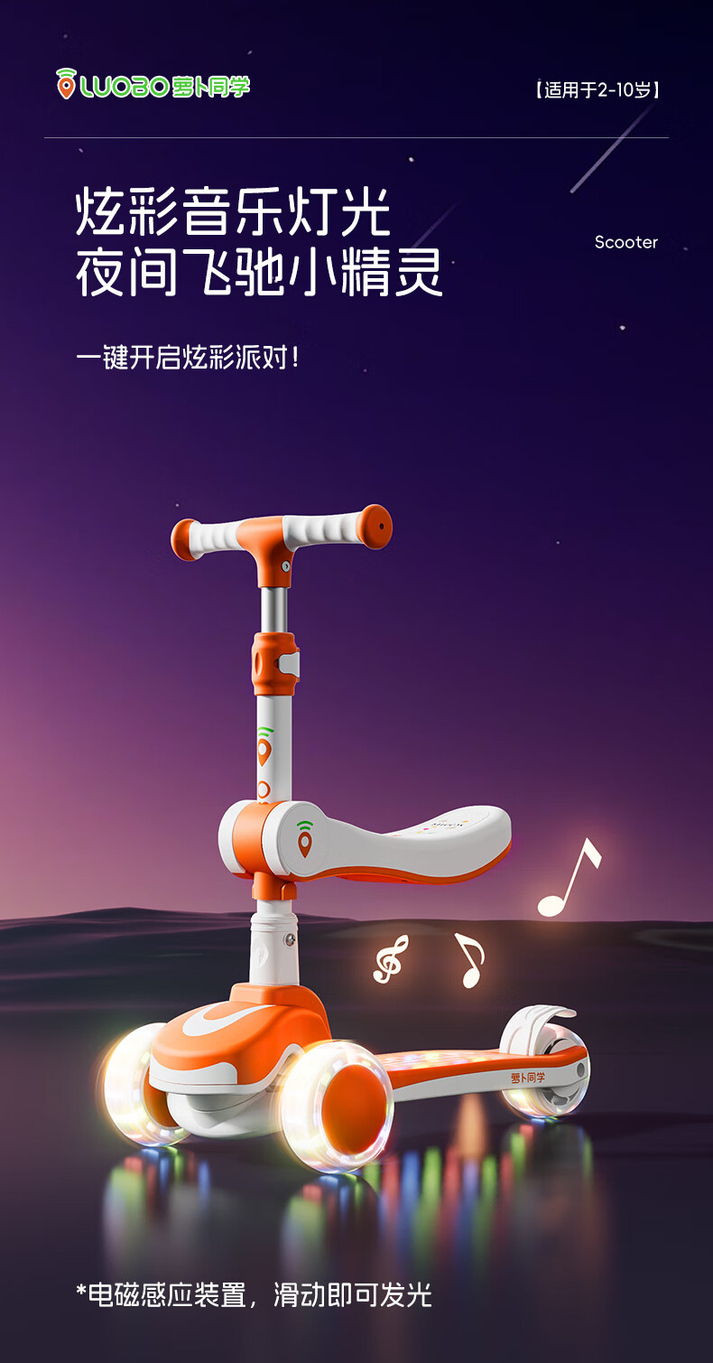 萝卜同学儿童滑板车3-6岁男女小孩可坐滑行踏板车遛娃神器宝宝生日礼物 萝卜橙 顶配【折叠 /座位/音乐】