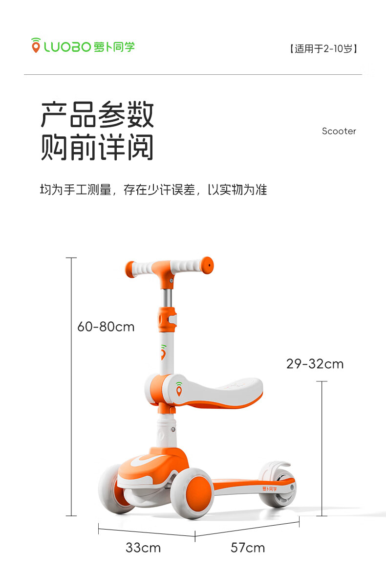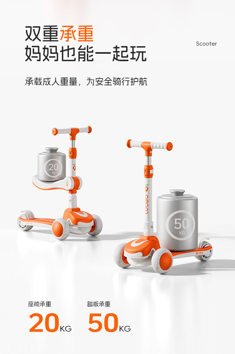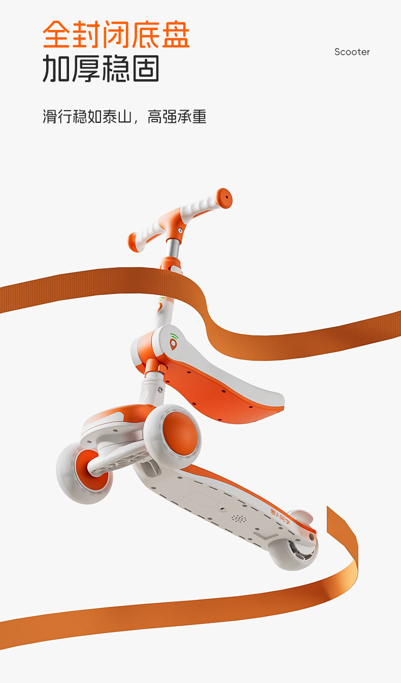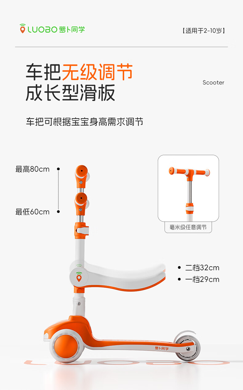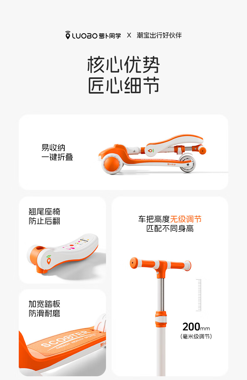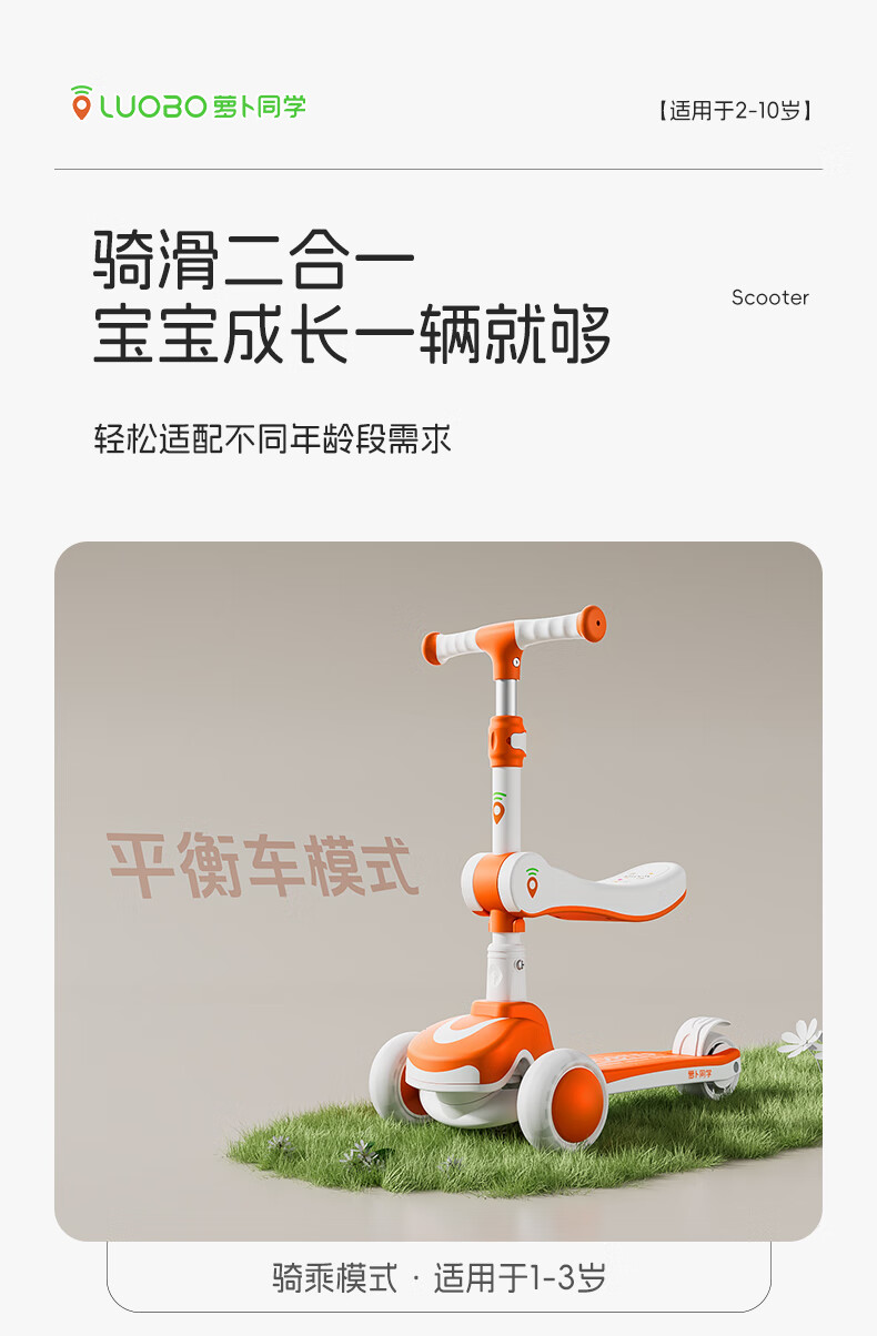 萝卜同学儿童滑板车3-6岁男女小孩可坐滑行踏板车遛娃神器宝宝生日礼物 萝卜橙 顶配【折叠 /座位/音乐】