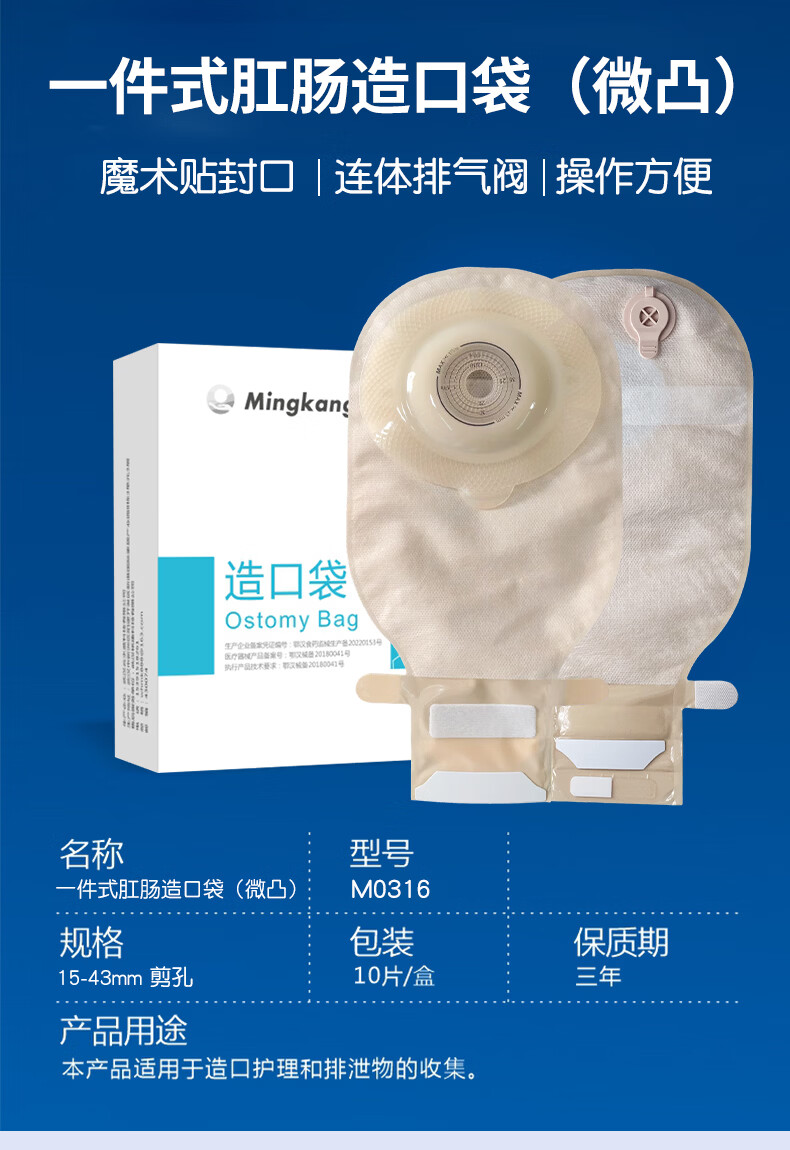 宇象一件式凸面造口袋手动排气一体式肠造瘘袋一次性大便袋医用 M0314一件式凸面造口袋/自动排气款 【5片/袋】正品袋装*体验装