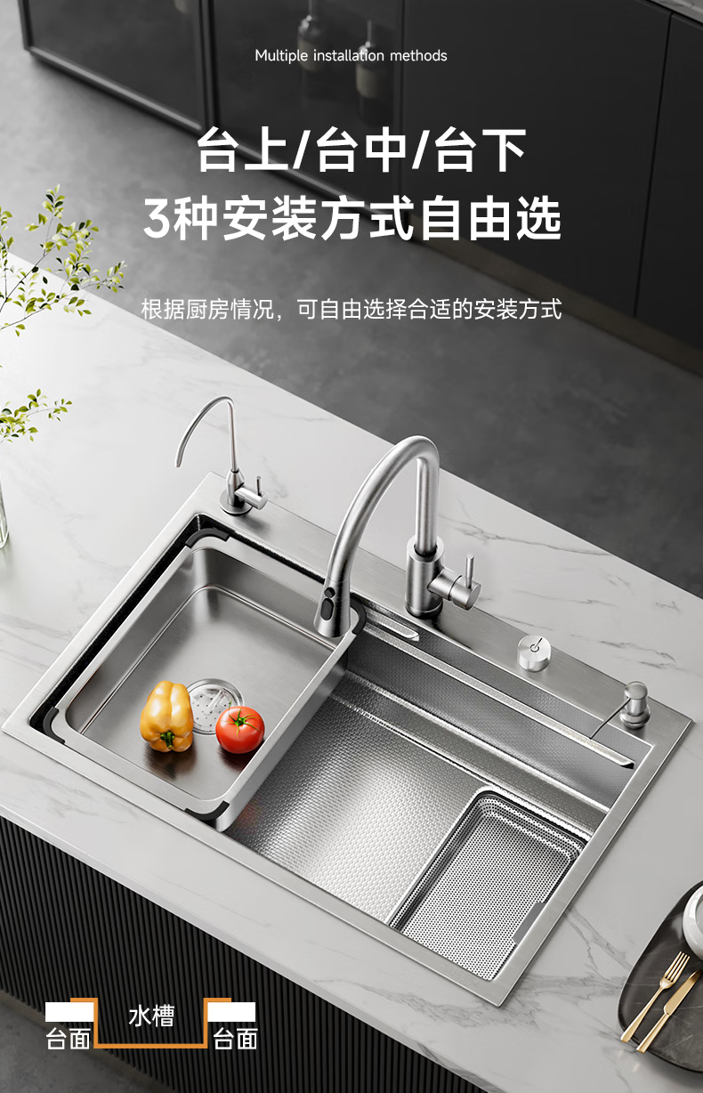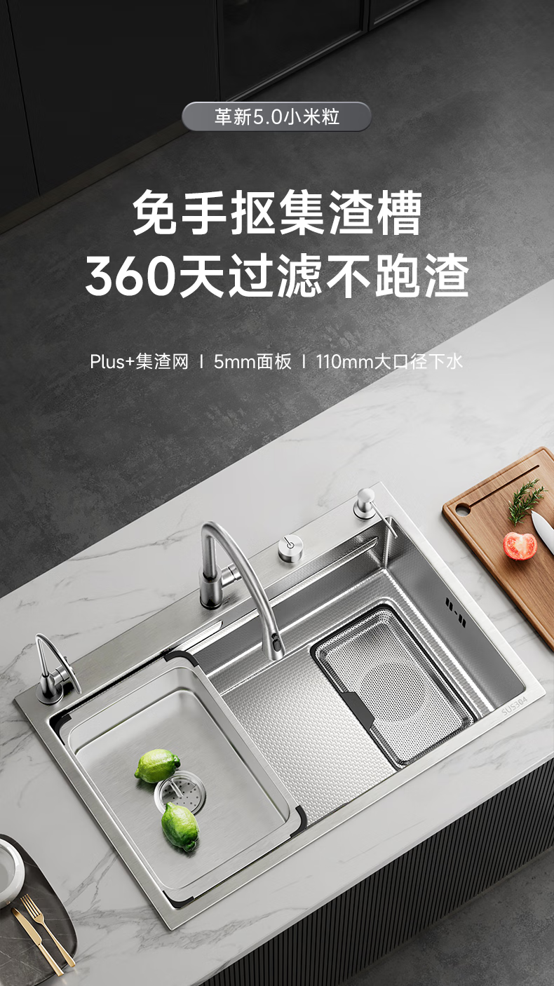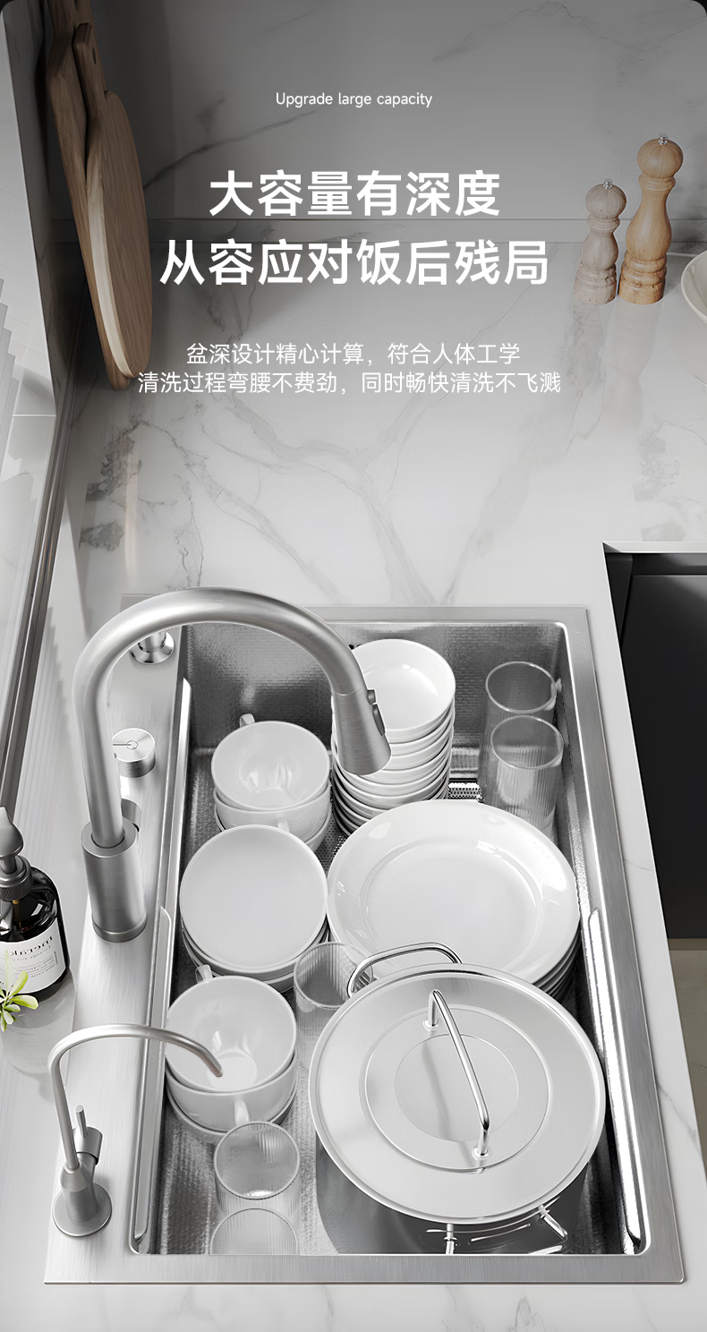 箭牌聚宝盆侧排洗菜盆水槽大单槽厨房304不锈钢纳米灰【焕新补贴15%】