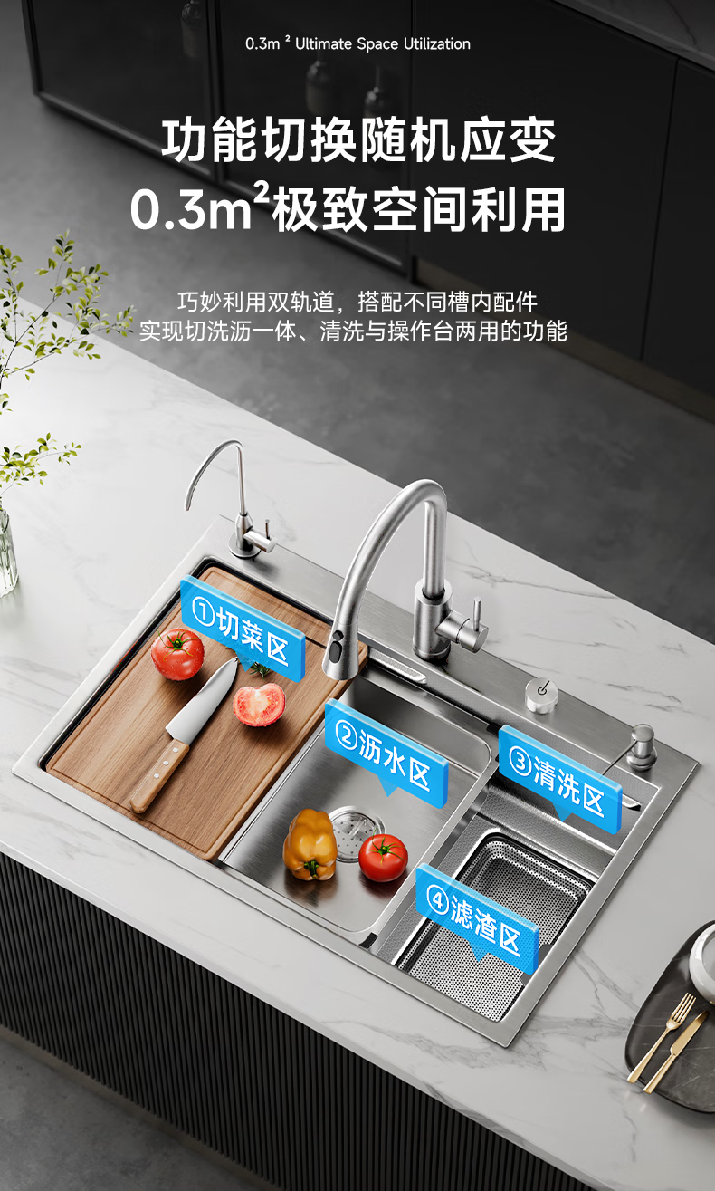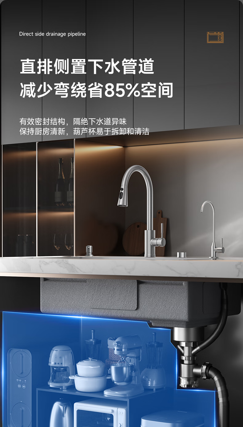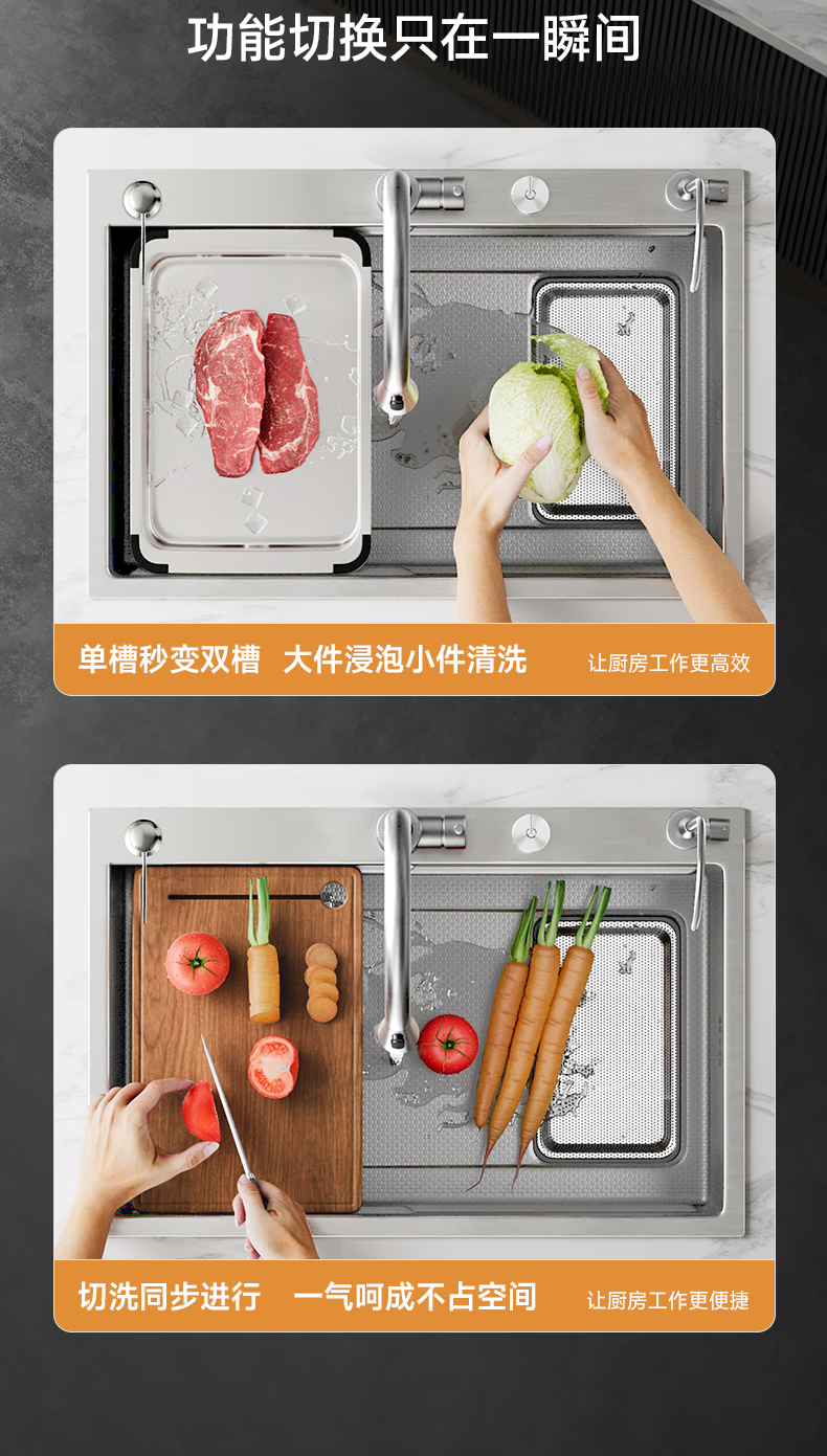 箭牌聚宝盆侧排洗菜盆水槽大单槽厨房304不锈钢纳米灰【焕新补贴15%】