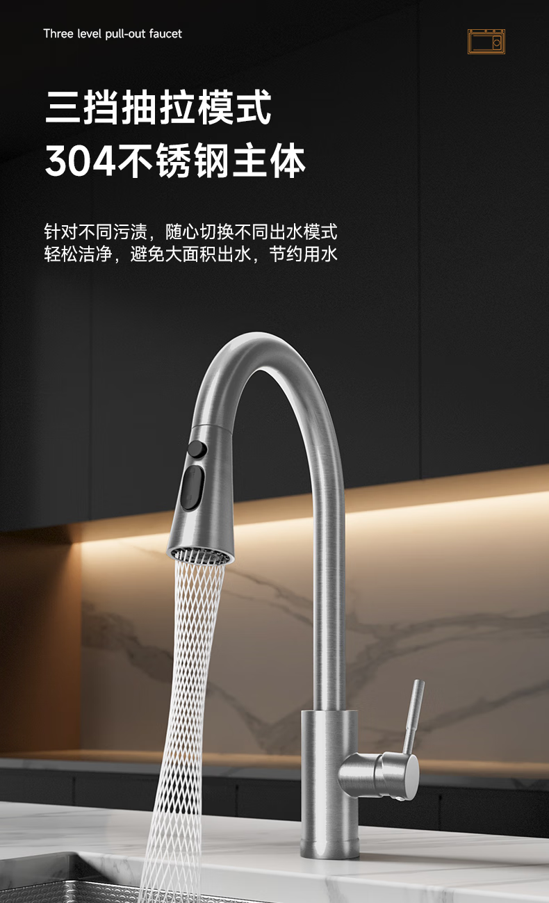 箭牌304不锈钢冷热水龙头可旋转抽拉龙头厨房抽拉式【焕新补贴15%】