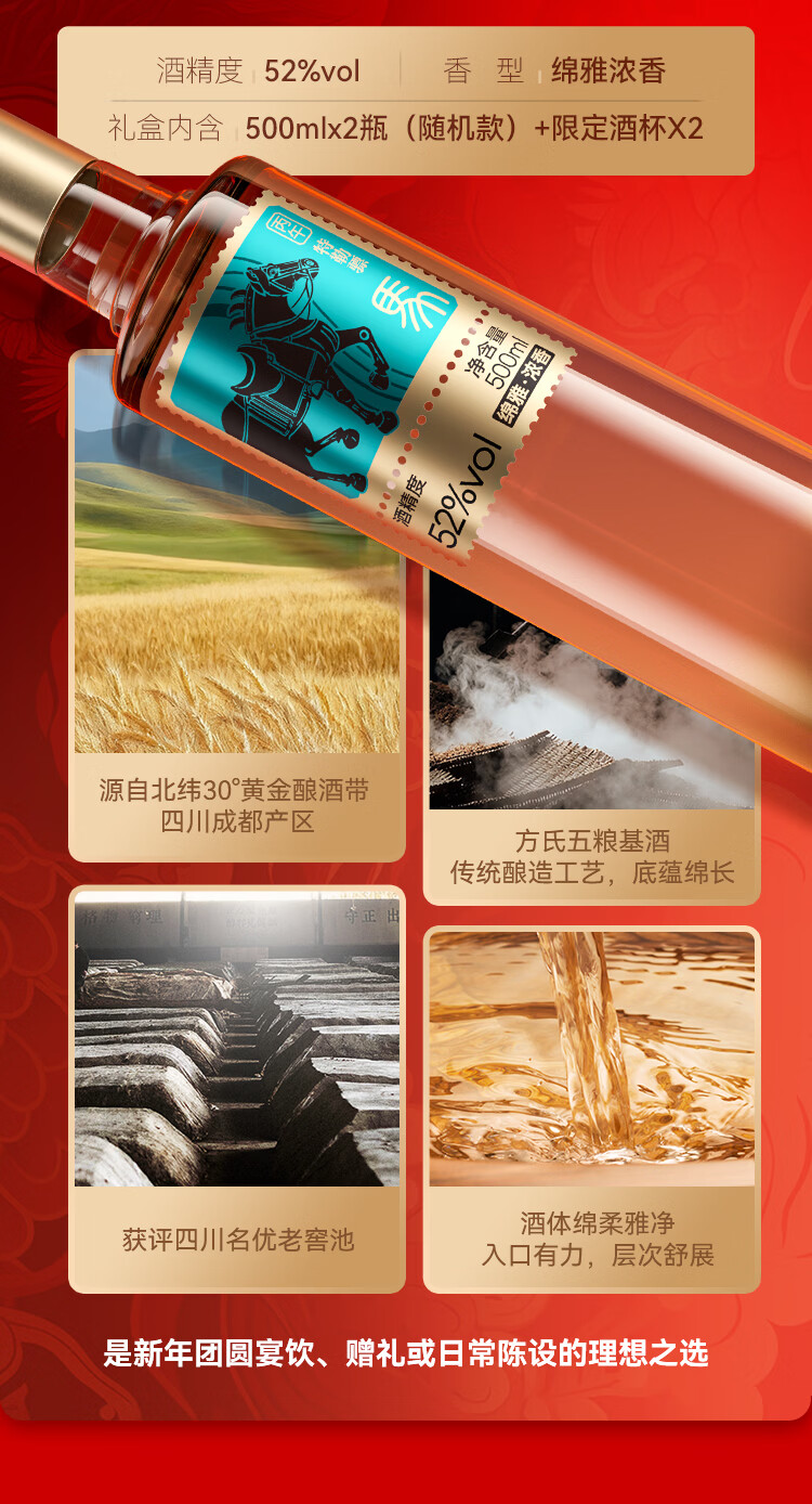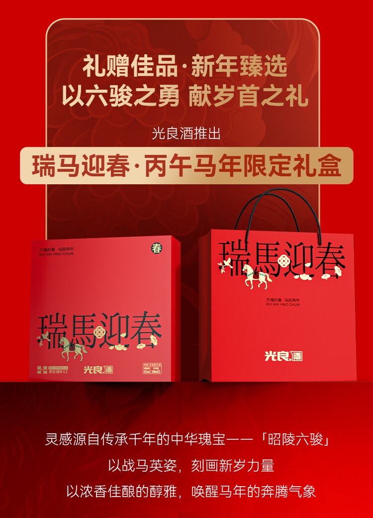 光良【新春礼盒】瑞马迎春52度浓香型纯粮食酒春节送礼500ml*2礼盒 52%vol 500mL 2瓶 礼盒装