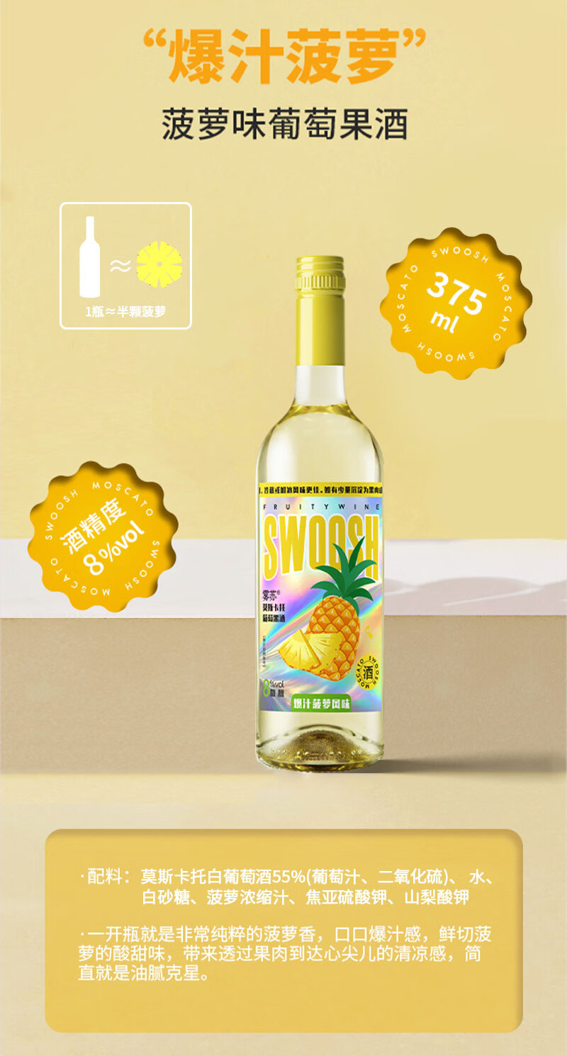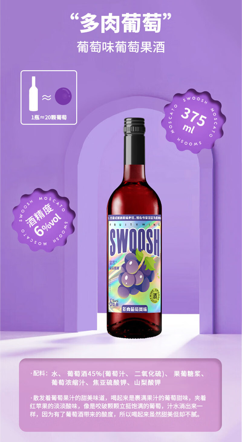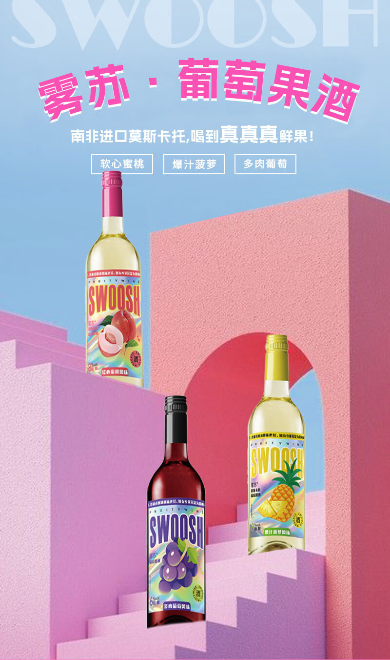 雾苏【聚会首选 自然清甜】进口源酿果味葡萄酒甜酒微醺果酒蜜桃葡萄 软心蜜桃*2瓶+多肉葡萄*2瓶