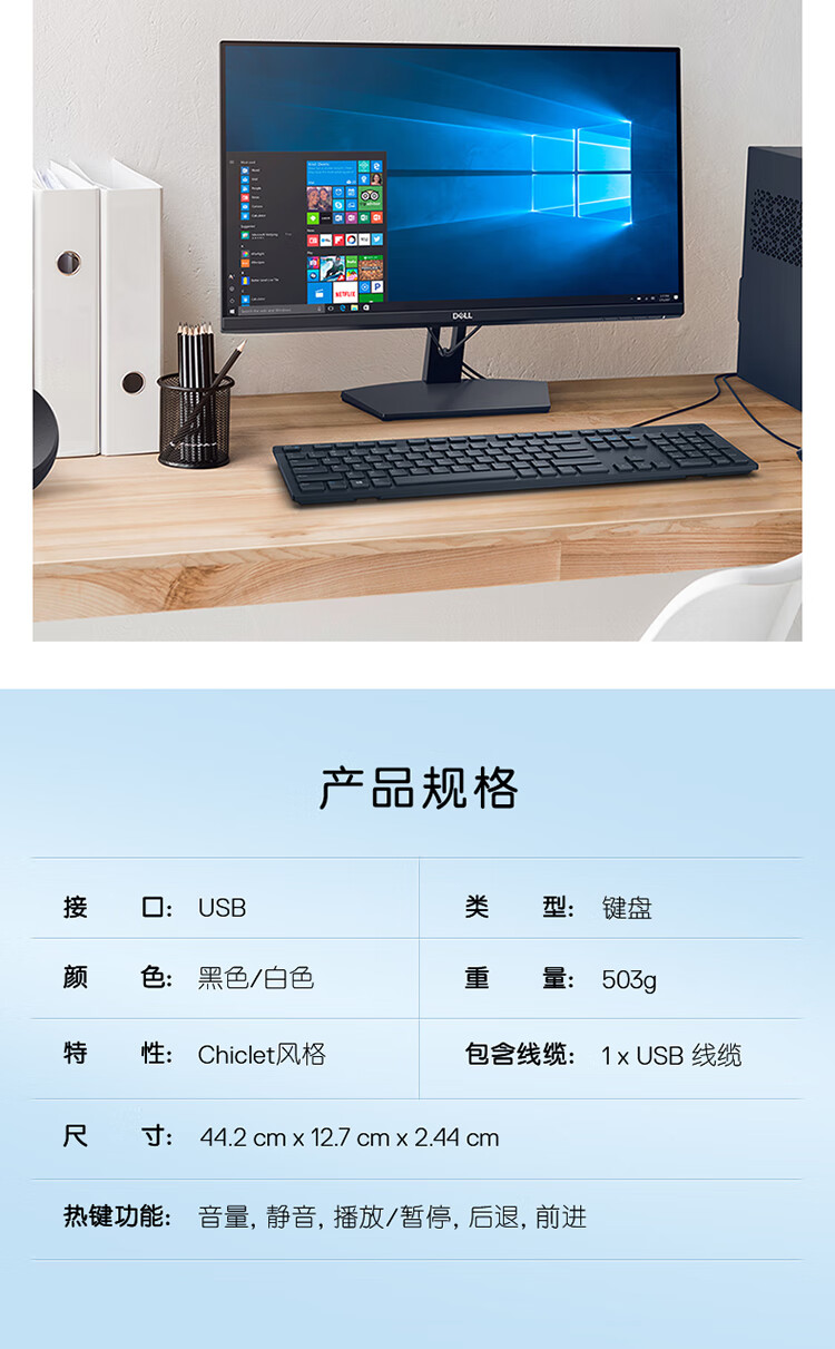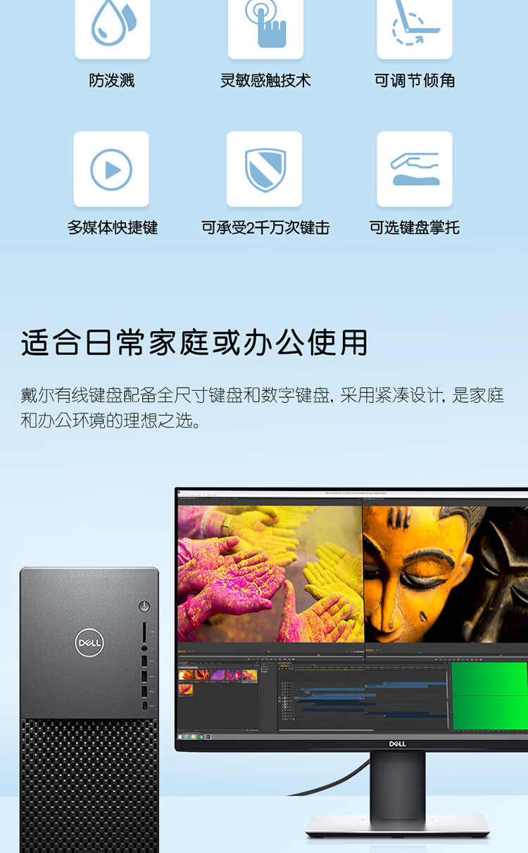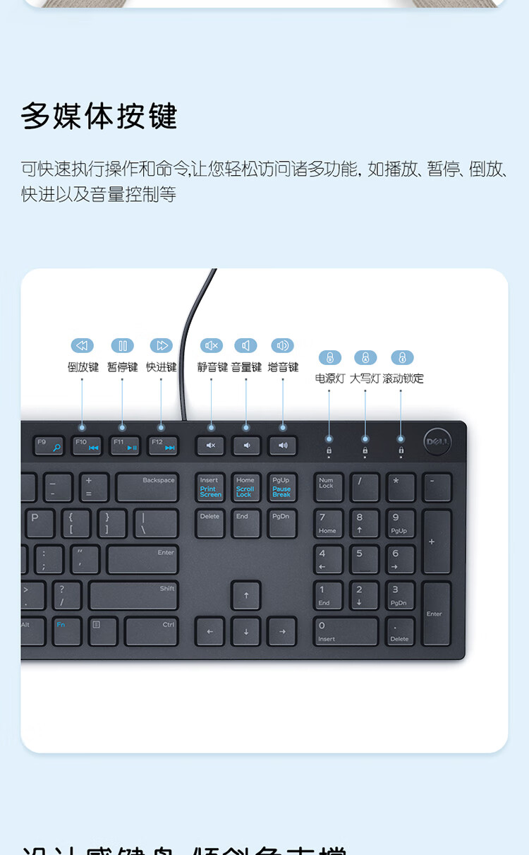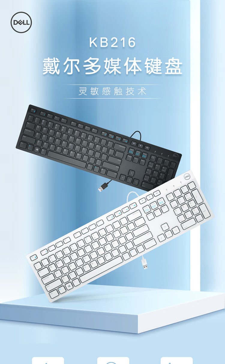 戴尔(DELL)KB216键盘有线多媒体键盘办公键盘全尺寸键盘即插即用键盘(黑色)