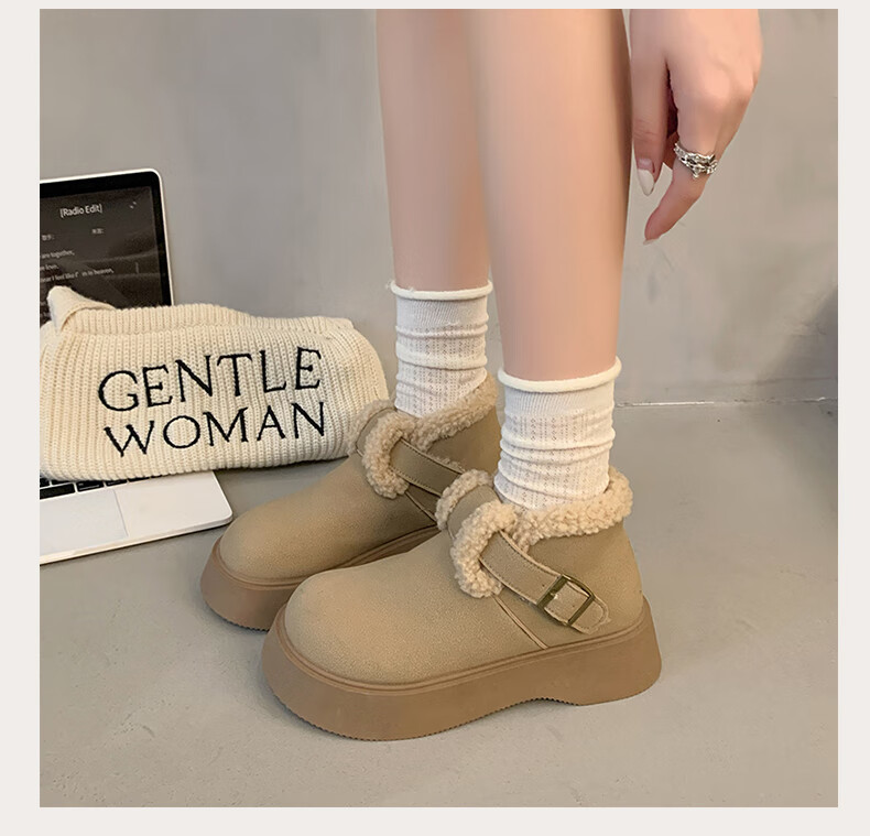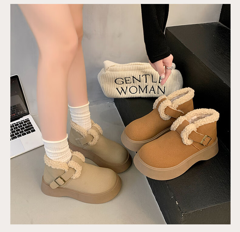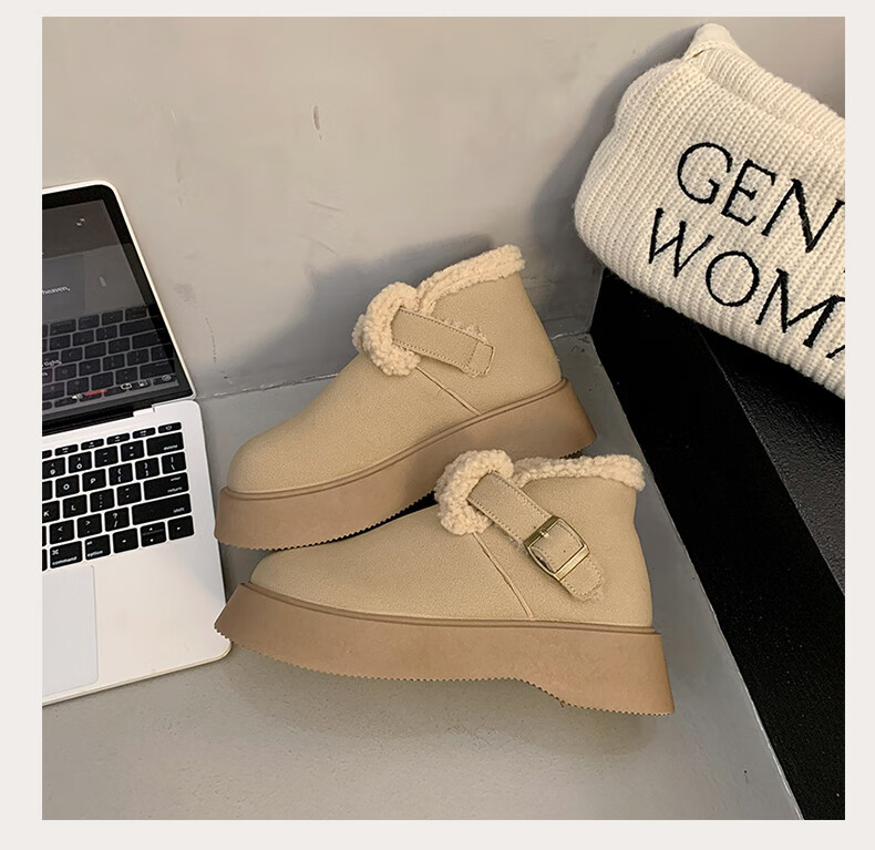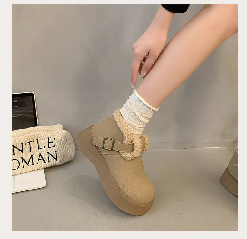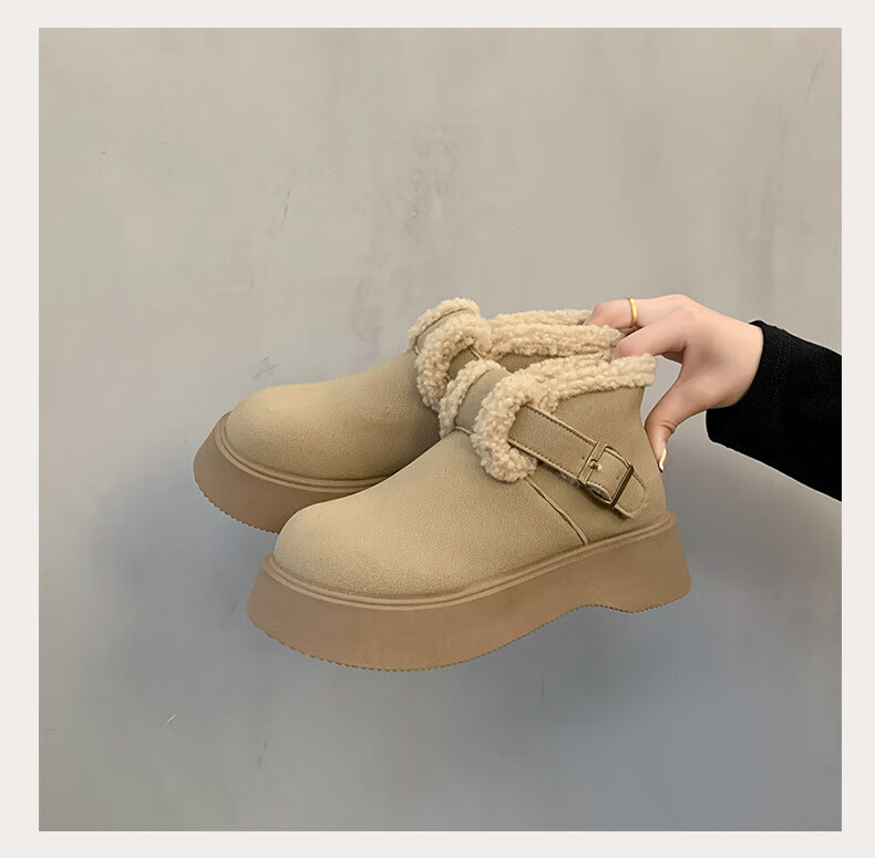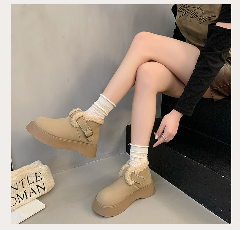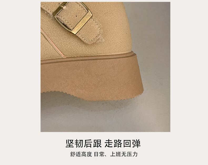 稻草人(MEXICAN)真皮厚底雪地靴女2026冬季加绒保暖勃肯短靴小个子增高鞋34码棉鞋 杏色(升级版) 35