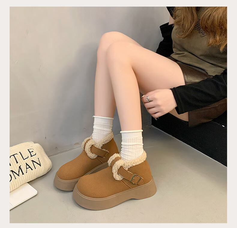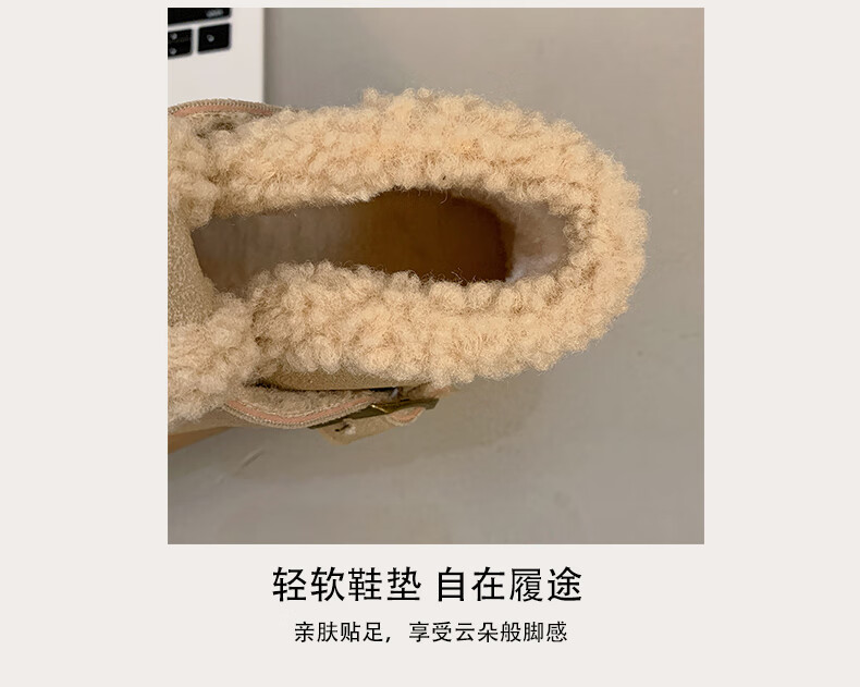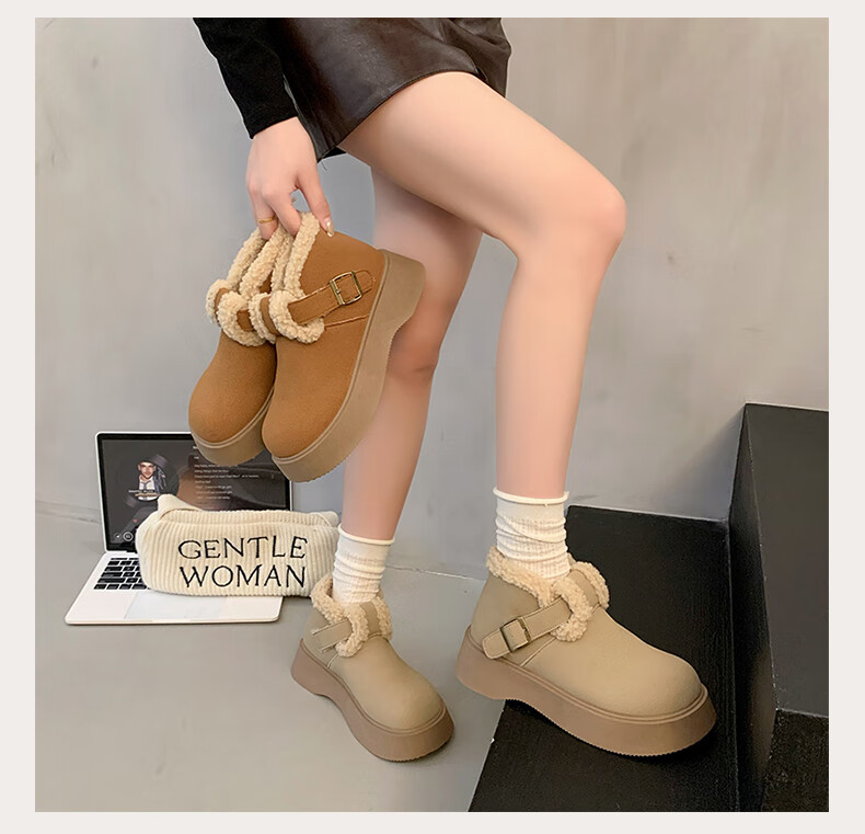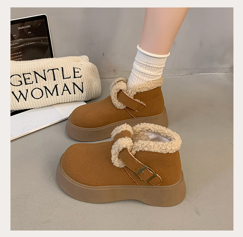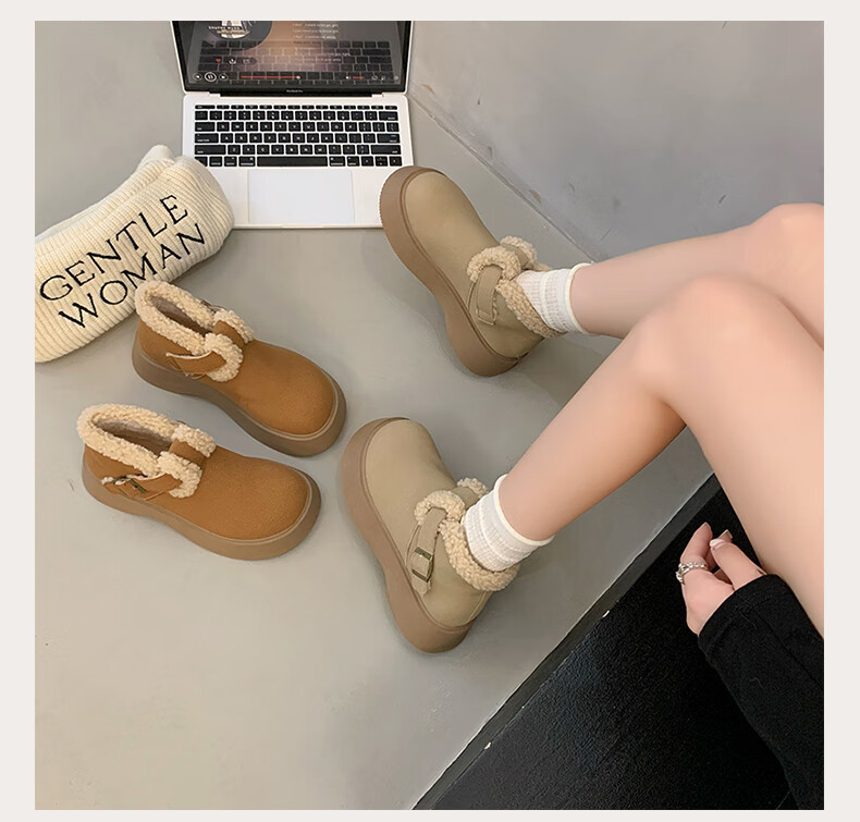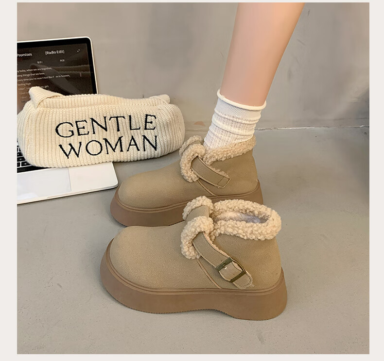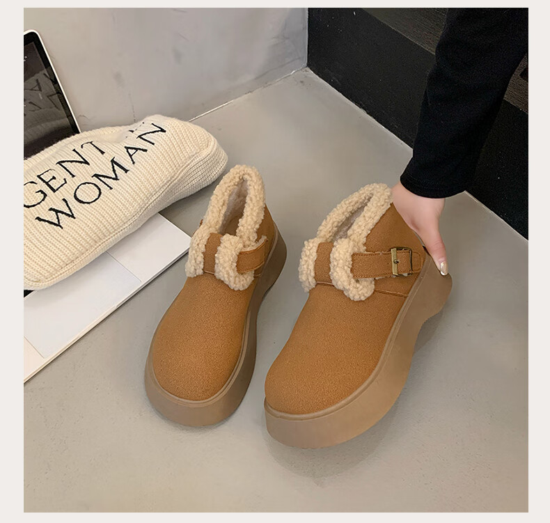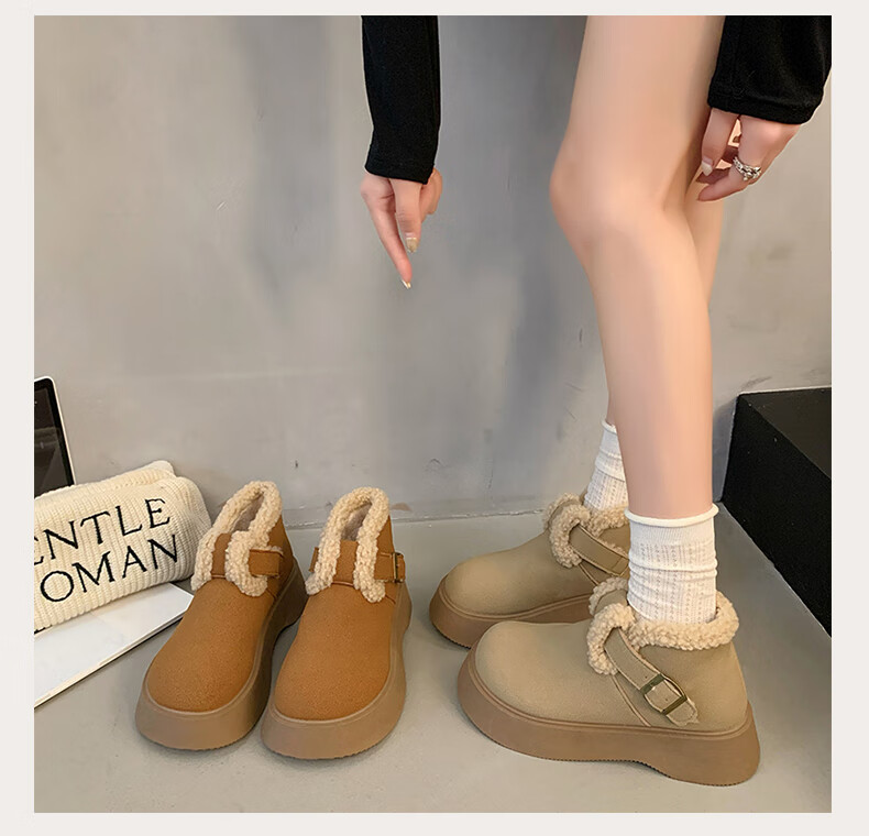 稻草人(MEXICAN)真皮厚底雪地靴女2026冬季加绒保暖勃肯短靴小个子增高鞋34码棉鞋 杏色(升级版) 35