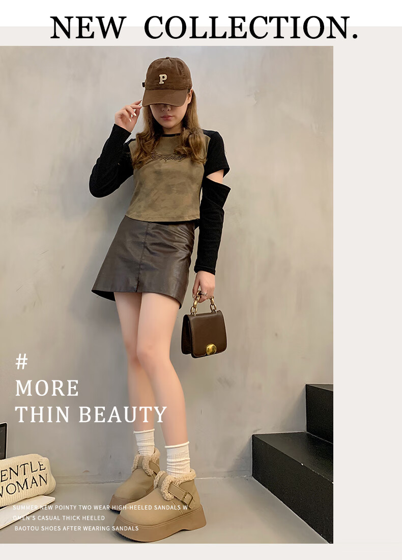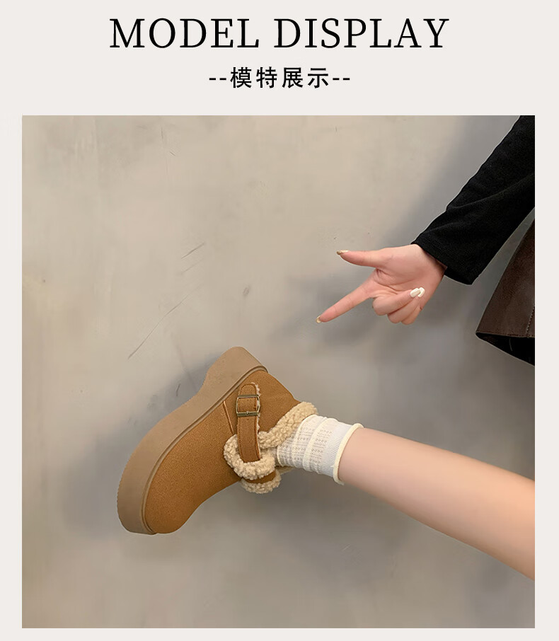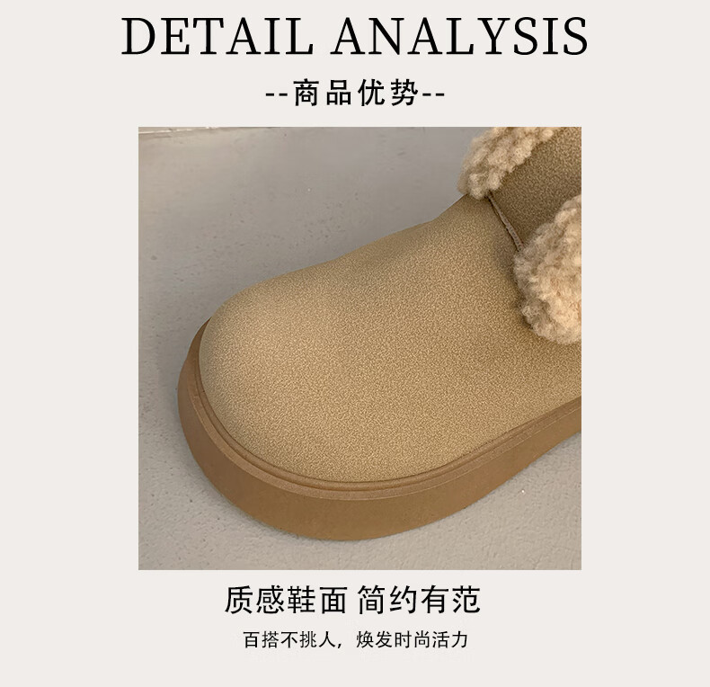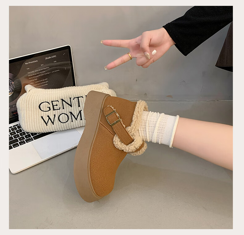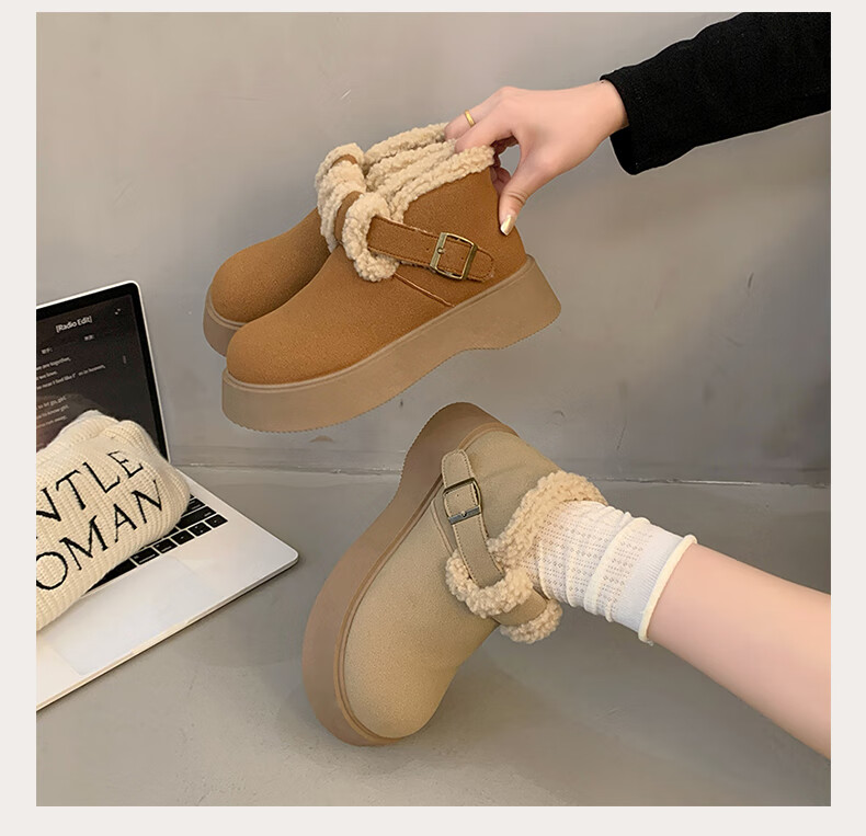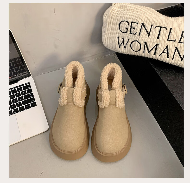 稻草人(MEXICAN)真皮厚底雪地靴女2026冬季加绒保暖勃肯短靴小个子增高鞋34码棉鞋 杏色(升级版) 35