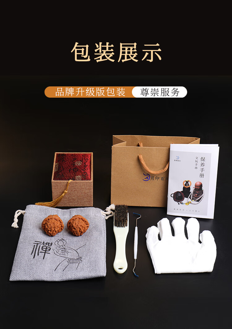 月印百川 文玩核桃磨盘手把件礼物约37-38mm+盘玩礼包