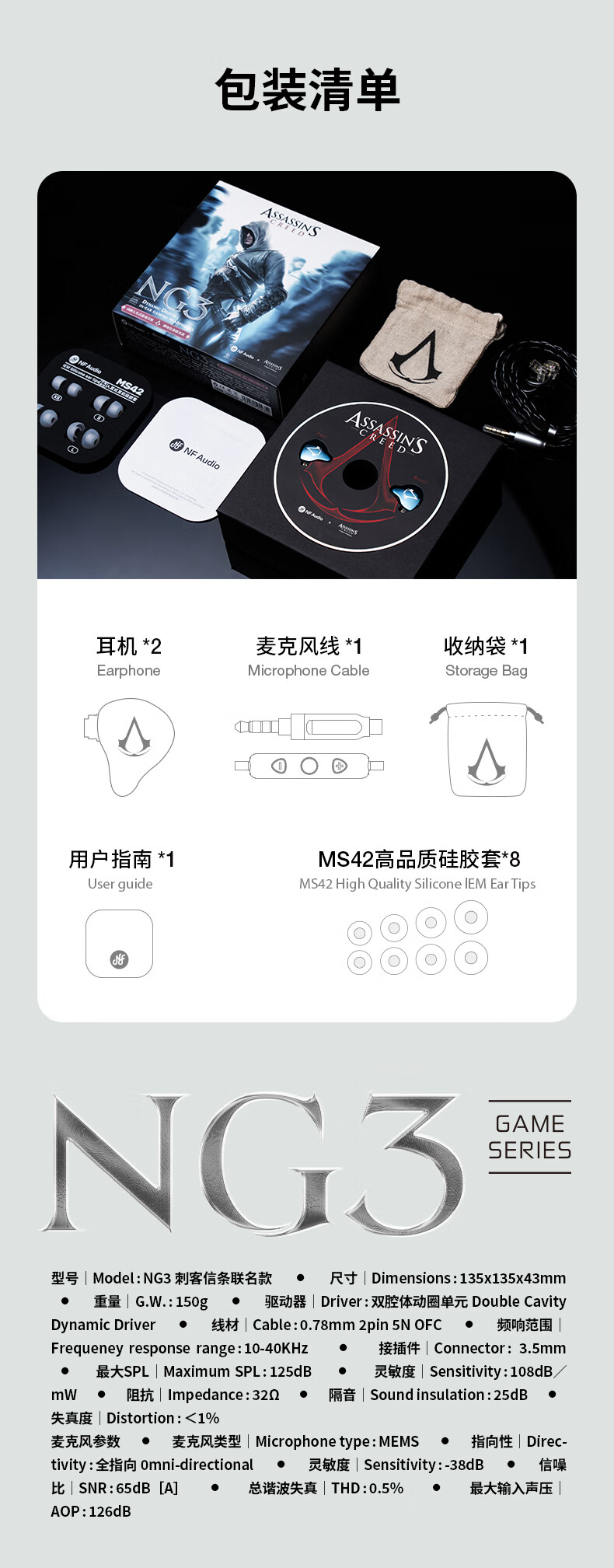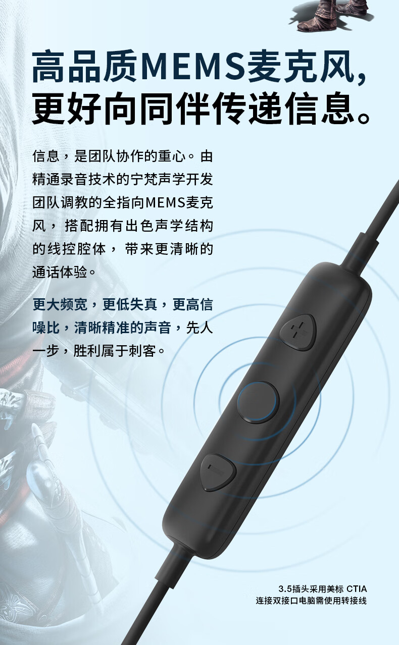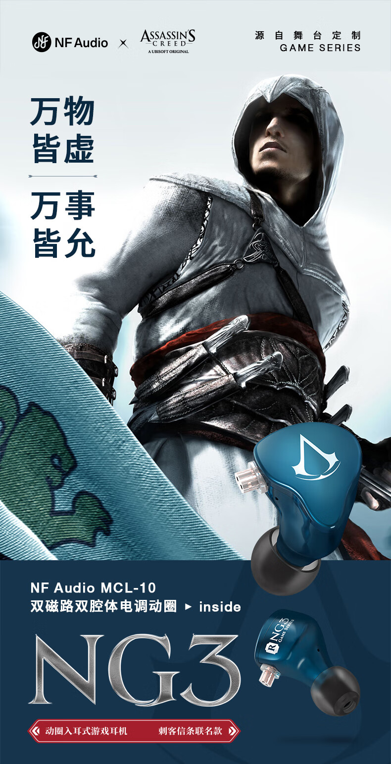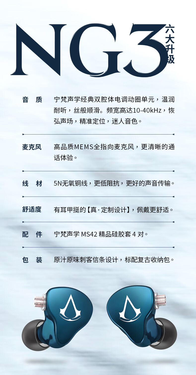 宁梵声学NFaudio 宁梵NG3刺客信条联名款APEX CS:GO 吃鸡耳机 FPS游戏耳机 HIFI耳机 深蓝色